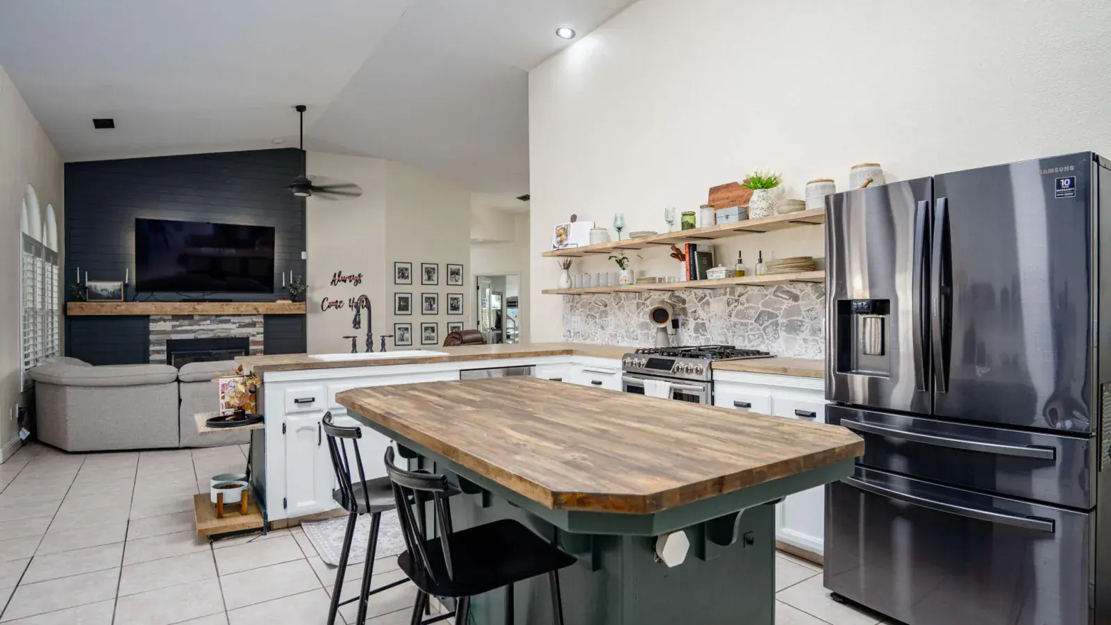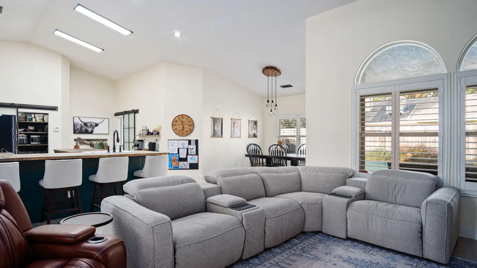 Beautiful NW home in the sought after Key West neighborhood. 4 bedrooms, 2 baths and 2216 sq. ft. This home has style and class, with an open concept kitchen, butcher block countertops and modern barn door pantry. The living room has a gas fireplace with a show-stopping redesigned mantle and surround. The backyard has a sparkling pool, lawn area, and a covered patio with TV. OWNED SOLAR!