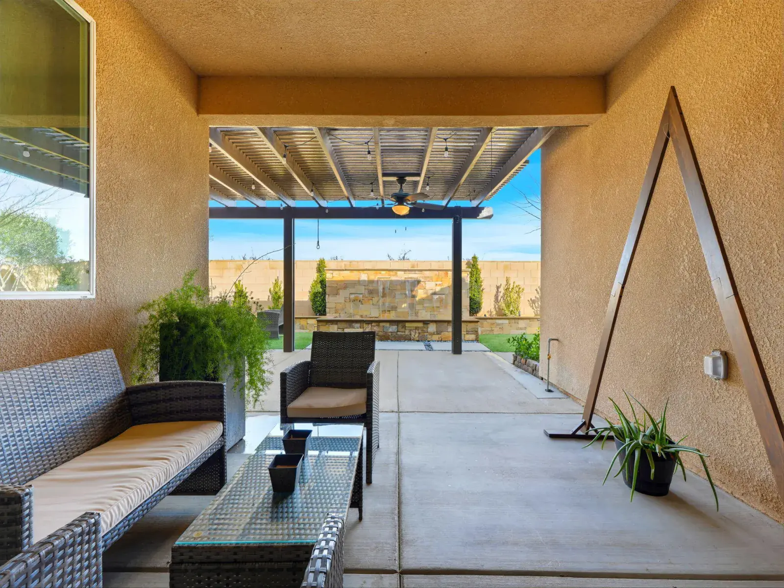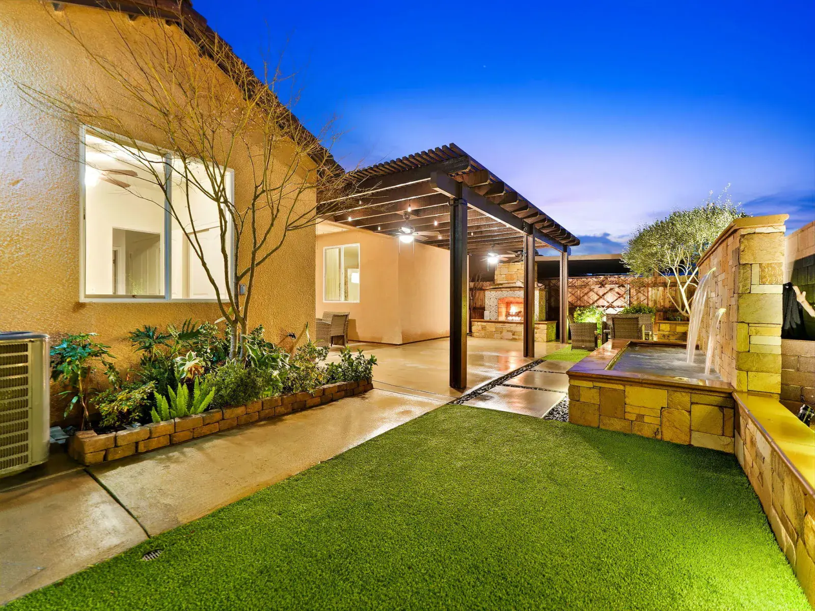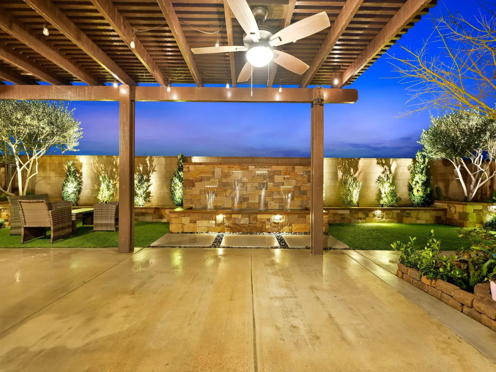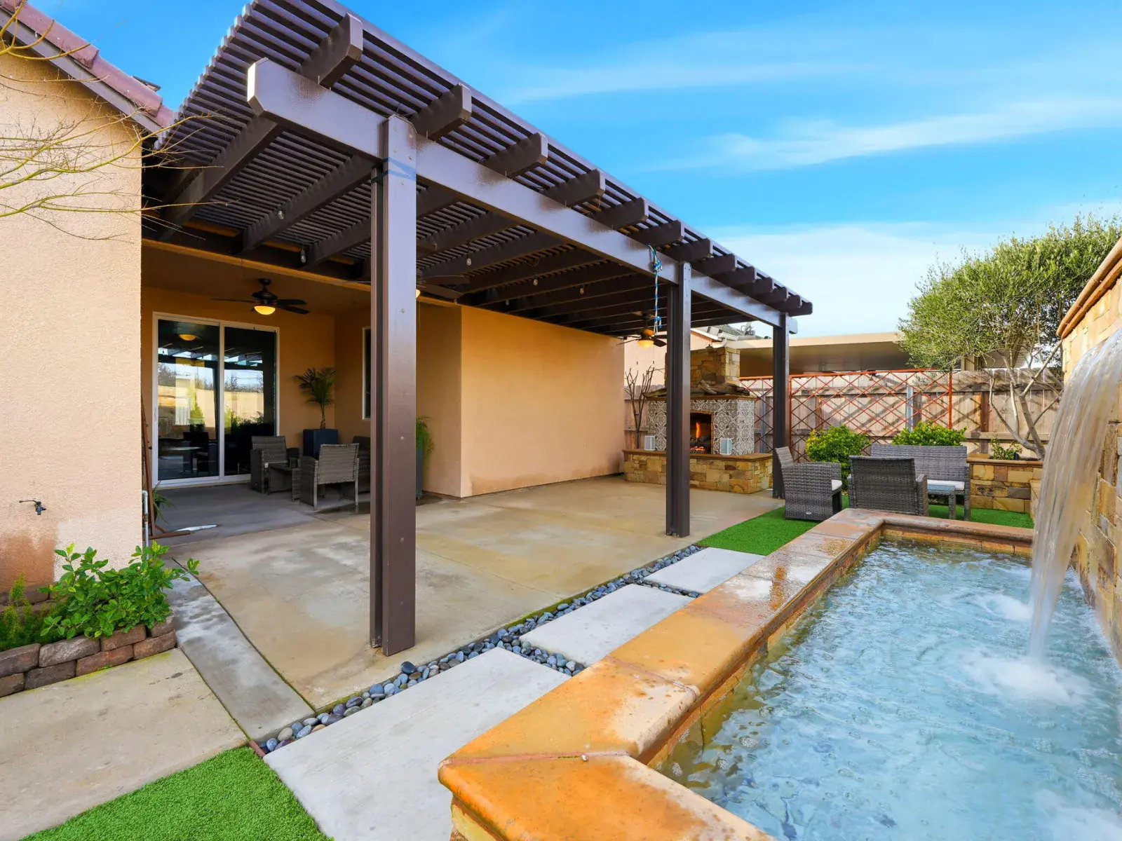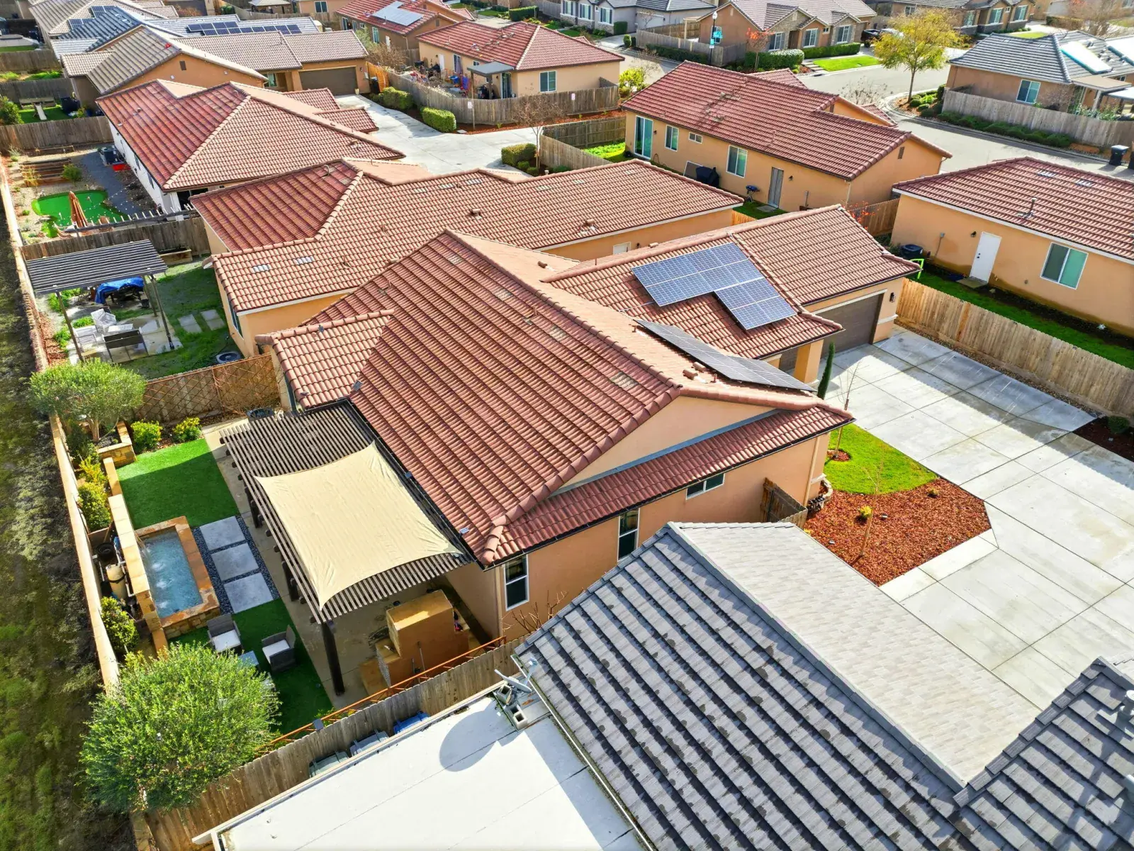 Welcome home to a standout property in NW Visalia where privacy, style, and convenience come together. Located in the gated Ashton Park community in the desirable 93291 zip code, this updated 3 bedroom, 2 bathroom, 1,426 sq ft single family home sits on a cul-de-sac, not on a main road, with no homes behind it and no random foot traffic or door knockers. The home is within the Denton Elementary School district and surrounded by walking, running, and biking paths, with a new Costco currently under construction within walking distance. Inside, recent updates include fresh modern paint within the last six months, upgraded black door hardware, accent walls in all three bedrooms, updated light fixtures, and new ceiling fans throughout, plus a whole house fan for added efficiency. The modern kitchen flows into the dining area with matching tile flooring, and both bathrooms have been updated with individual mirrors, new faucets, and gold and black accents. The home is prewired for surround sound and offers Alexa and app based smart control for multiple functions, including the backyard waterfall. Storage is well designed with custom shelving in secondary bedroom closets, a walk-in primary closet with custom shelving and extra space ideal for a small office or vanity, and decorative open shelving in the laundry room. The fully finished, low maintenance backyard features turf landscaping, olive trees, a built-in water fountain and outdoor fireplace, landscape lighting front and back, paved walkways around the home, and three outdoor ceiling fans under the pergola, along with updated exterior lighting. Additional highlights include a two car garage, a $95 per month solar lease that covers all electricity usage year round, and an HOA that maintains the front yard, parks, streets, and gated access, making this Ashton Park home an exceptional lifestyle opportunity.