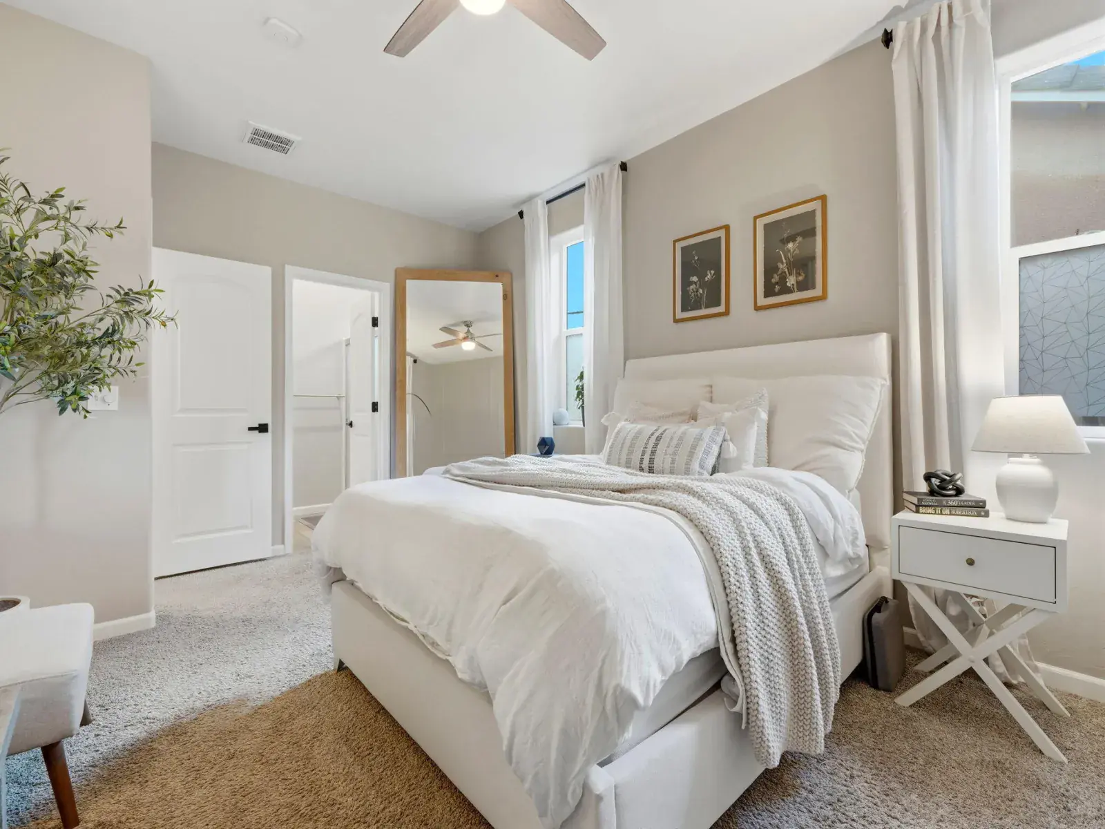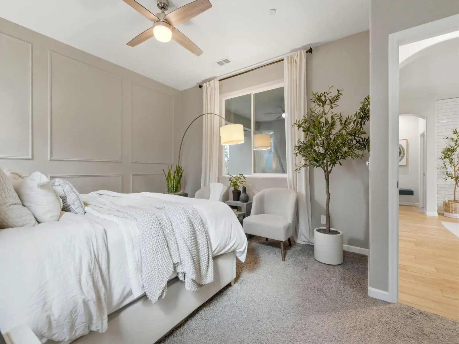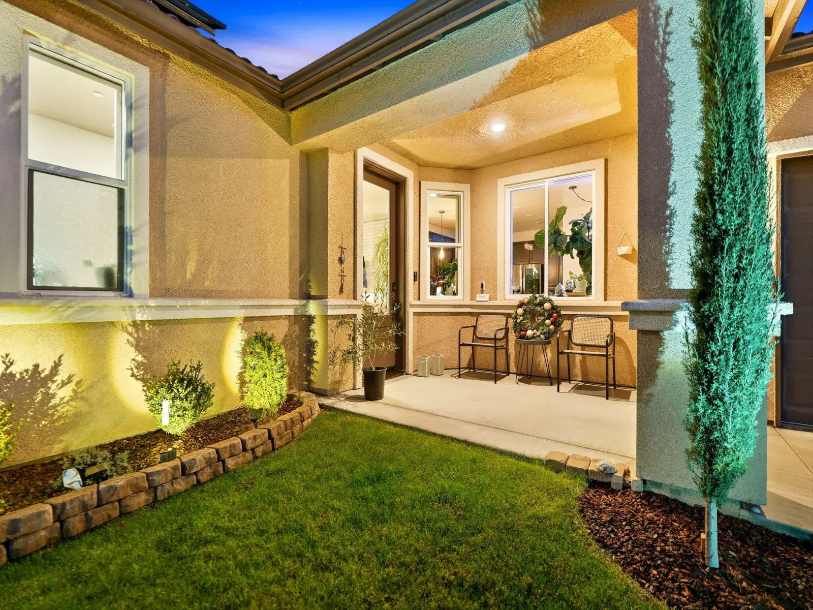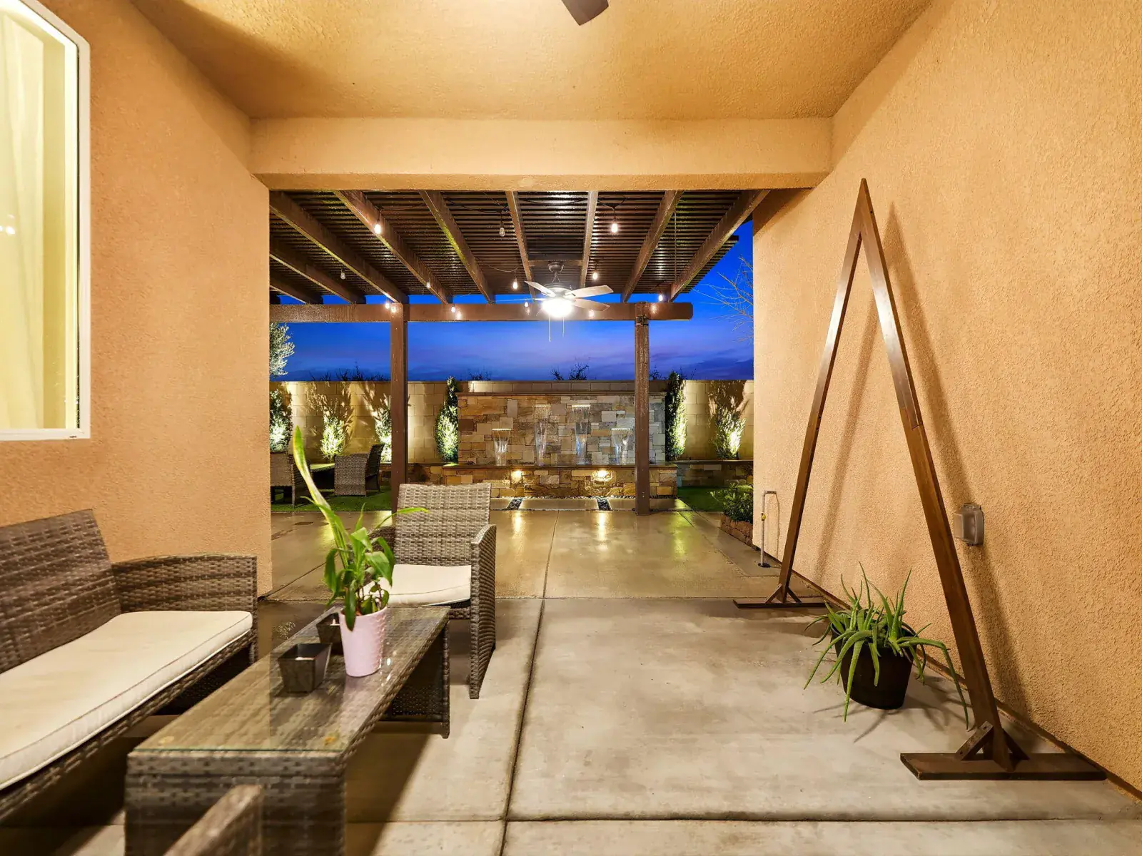 Welcome home to a standout property in NW Visalia where privacy, style, and convenience come together. Located in the gated Ashton Park community in the desirable 93291 zip code, this updated 3 bedroom, 2 bathroom, 1,426 sq ft single family home sits on a cul-de-sac, not on a main road, with no homes behind it and no random foot traffic or door knockers. The home is within the Denton Elementary School district and surrounded by walking, running, and biking paths, with a new Costco currently under construction within walking distance. Inside, recent updates include fresh modern paint within the last six months, upgraded black door hardware, accent walls in all three bedrooms, updated light fixtures, and new ceiling fans throughout, plus a whole house fan for added efficiency. The modern kitchen flows into the dining area with matching tile flooring, and both bathrooms have been updated with individual mirrors, new faucets, and gold and black accents. The home is prewired for surround sound and offers Alexa and app based smart control for multiple functions, including the backyard waterfall. Storage is well designed with custom shelving in secondary bedroom closets, a walk-in primary closet with custom shelving and extra space ideal for a small office or vanity, and decorative open shelving in the laundry room. The fully finished, low maintenance backyard features turf landscaping, olive trees, a built-in water fountain and outdoor fireplace, landscape lighting front and back, paved walkways around the home, and three outdoor ceiling fans under the pergola, along with updated exterior lighting. Additional highlights include a two car garage, a $95 per month solar lease that covers all electricity usage year round, and an HOA that maintains the front yard, parks, streets, and gated access, making this Ashton Park home an exceptional lifestyle opportunity.
