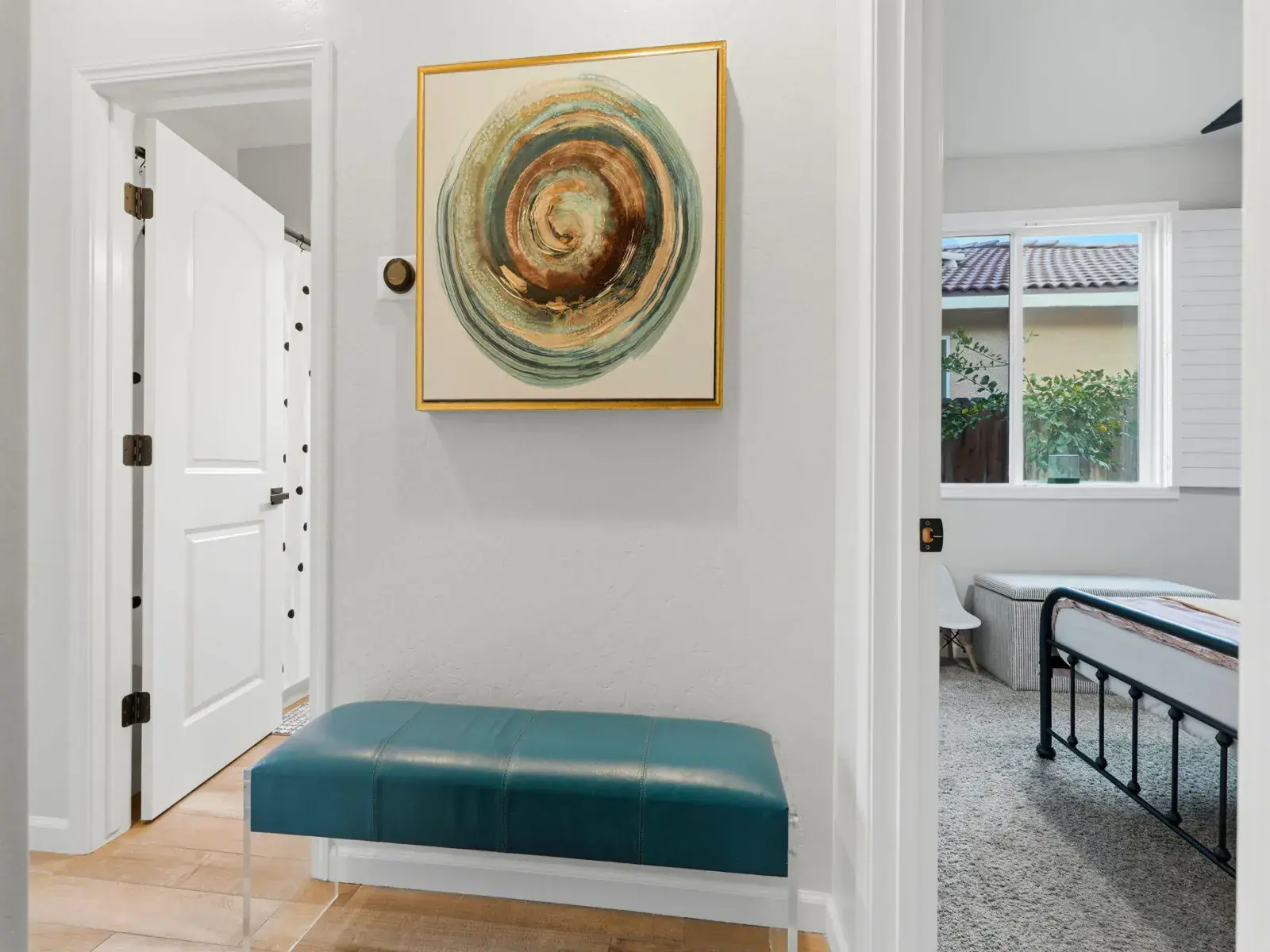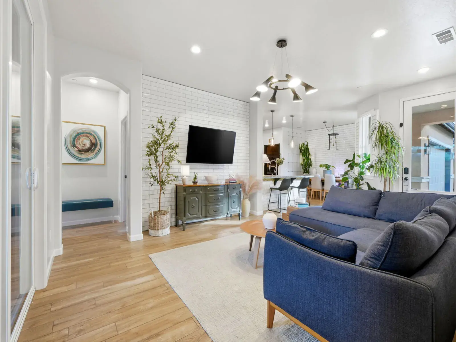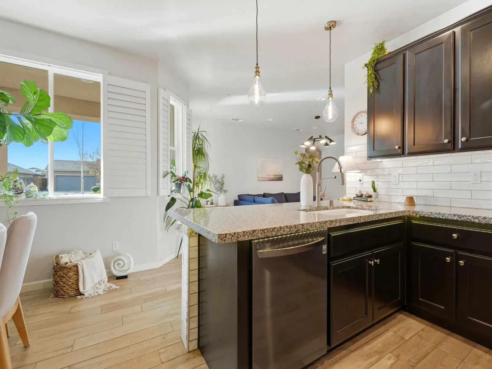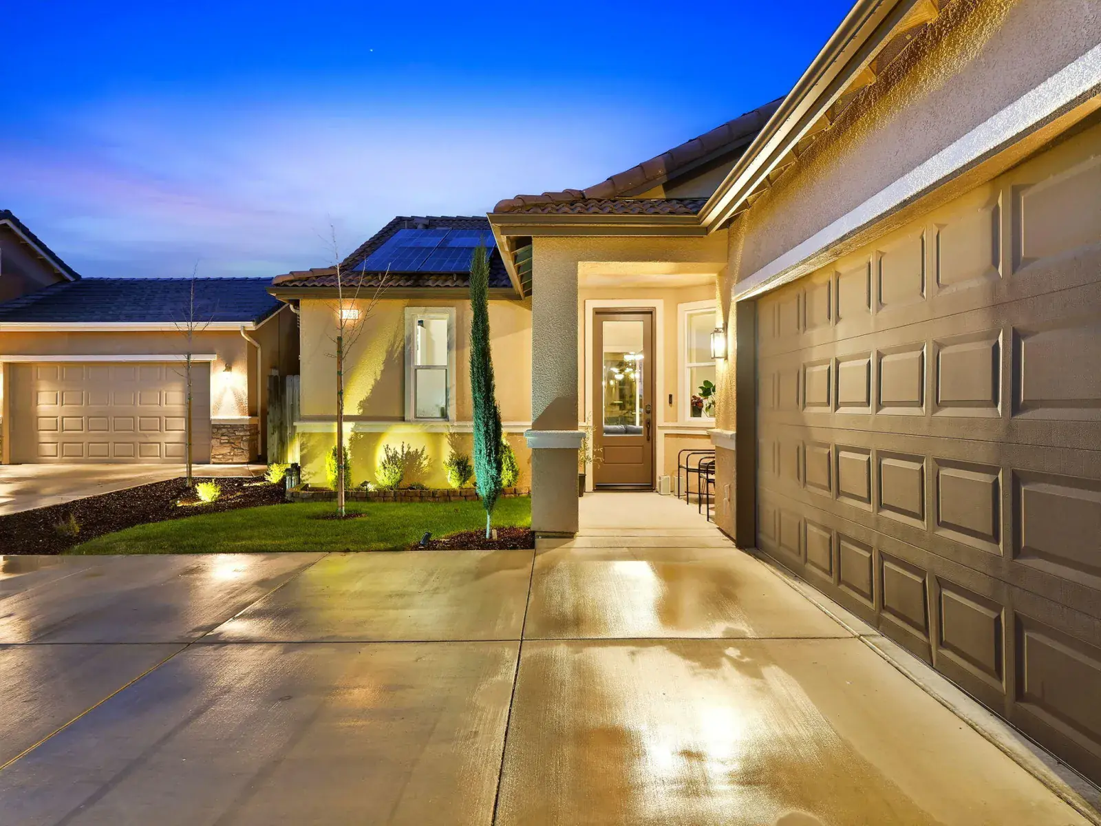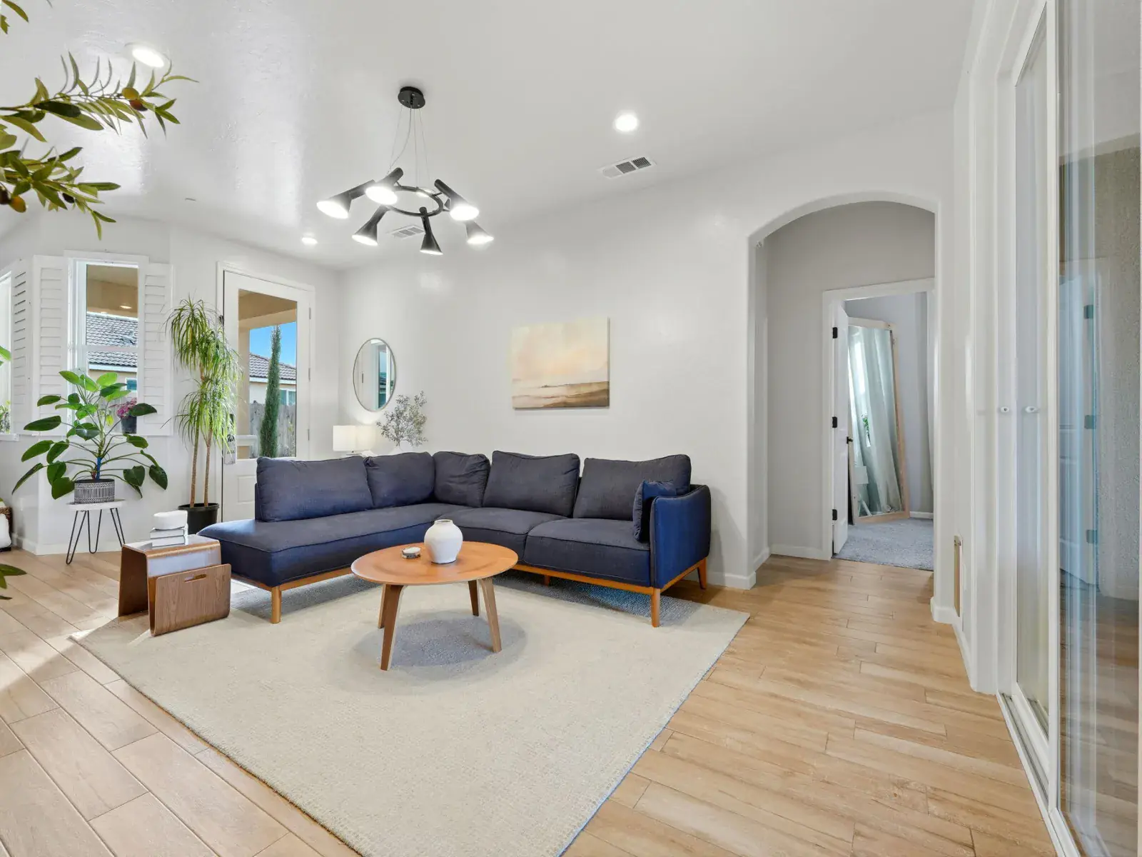 Welcome home to a standout property in NW Visalia where privacy, style, and convenience come together. Located in the gated Ashton Park community in the desirable 93291 zip code, this updated 3 bedroom, 2 bathroom, 1,426 sq ft single family home sits on a cul-de-sac, not on a main road, with no homes behind it and no random foot traffic or door knockers. The home is within the Denton Elementary School district and surrounded by walking, running, and biking paths, with a new Costco currently under construction within walking distance. Inside, recent updates include fresh modern paint within the last six months, upgraded black door hardware, accent walls in all three bedrooms, updated light fixtures, and new ceiling fans throughout, plus a whole house fan for added efficiency. The modern kitchen flows into the dining area with matching tile flooring, and both bathrooms have been updated with individual mirrors, new faucets, and gold and black accents. The home is prewired for surround sound and offers Alexa and app based smart control for multiple functions, including the backyard waterfall. Storage is well designed with custom shelving in secondary bedroom closets, a walk-in primary closet with custom shelving and extra space ideal for a small office or vanity, and decorative open shelving in the laundry room. The fully finished, low maintenance backyard features turf landscaping, olive trees, a built-in water fountain and outdoor fireplace, landscape lighting front and back, paved walkways around the home, and three outdoor ceiling fans under the pergola, along with updated exterior lighting. Additional highlights include a two car garage, a $95 per month solar lease that covers all electricity usage year round, and an HOA that maintains the front yard, parks, streets, and gated access, making this Ashton Park home an exceptional lifestyle opportunity.