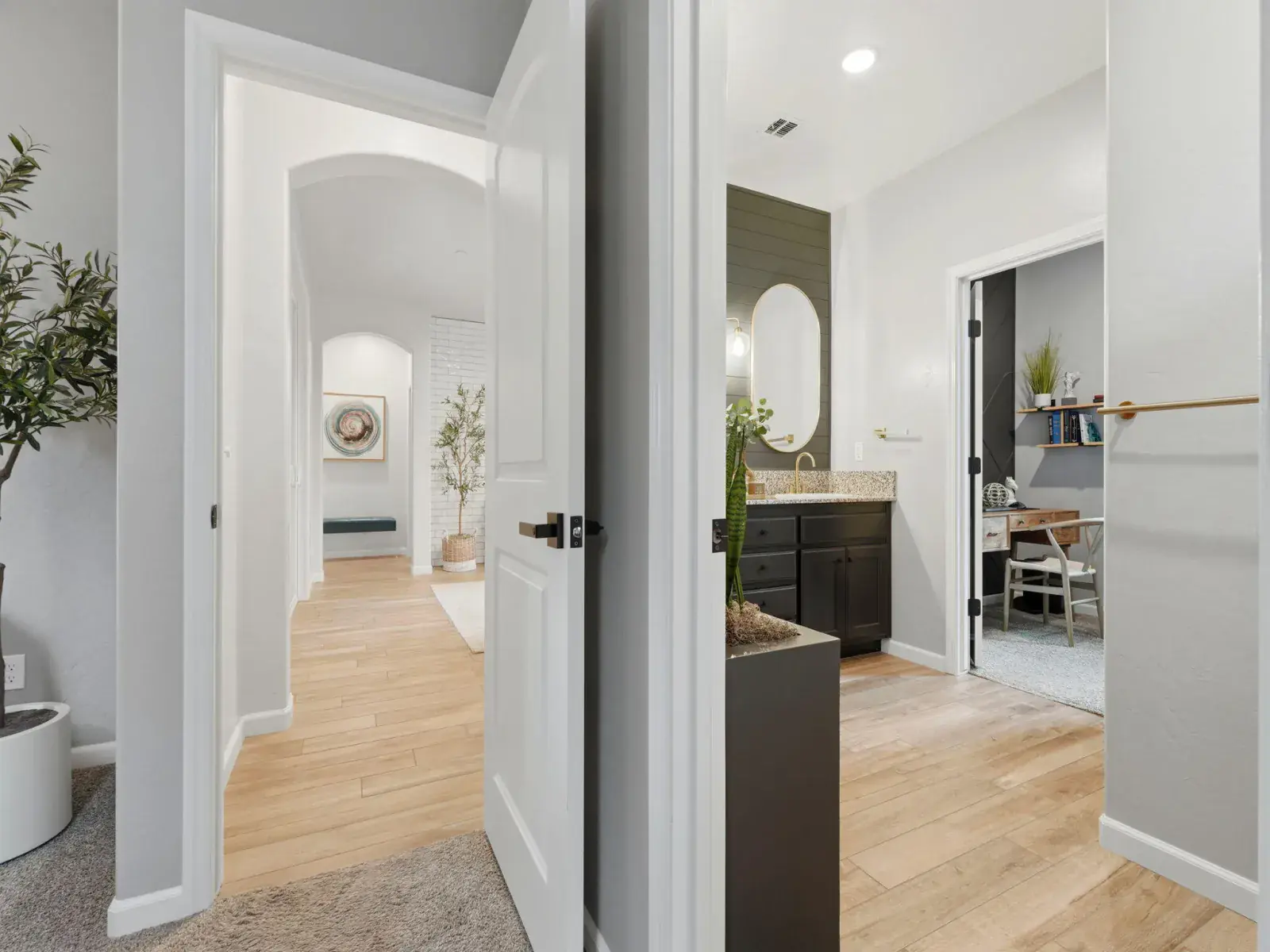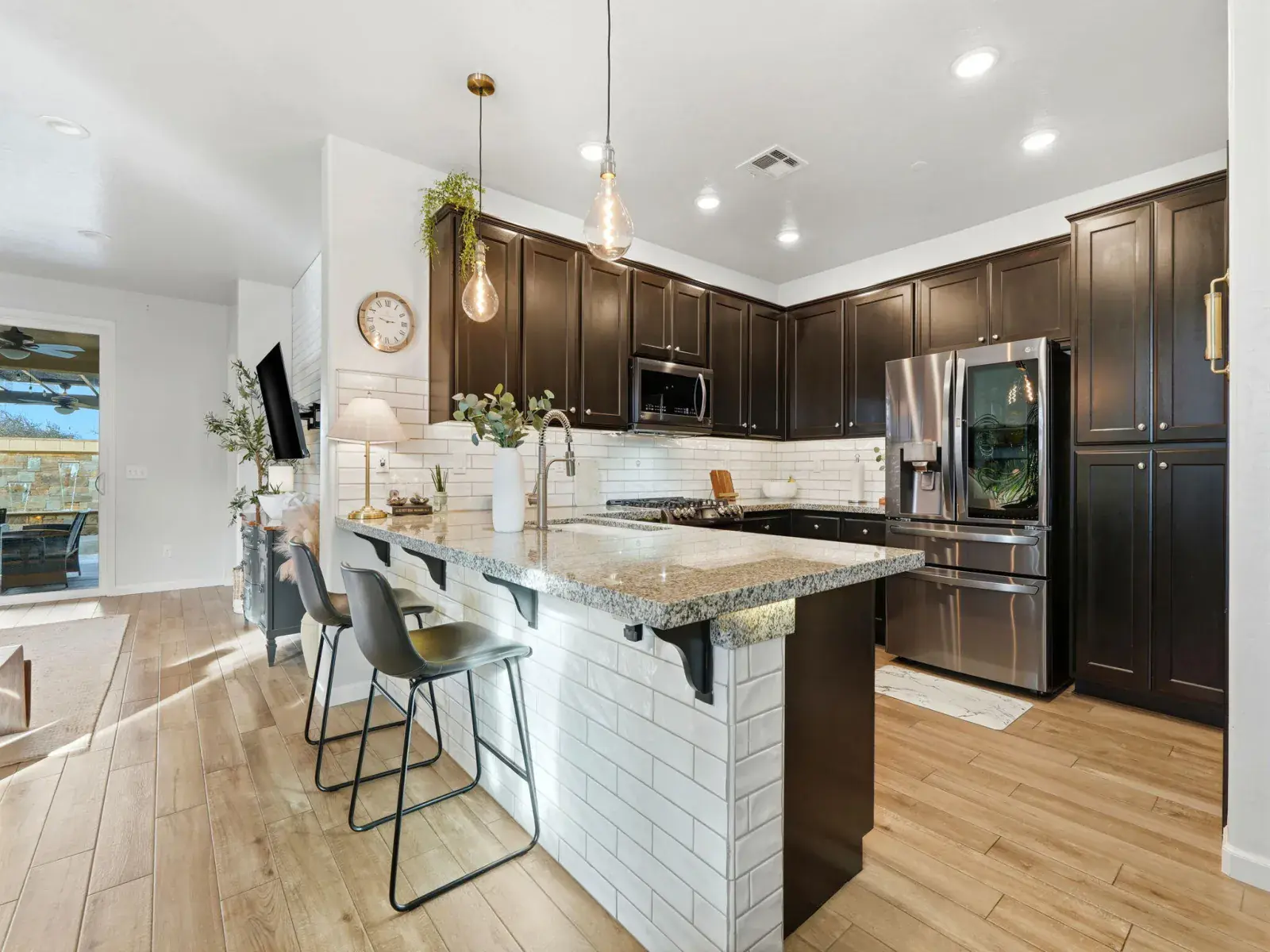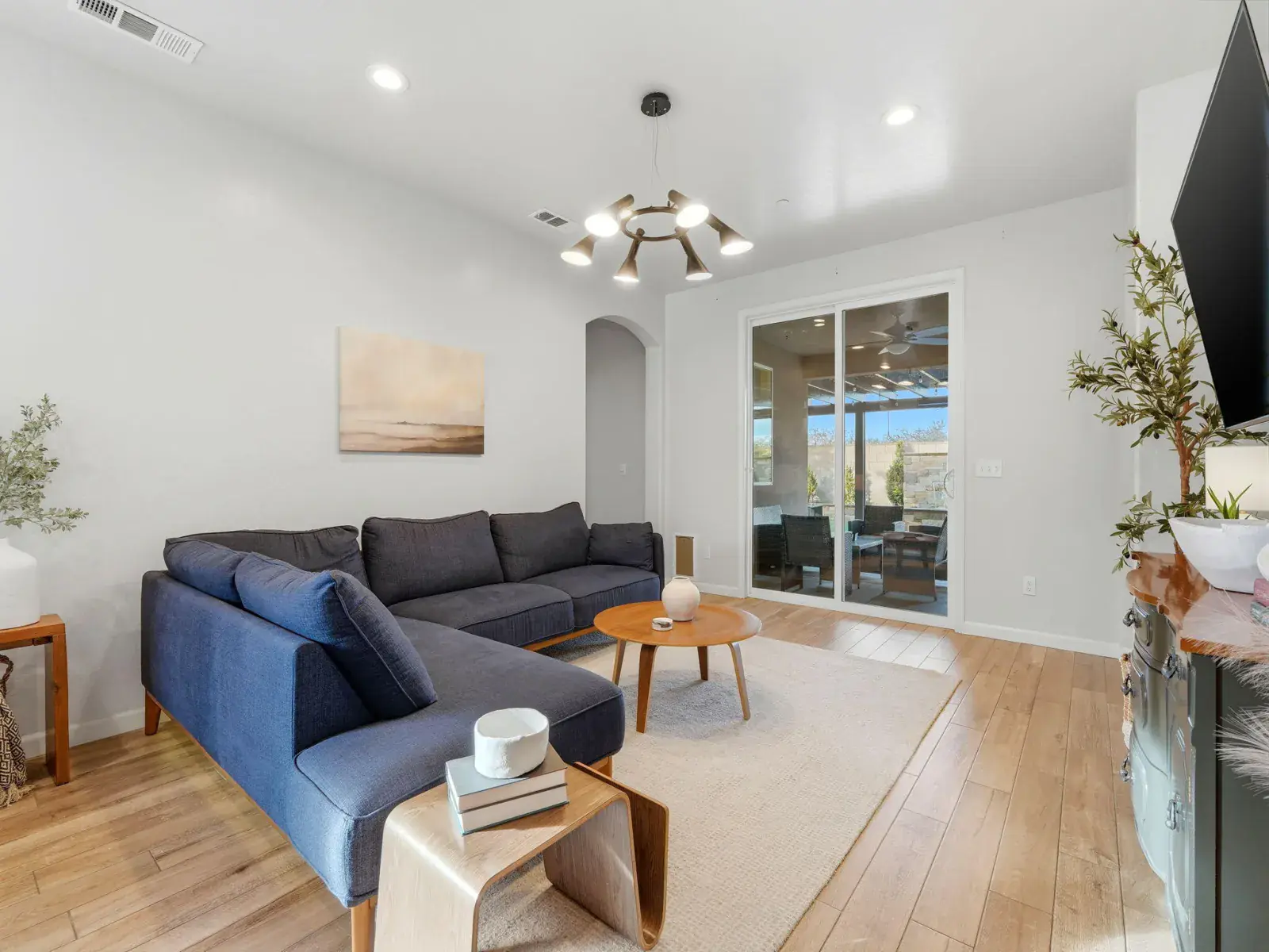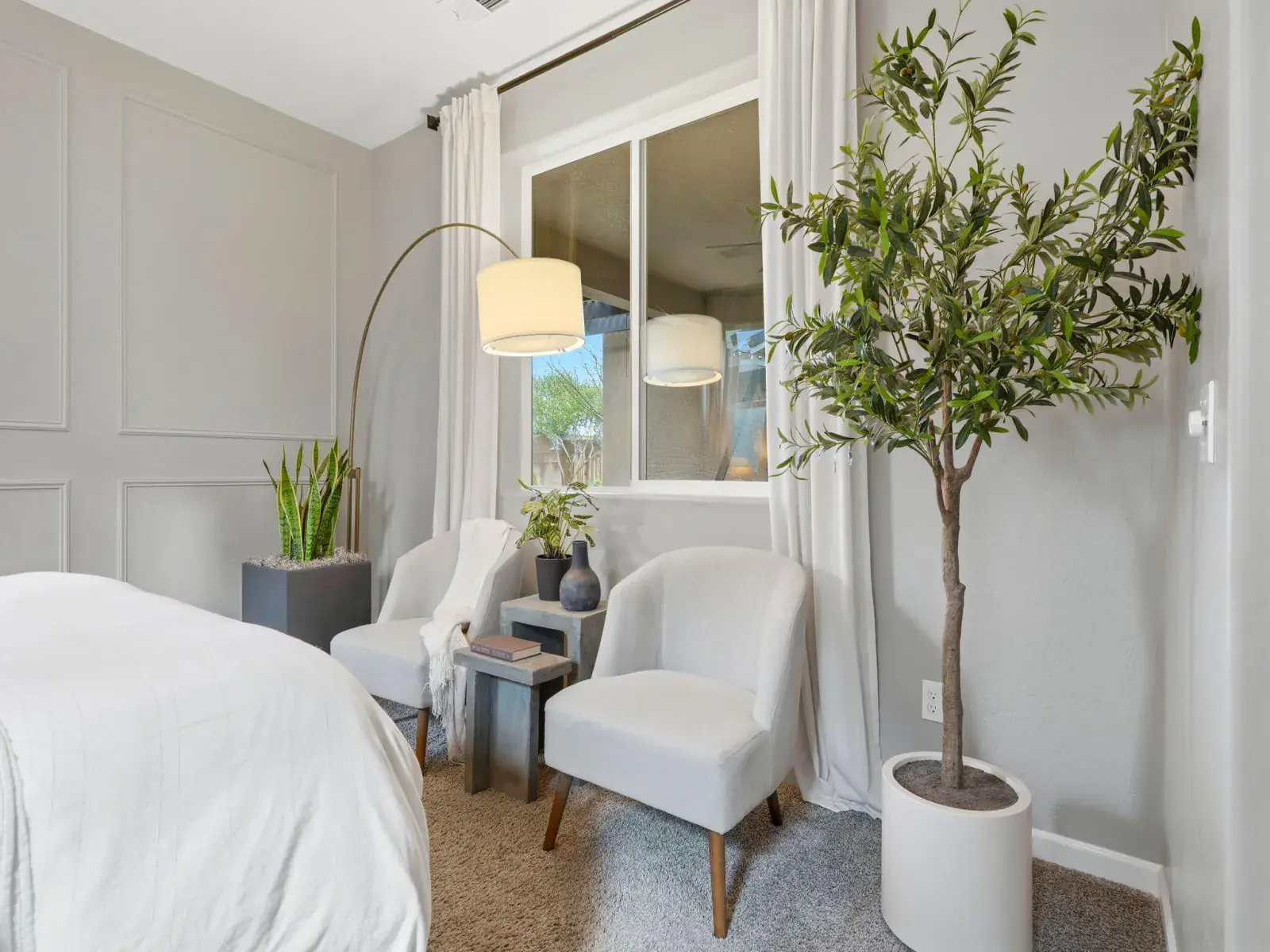 Welcome home to a standout property in NW Visalia where privacy, style, and convenience come together. Located in the gated Ashton Park community in the desirable 93291 zip code, this updated 3 bedroom, 2 bathroom, 1,426 sq ft single family home sits on a cul-de-sac, not on a main road, with no homes behind it and no random foot traffic or door knockers. The home is within the Denton Elementary School district and surrounded by walking, running, and biking paths, with a new Costco currently under construction within walking distance. Inside, recent updates include fresh modern paint within the last six months, upgraded black door hardware, accent walls in all three bedrooms, updated light fixtures, and new ceiling fans throughout, plus a whole house fan for added efficiency. The modern kitchen flows into the dining area with matching tile flooring, and both bathrooms have been updated with individual mirrors, new faucets, and gold and black accents. The home is prewired for surround sound and offers Alexa and app based smart control for multiple functions, including the backyard waterfall. Storage is well designed with custom shelving in secondary bedroom closets, a walk-in primary closet with custom shelving and extra space ideal for a small office or vanity, and decorative open shelving in the laundry room. The fully finished, low maintenance backyard features turf landscaping, olive trees, a built-in water fountain and outdoor fireplace, landscape lighting front and back, paved walkways around the home, and three outdoor ceiling fans under the pergola, along with updated exterior lighting. Additional highlights include a two car garage, a $95 per month solar lease that covers all electricity usage year round, and an HOA that maintains the front yard, parks, streets, and gated access, making this Ashton Park home an exceptional lifestyle opportunity.