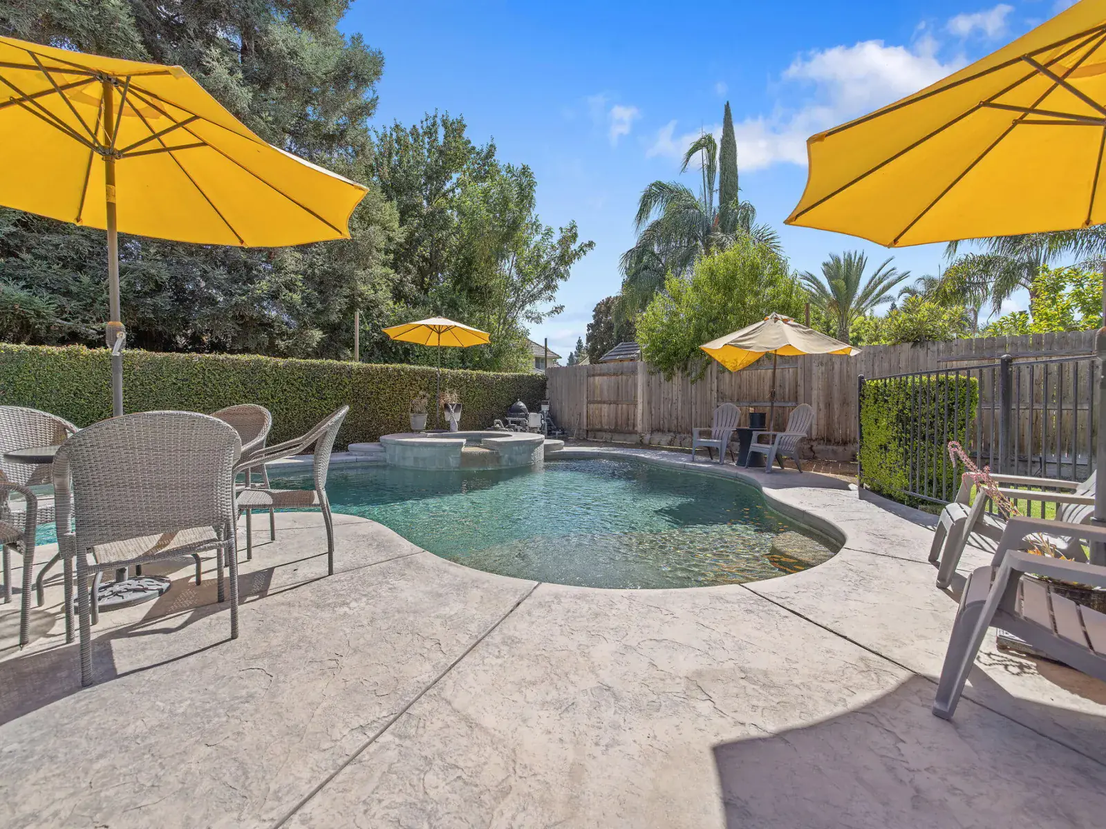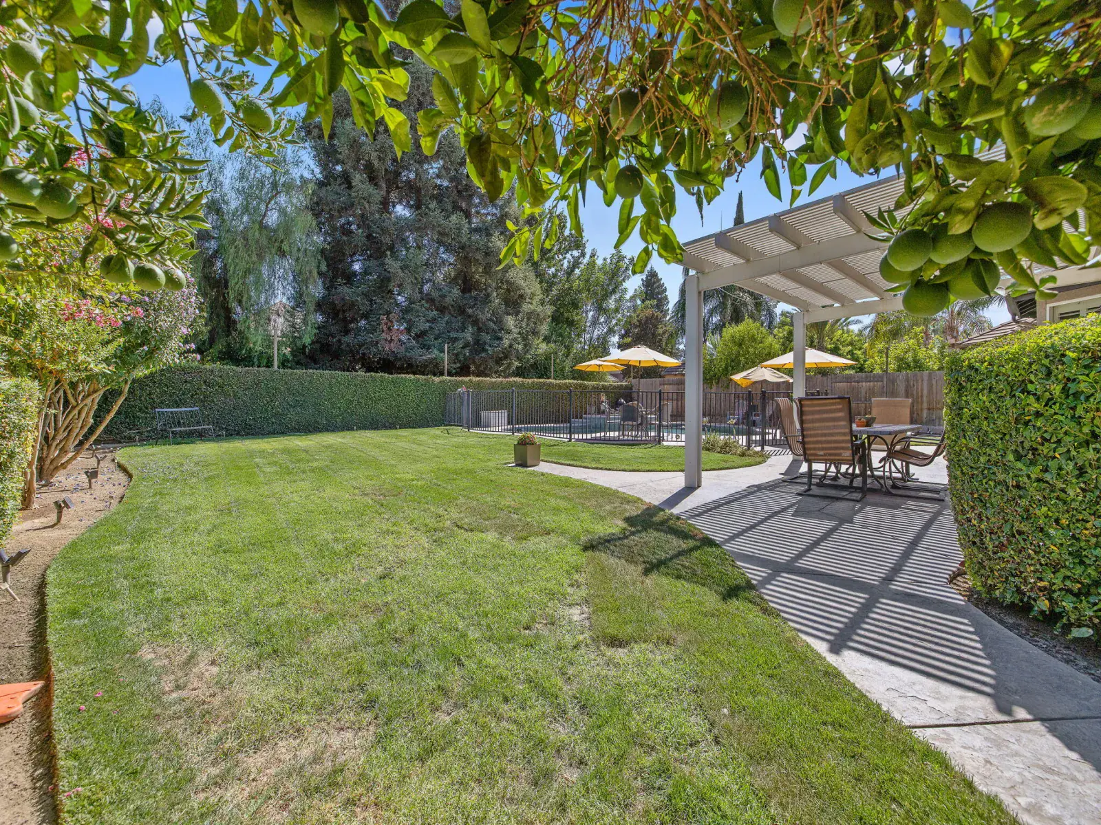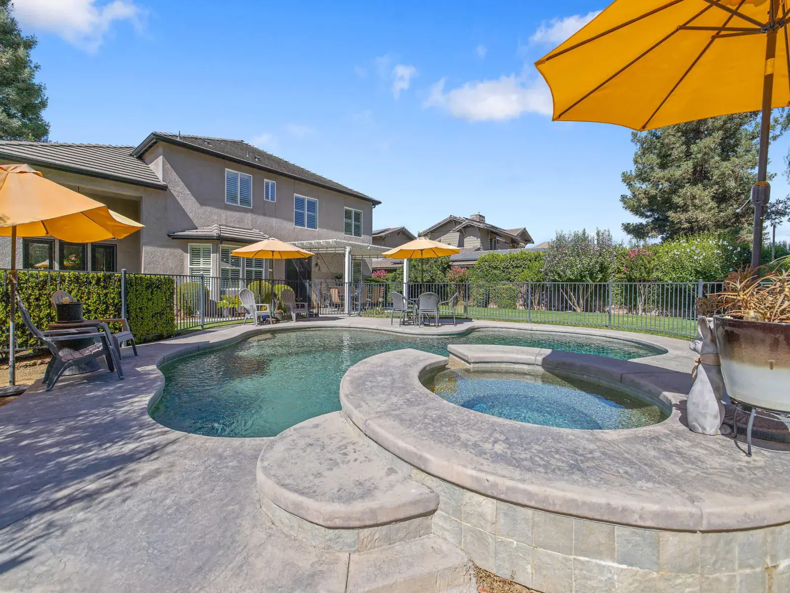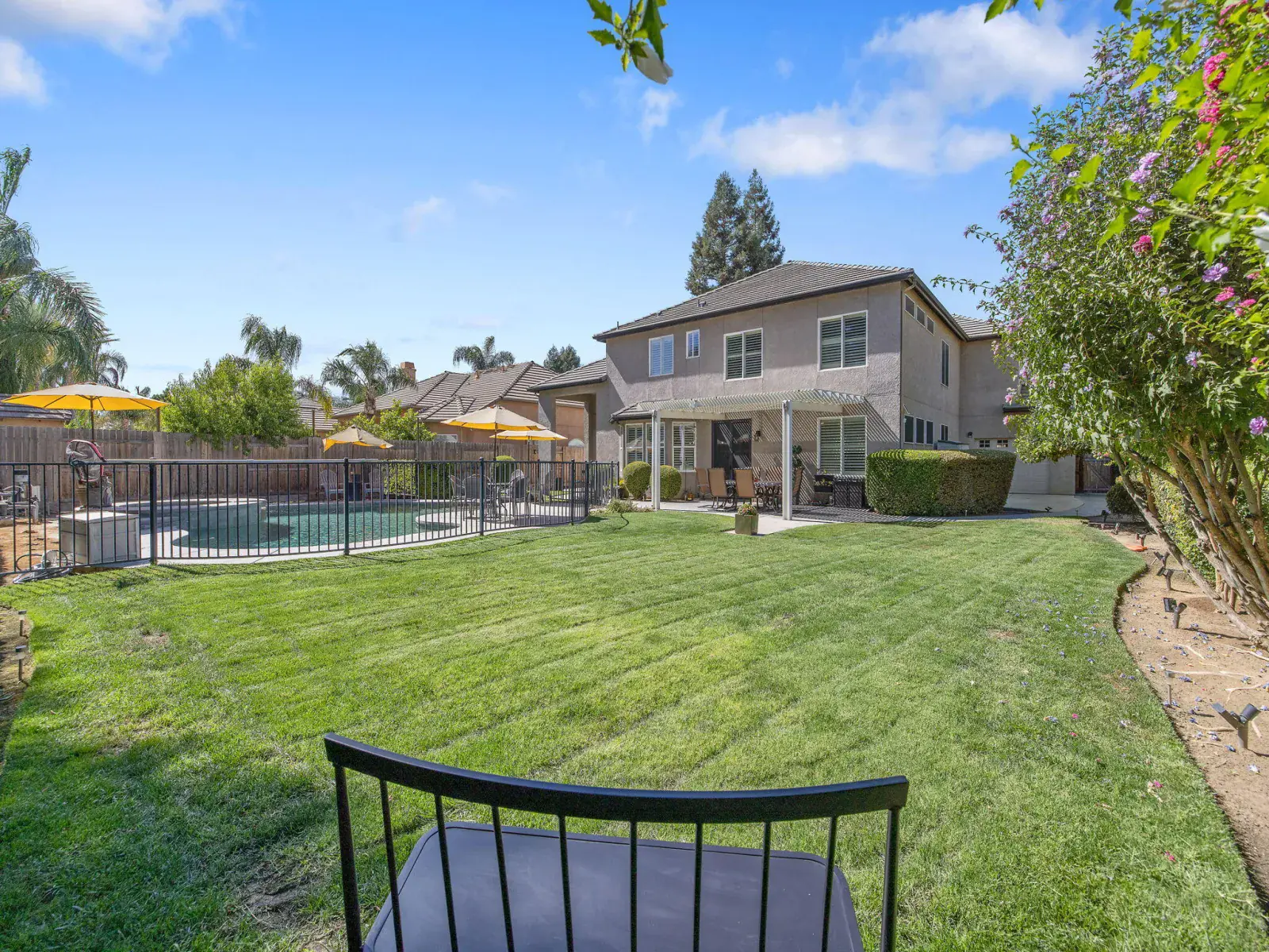 But the true showstopper is the private backyard oasis—a park-like setting with mature landscaping, multiple patio areas for lounging or dining, and a sparkling pool and spa ready for summer fun or peaceful evenings under the stars. A 3-car garage with a rare pull-through adds even more convenience to this exceptional property.