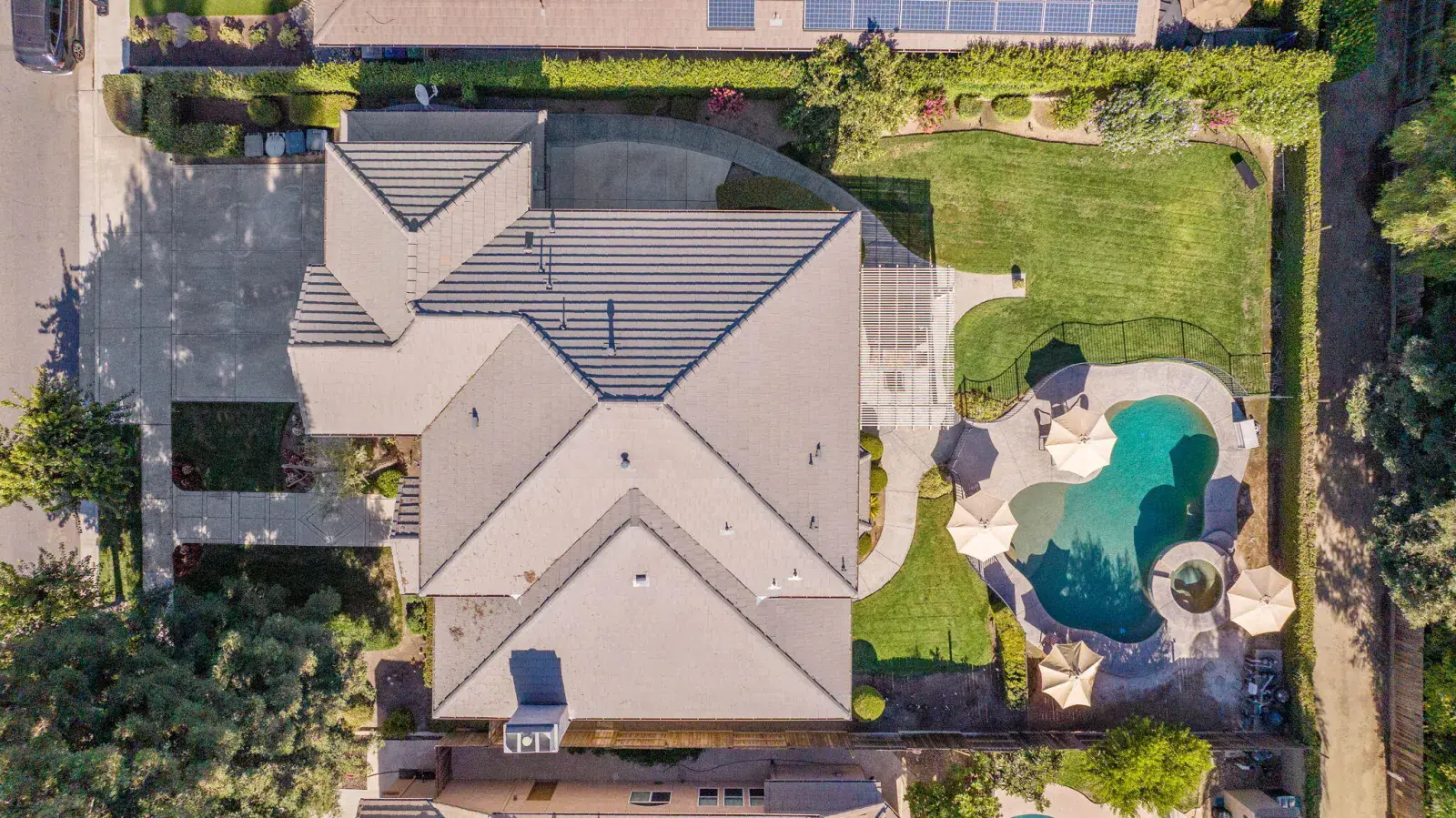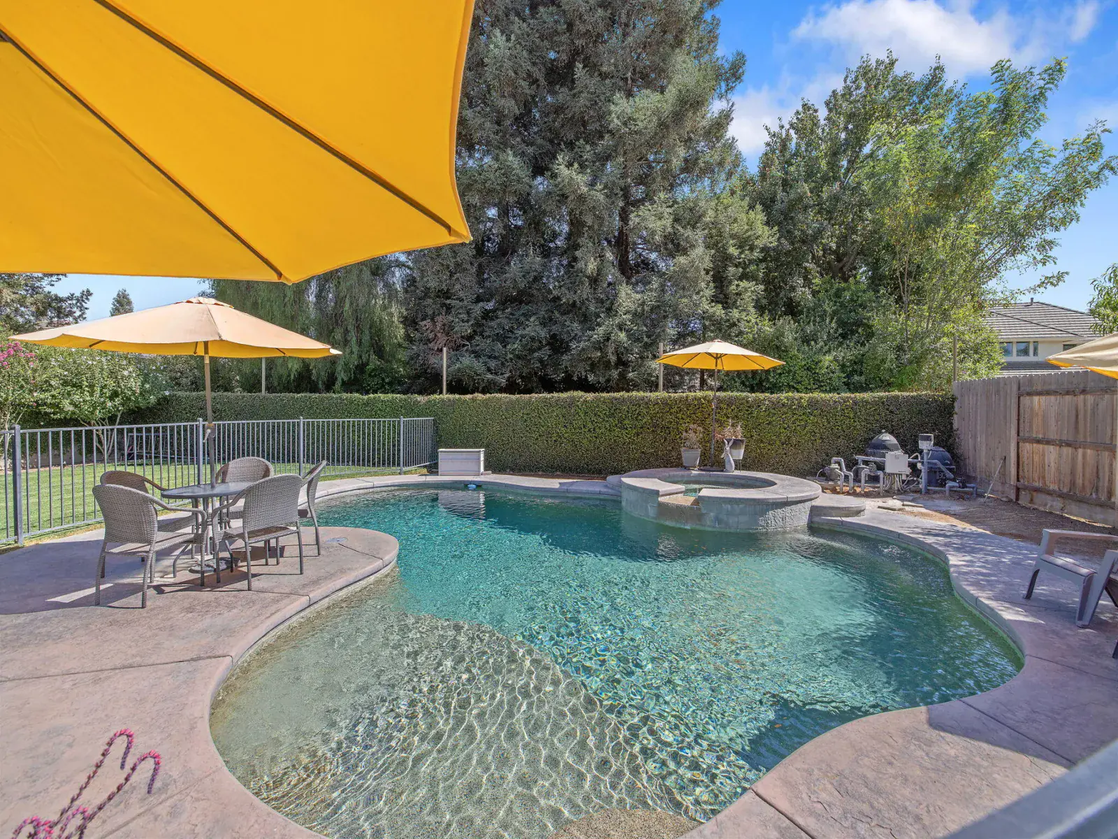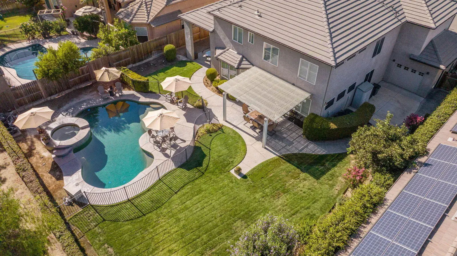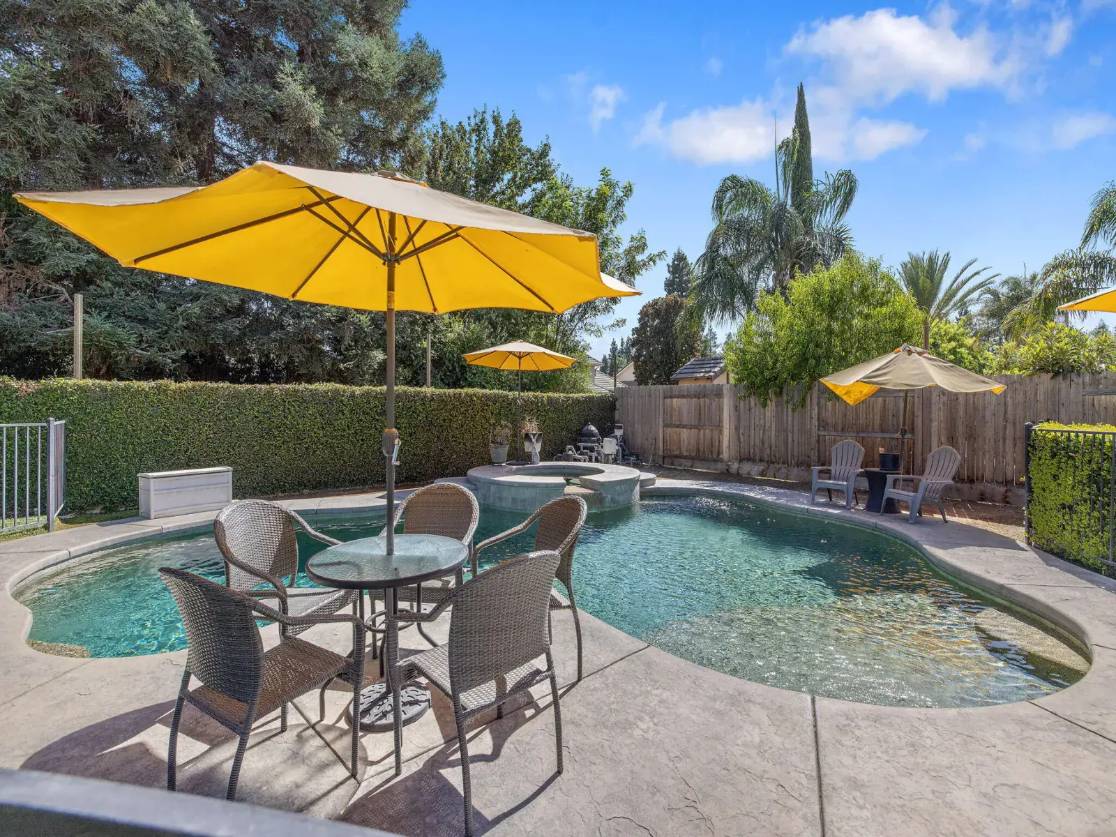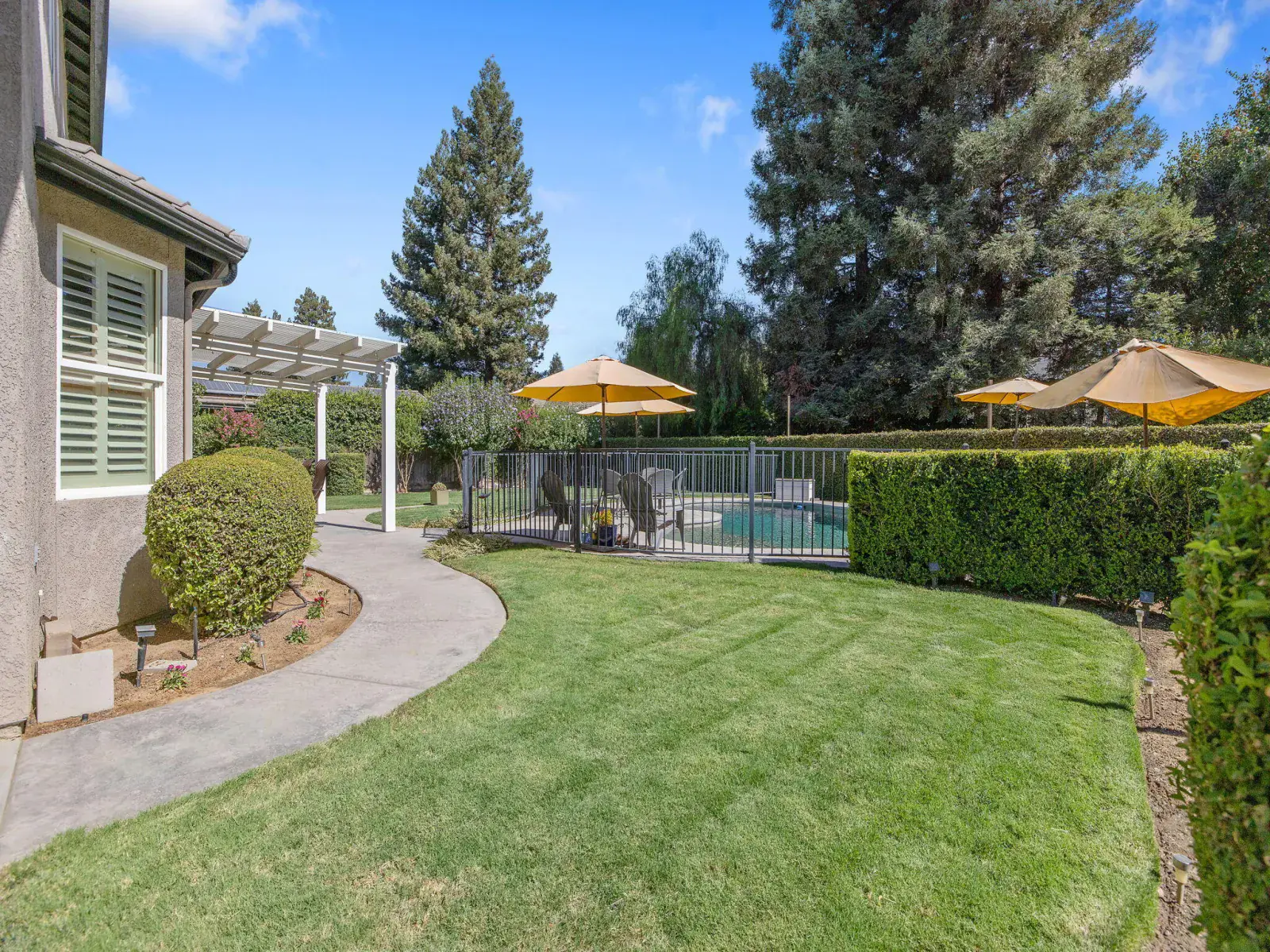 But the true showstopper is the private backyard oasis—a park-like setting with mature landscaping, multiple patio areas for lounging or dining, and a sparkling pool and spa ready for summer fun or peaceful evenings under the stars. A 3-car garage with a rare pull-through adds even more convenience to this exceptional property.