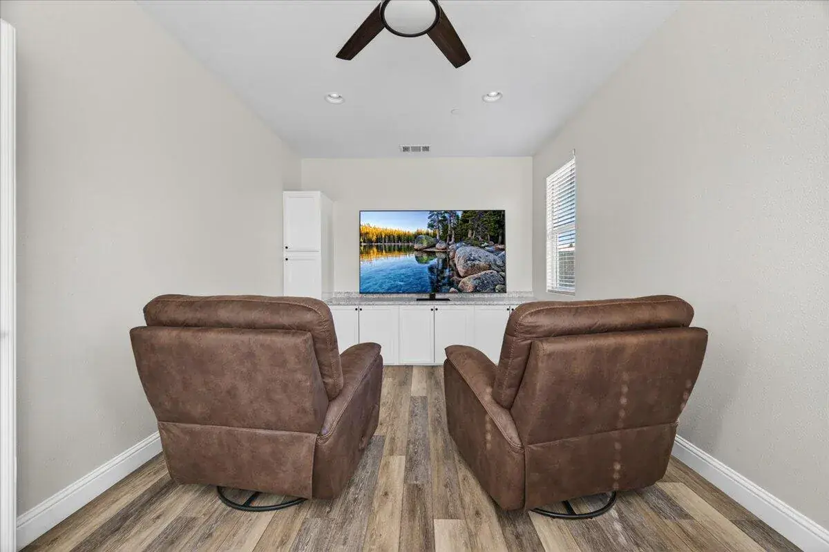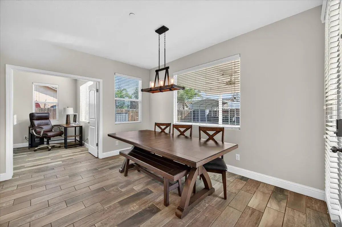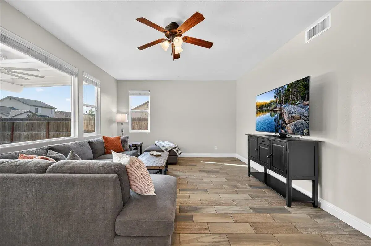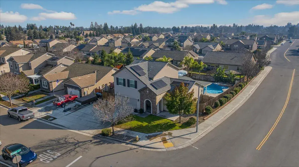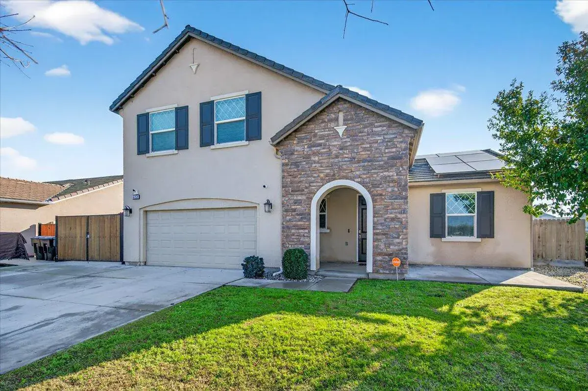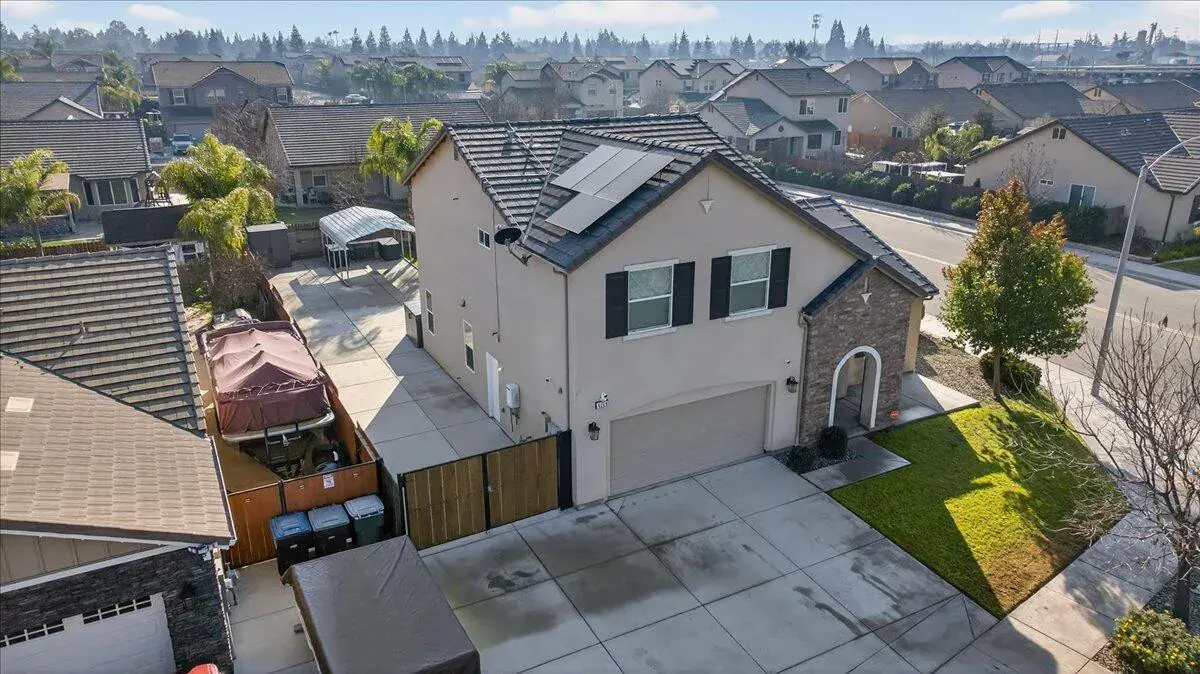 Pride of ownership shines throughout this spacious two-story home located on a large corner lot with gated RV parking in the highly desirable Northwest quadrant of Visalia. Step inside to newer two-tone interior paint, soaring ceilings, and wood like tile flooring throughout creating a bright and welcoming atmosphere. The main level features an open, light-filled kitchen with granite countertops, an island sitting bar, and walk-in pantry seamlessly connecting to the living room, dining area, and a generous bonus room perfect for entertaining or everyday living. A separate downstairs bedroom with an adjoining updated full bathroom adds flexibility for guests or multi-generational living. Upstairs, the expansive primary suite offers a spa-like ensuite bathroom and ample closet space. Two additional bedrooms, two full bathrooms and a convenient laundry room complete the upper level. Enjoy modern efficiency and peace of mind with a premium high-capacity Sunrun solar system, a newer HVAC system and a tankless water heater. Also, a Vivint alarm system. The backyard is designed for relaxation and fun, featuring a covered patio, a beautiful sparkling pool that includes an umbrella insert, 4 deck water jets, a bubbler and two water fall sheets. Also, a gated side yard for a dog run or garden. Refrigerator, washer, dryer, tv and some furniture are included in the sales price. Ideally located near top-rated schools, neighborhood parks, shopping, and with easy freeway access, this home truly has it all. Schedule your showing today to come see for yourself what this beautiful property has to offer.