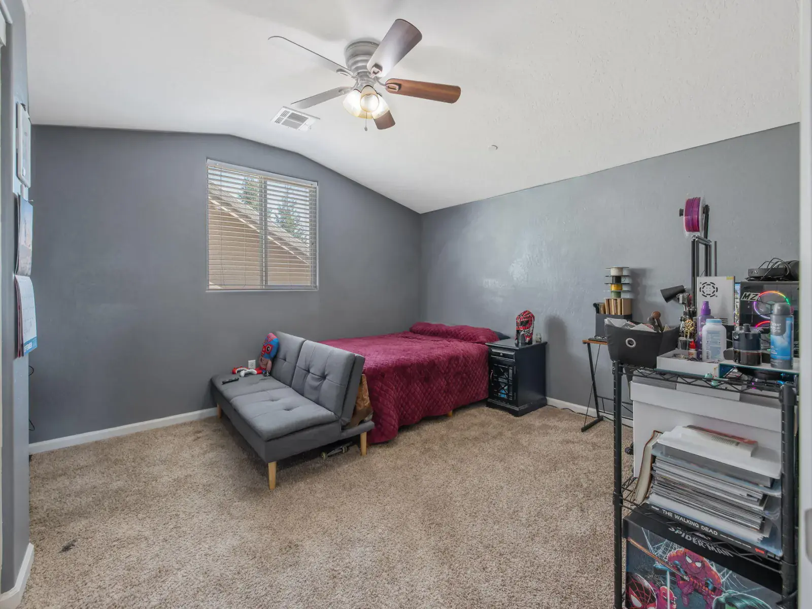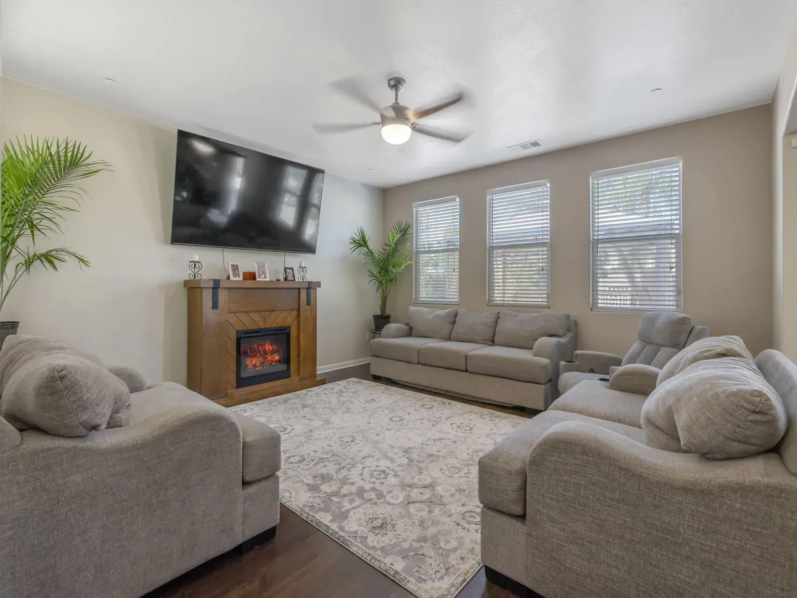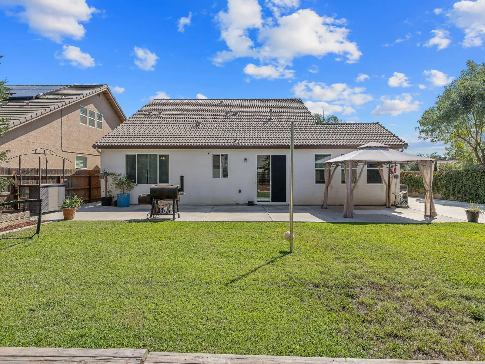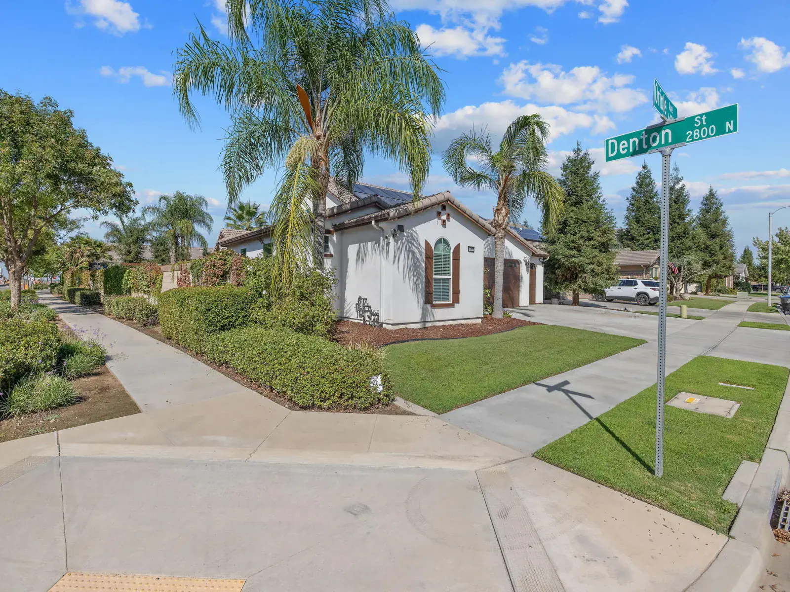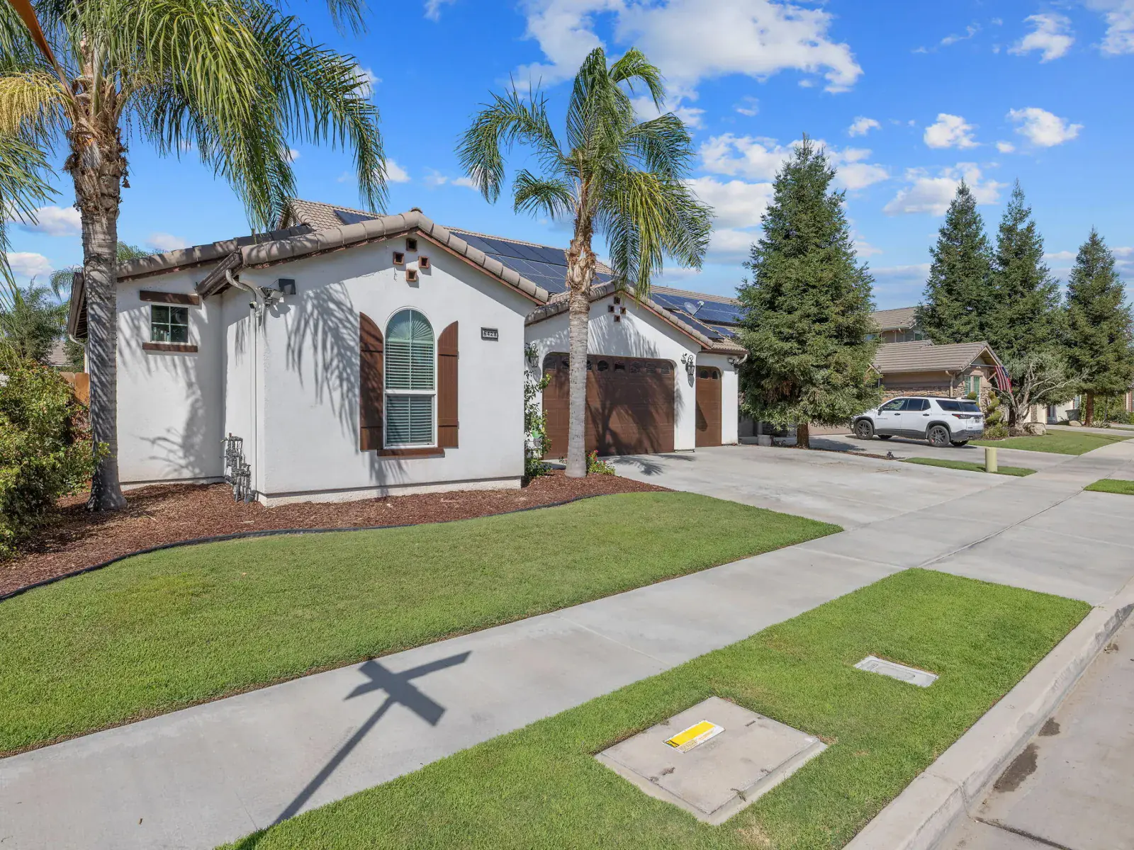 Nearly 3,000 sqft of Spanish-style elegance with Smart Home features in Northwest Visalia featuring 5 beds, 4 baths and OWNED SOLAR with little to no electric bill! Set on a generous corner lot with striking custom cement work front and back. The first floor shines with engineered flooring, a split layout & gourmet kitchen with granite counters & stainless steel appliances. Upstairs, enjoy a private bedroom & full bath plus a large loft complete with a jaw dropping MOVIE THEATER! This beautifully upgraded home is designed for modern living featuring fully equipped smart-home features throughout. Enjoy the convenience of a smart lock on both the main entry and garage door, a smart thermostat for effortless climate control, and a smart garage system that offers security and ease at your fingertips. Outside, expansive outdoor living awaits with fruit trees, garden areas, a separate private terrace & side yard. This amazing home also Includes a water heater—and a 3-car garage. A rare blend of style, space & efficiency in a highly desirable location. Schedule your showing today!