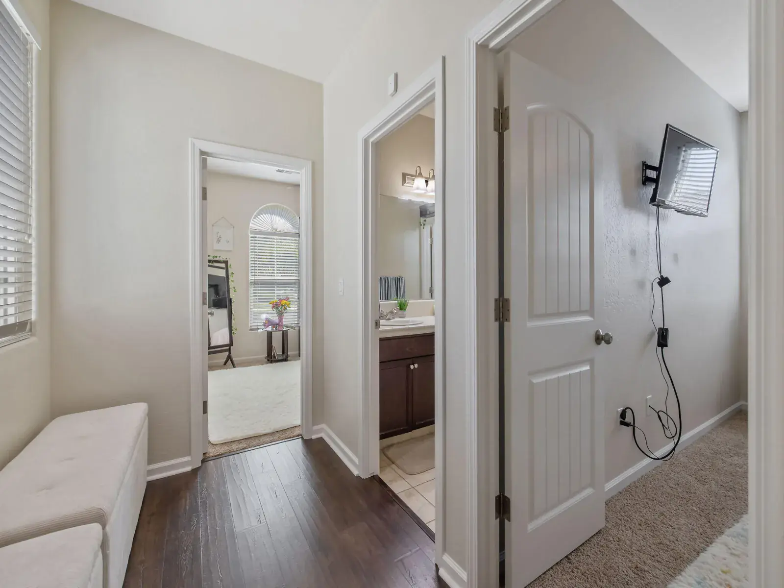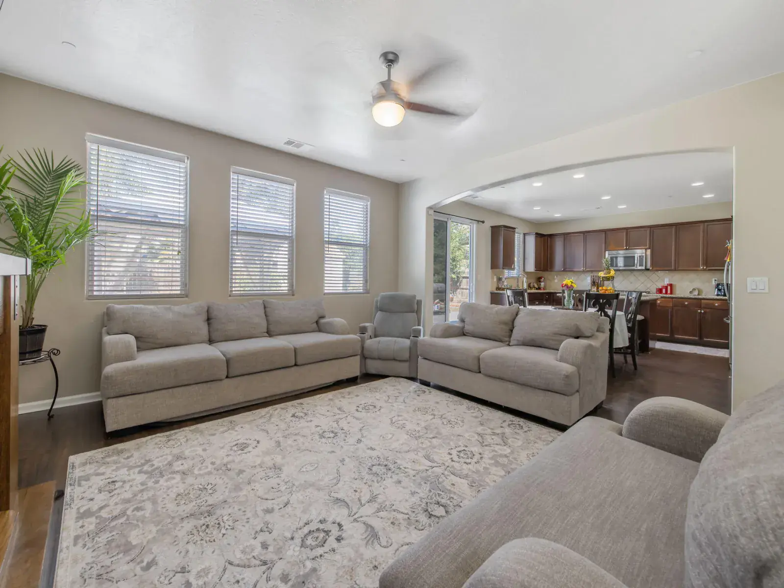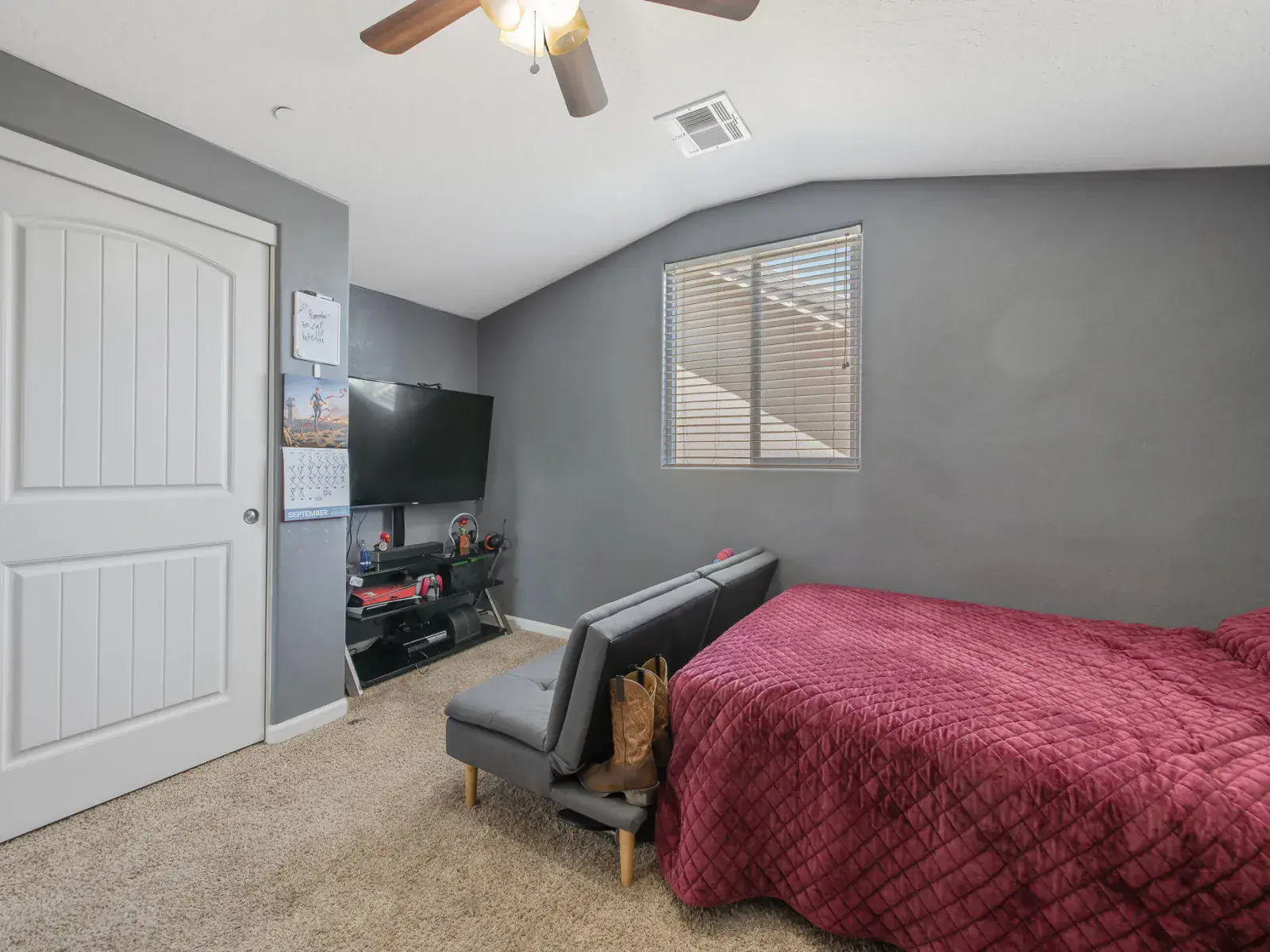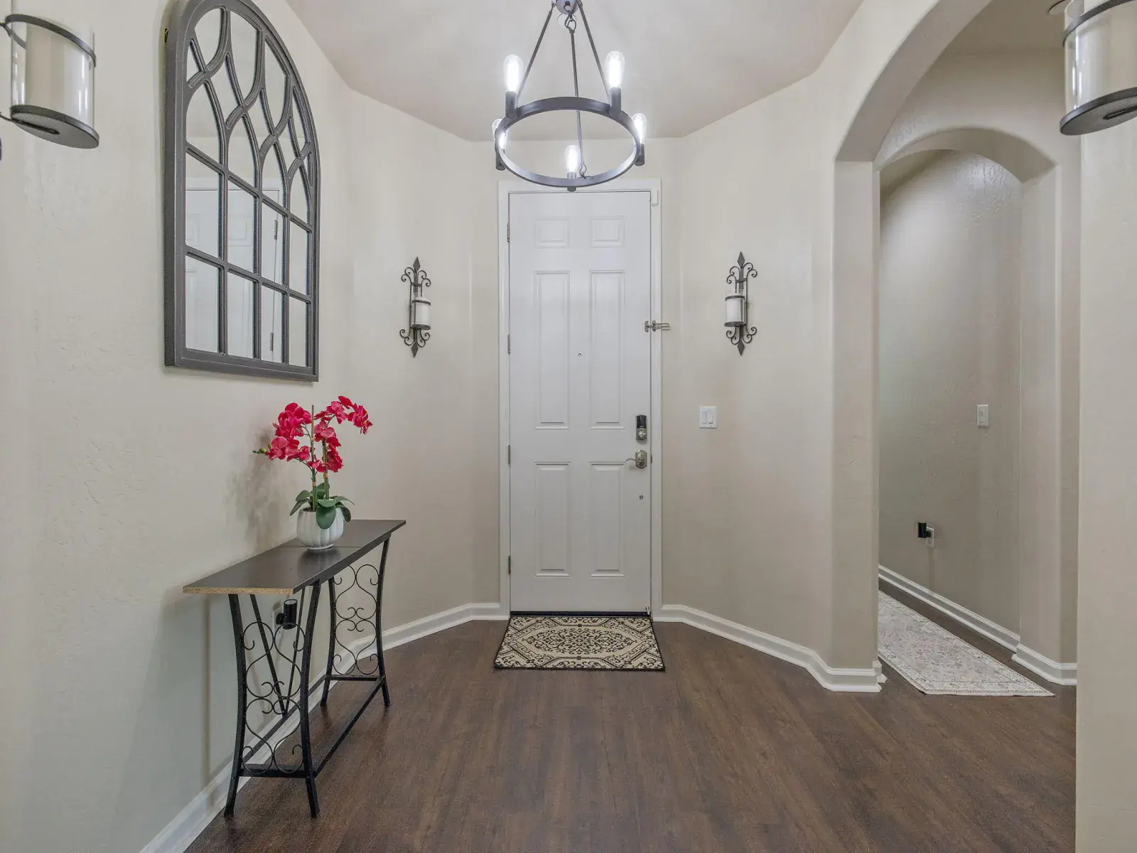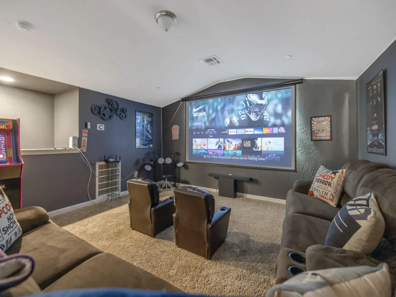 Nearly 3,000 sqft of Spanish-style elegance with Smart Home features in Northwest Visalia featuring 5 beds, 4 baths and OWNED SOLAR with little to no electric bill! Set on a generous corner lot with striking custom cement work front and back. The first floor shines with engineered flooring, a split layout & gourmet kitchen with granite counters & stainless steel appliances. Upstairs, enjoy a private bedroom & full bath plus a large loft complete with a jaw dropping MOVIE THEATER! This beautifully upgraded home is designed for modern living featuring fully equipped smart-home features throughout. Enjoy the convenience of a smart lock on both the main entry and garage door, a smart thermostat for effortless climate control, and a smart garage system that offers security and ease at your fingertips. Outside, expansive outdoor living awaits with fruit trees, garden areas, a separate private terrace & side yard. This amazing home also Includes a water heater—and a 3-car garage. A rare blend of style, space & efficiency in a highly desirable location. Schedule your showing today!