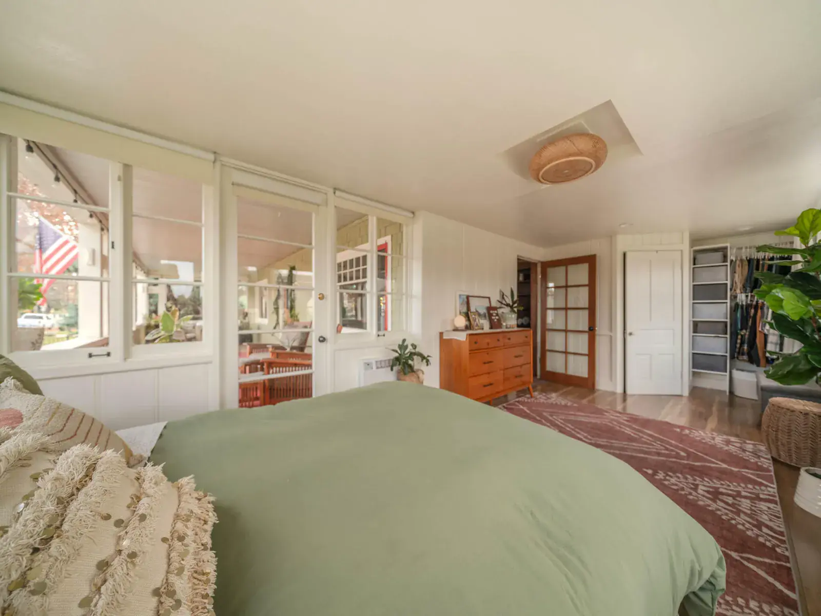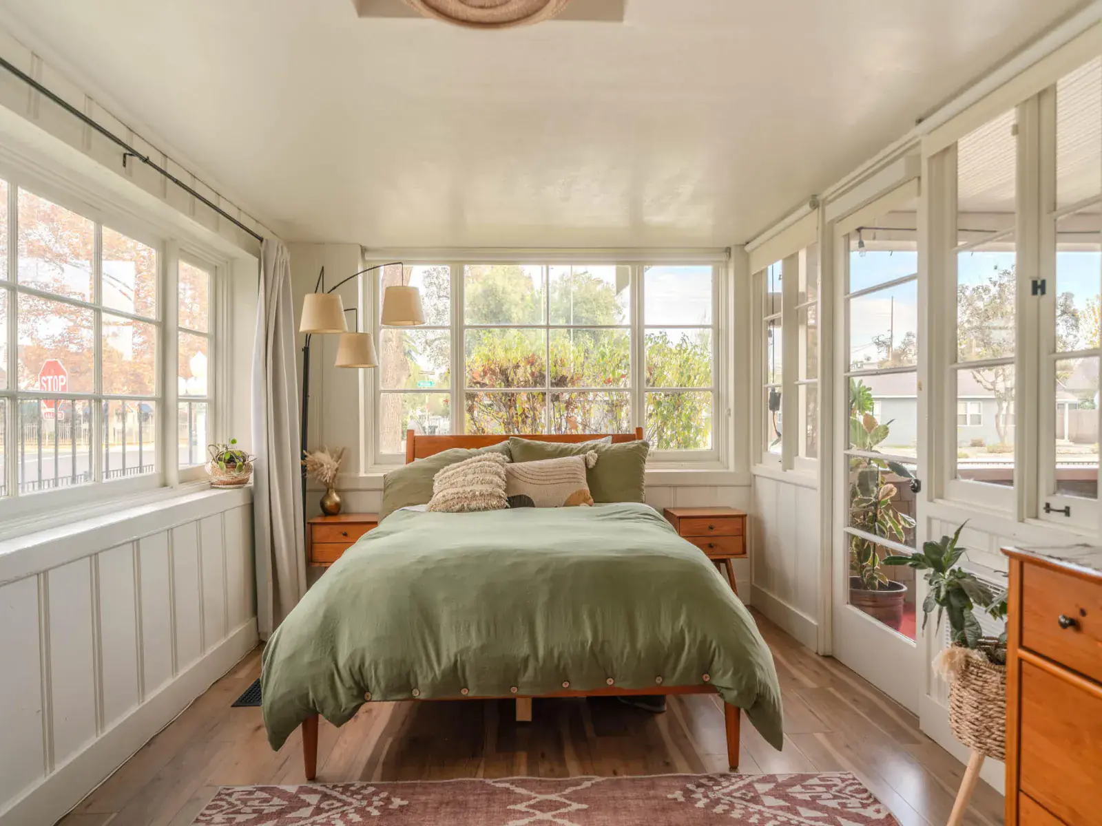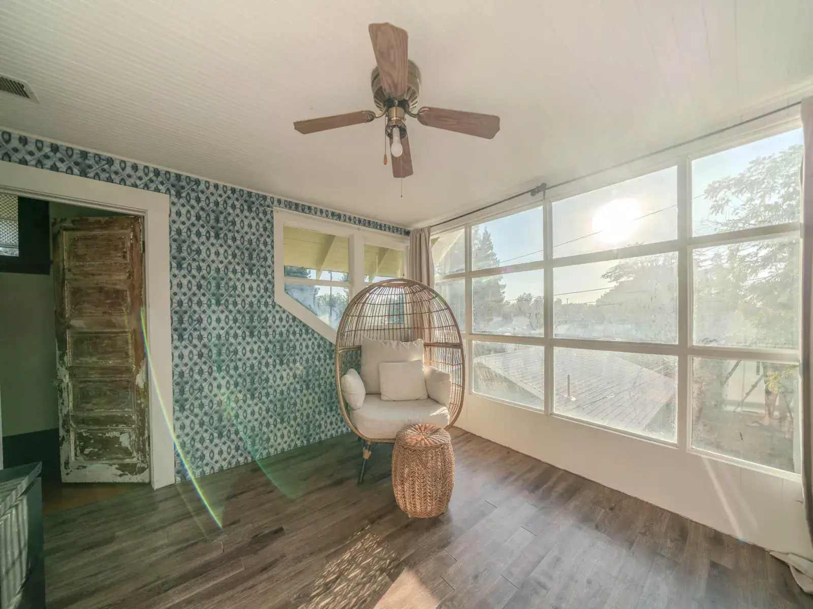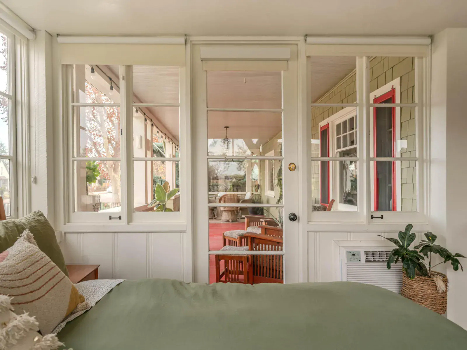The kitchen maintains the home’s historic feel with warm wood cabinets and hardwood floors, while the sun-drenched enclosed sunroom offers a versatile bonus space with large windows allowing the outside in.