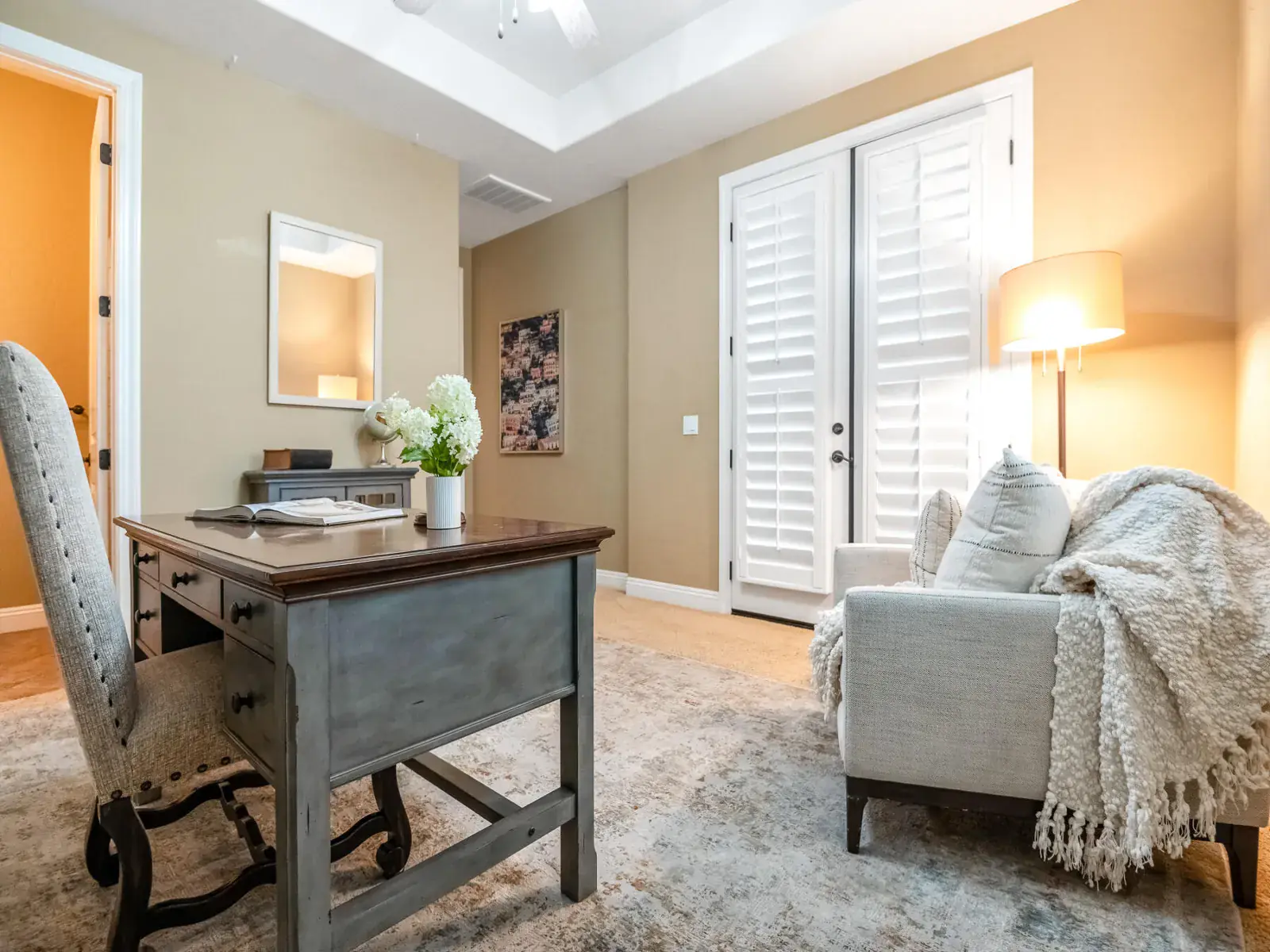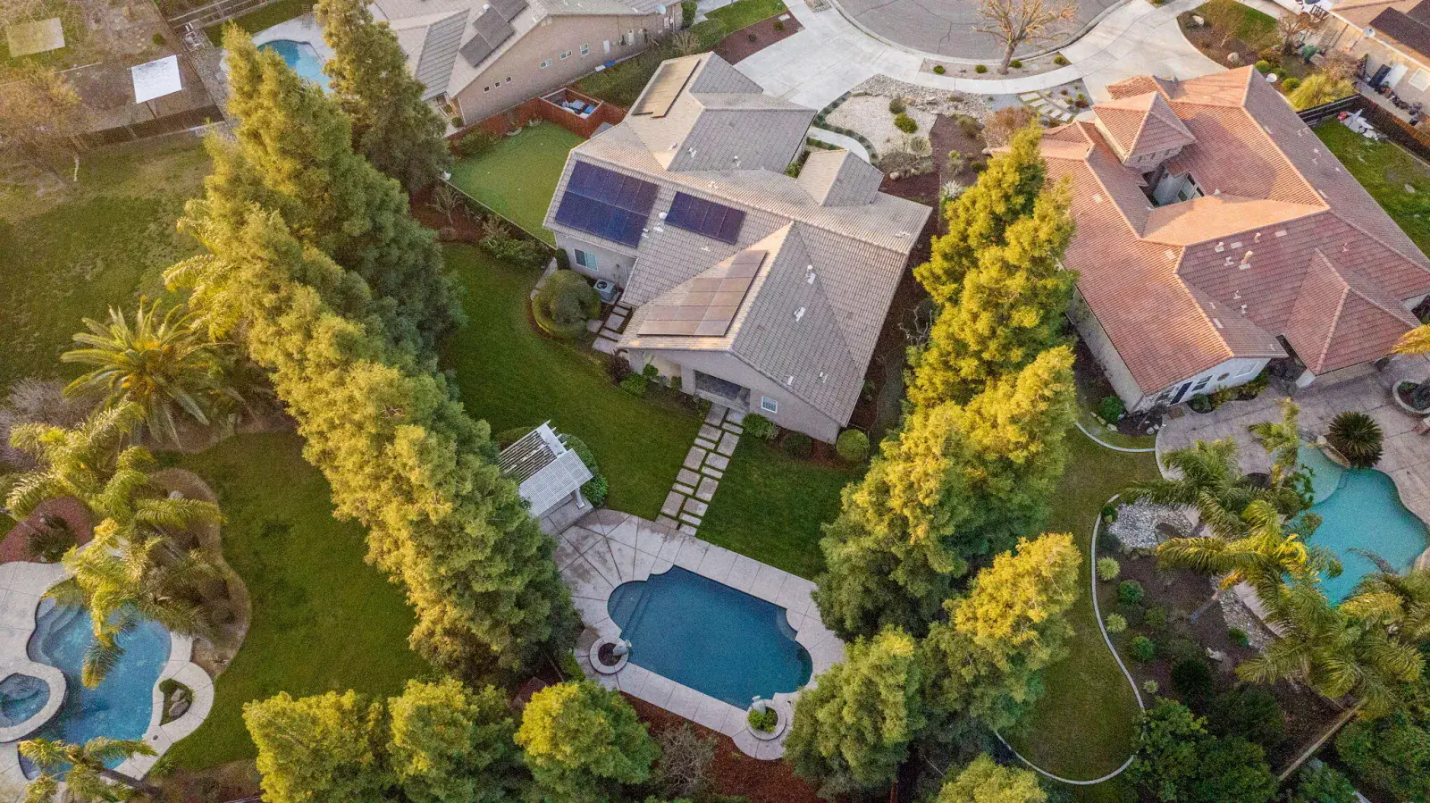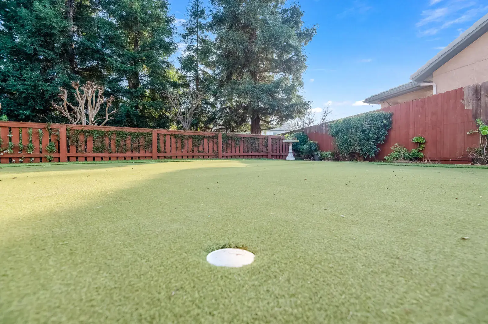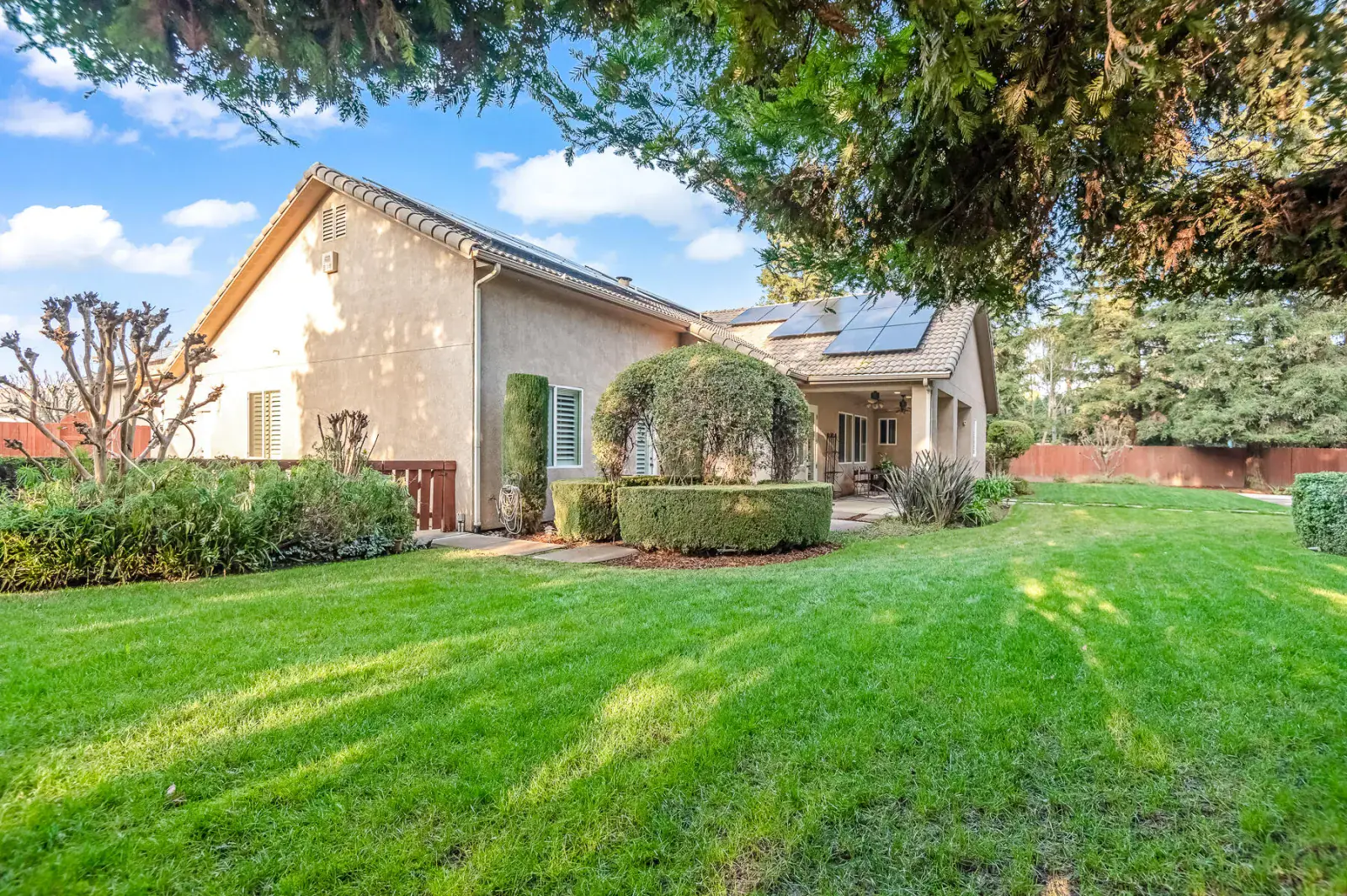 Welcome to this absolutely stunning home in lovely Amber Crossing! This NW neighborhood has been a favorite for its location and wonderful Mangano design, and this home is an absolute gem and not to be missed! Set on a .38 acre lot with sparkling pool, 5-hole putting green, delightful garden areas, large side yard for pets, citrus trees, huge pergola space for extra entertaining and outdoor enjoyment, and so much more, this property is truly one-of-a-kind! Inside, three lovely bedrooms and a fourth bedroom with separate entrance make for a very practical floorplan. The living space features a large great room open to kitchen, breakfast nook, and dining. Primary suite has two separate closets, private WC, soaking tub, and large shower. Amber Crossing homes feature high ceilings and doors, and this one is filled with many extras, including tray ceilings and many built-ins for both display and storage, including a large built-in wine fridge in dining room. Wonderful amenities including OWNED SOLAR make this home an absolute MUST-SEE and an incredible place to get a jump-start on spring enjoyment in a yard that will provide year-round enjoyment and become a favorite retreat. Make your appointment today!