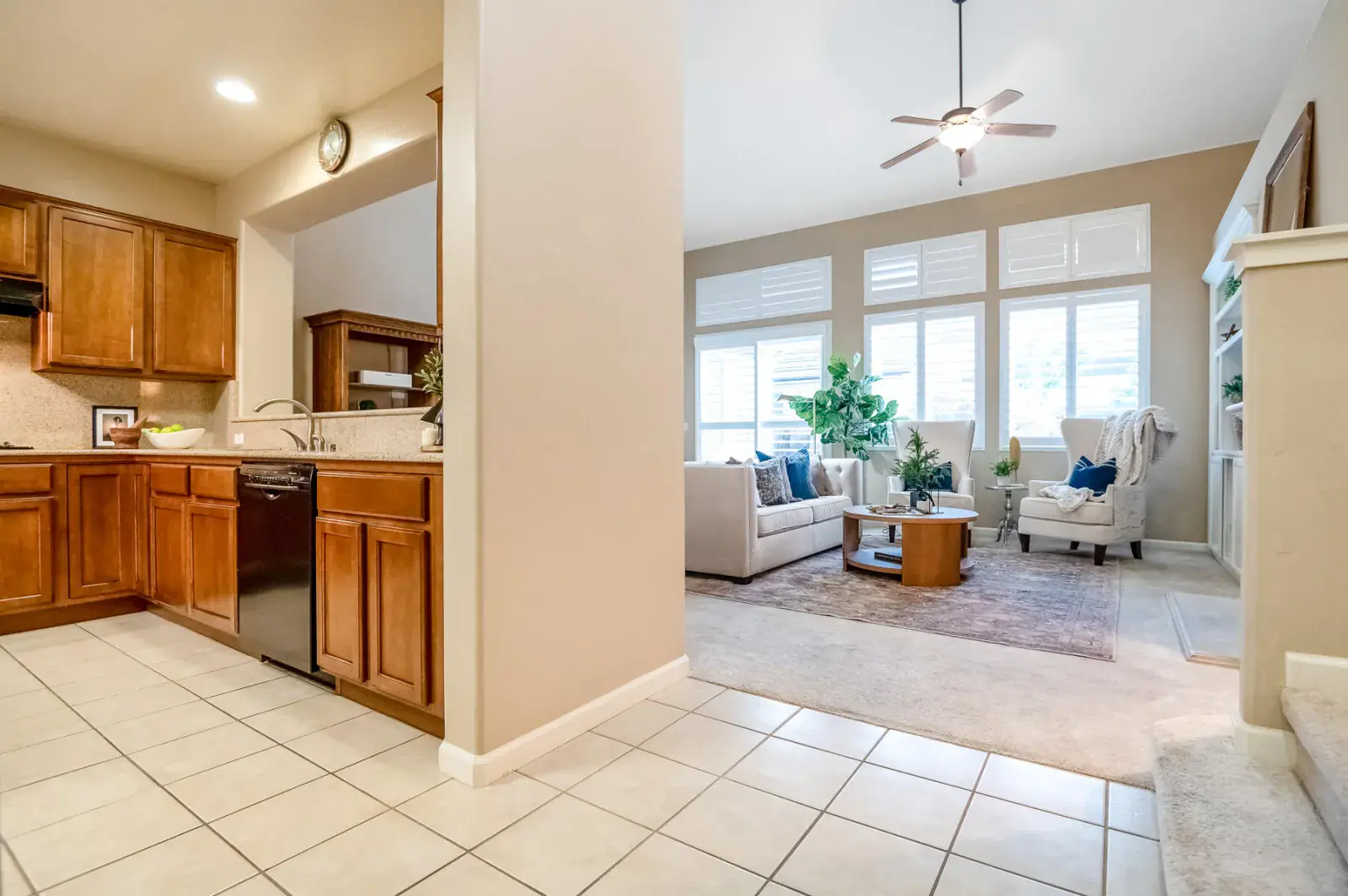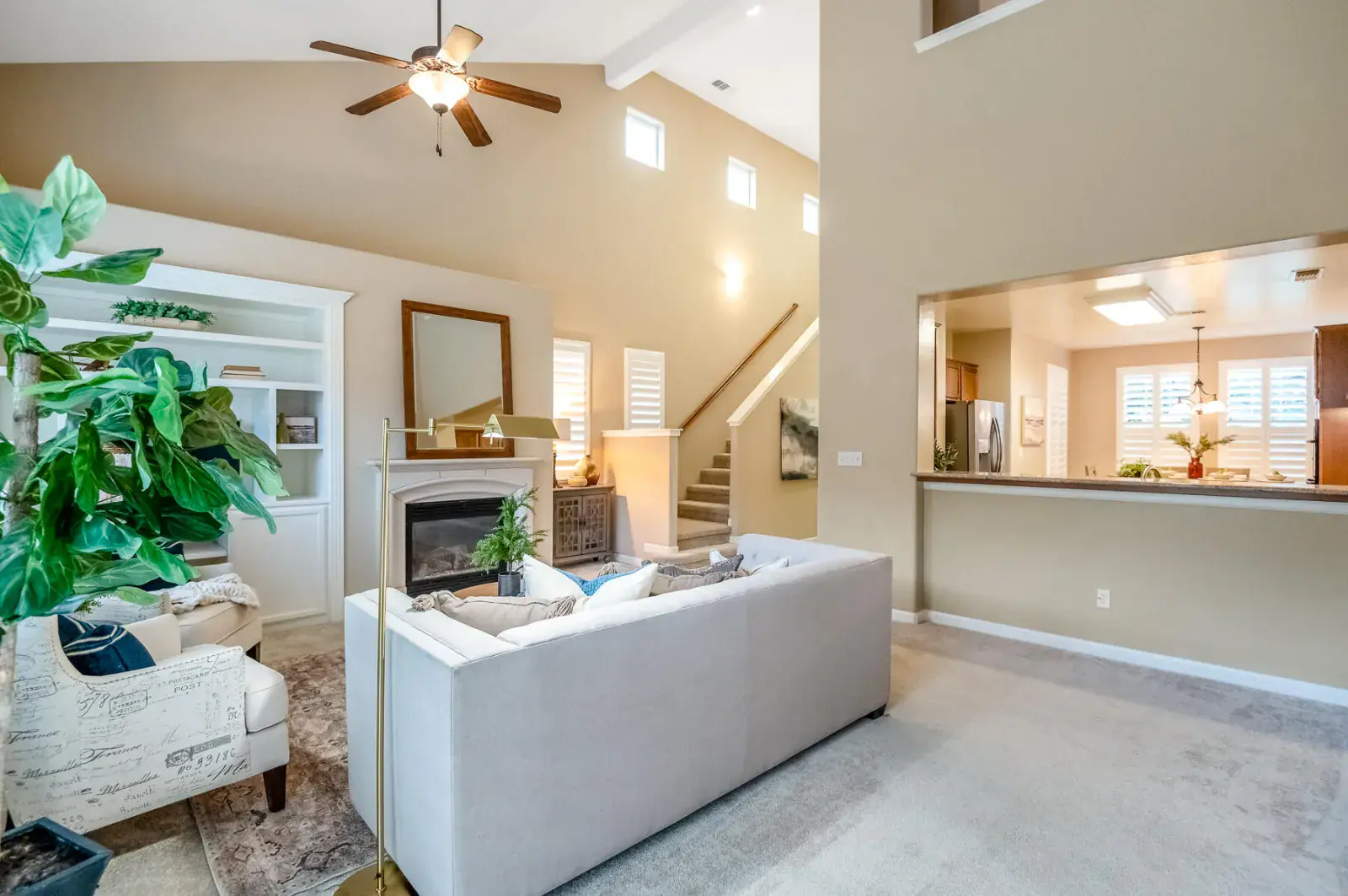 Welcome to easy living at 5235 W Pianosa. Located in the highly desirable, gated community of Bella Sera in Northwest Visalia steps away from shopping and restaurants. Turn-key and ready for you to move into, this 1485 square foot home features a spacious vaulted living area with beautiful built-in cabinetry open to the kitchen and informal eating area. Also on the main level is a lovely primary bedroom with en suite bath, roomy walk-in closet and convenient laundry access. Guests or kids can take over the upstairs with private bedroom, bathroom and loft area. Situated at the end of a cul-de-sac and across from a lovely greenspace, this is a great investment, downsize option or a wonderful place to live.