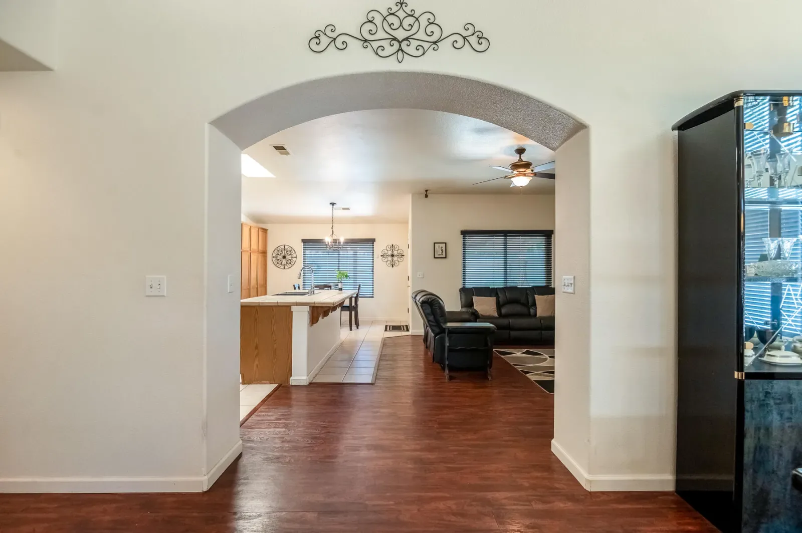 Breakfast Bar, Ceiling Fan(s), Kitchen Island, Kitchen Open to Family Room, Open Floorplan, Pantry, Tile Counters