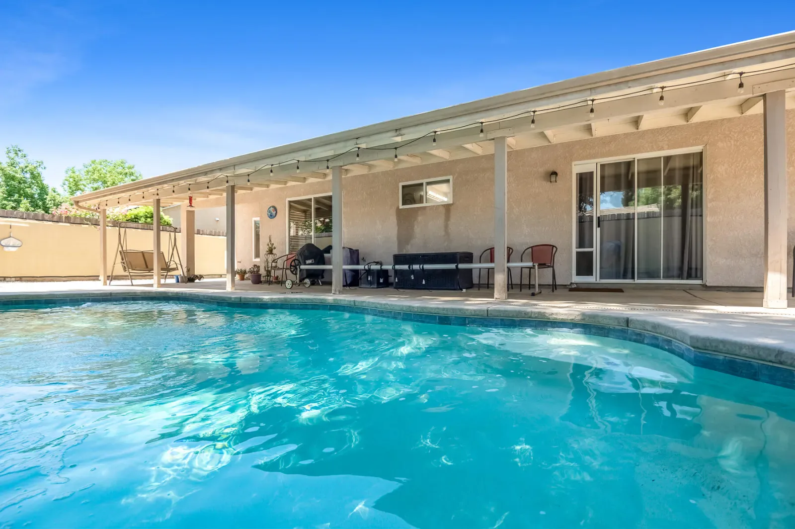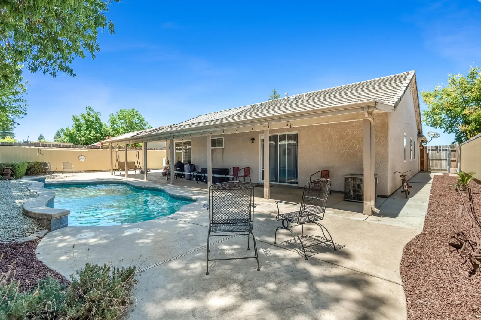 Welcome to 4633 W Cherry Ave! Beautifully maintained 4-bedroom, 2-bath home offering 2,115 sq. ft. of comfortable living space with an open floor plan perfect for everyday living and entertaining. The spacious kitchen features newer stainless steel appliances and flows seamlessly into the dining and living areas, creating a warm and inviting atmosphere. Step outside to your private backyard oasis with a sparkling pool and paid solar to heat the pool — enjoy extended swim seasons while soaking up the California sunshine. Located in a desirable neighborhood close to sought-after schools, this property offers the perfect blend of comfort, convenience, and outdoor enjoyment. Don’t miss your chance to make this Visalia gem your next home! Schedule your viewing today!! Brand New HVAC and Electric Water Heater as of Feb 2026