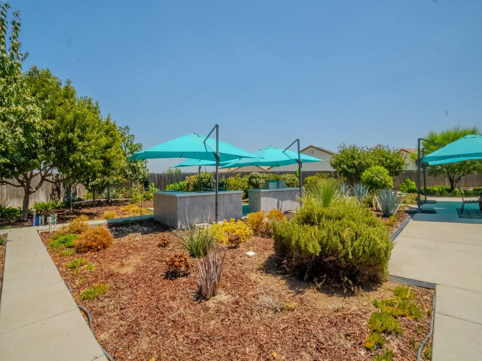 Step outside to experience a meticulously designed backyard oasis. The oversized lot features a fully irrigated fruit garden complete with a misting system. The gorgeous backyard paradise includes: figs, cherries, peaches, plums, and apricots, offering seasonal harvests and vibrant landscaping. The built-in outdoor kitchen and BBQ area provide the ideal setting for entertaining.