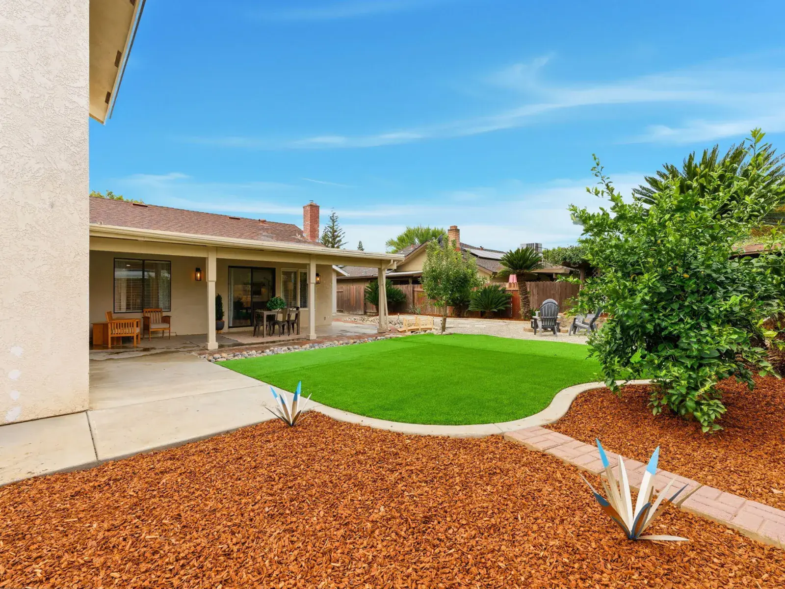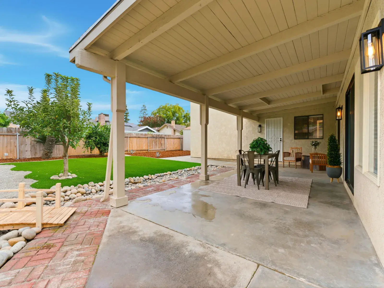Step outside to a beautifully landscaped backyard featuring a low-maintenance lawn, fire pit area, and a picturesque dry creek, creating a nostalgic and tranquil outdoor retreat. Nestled on a large cul-de-sac lot, this exceptional property offers privacy, elegance, and a true sense of serenity in one of Visalia’s most sought-after communities. Located within one of the area’s top-rated school districts.