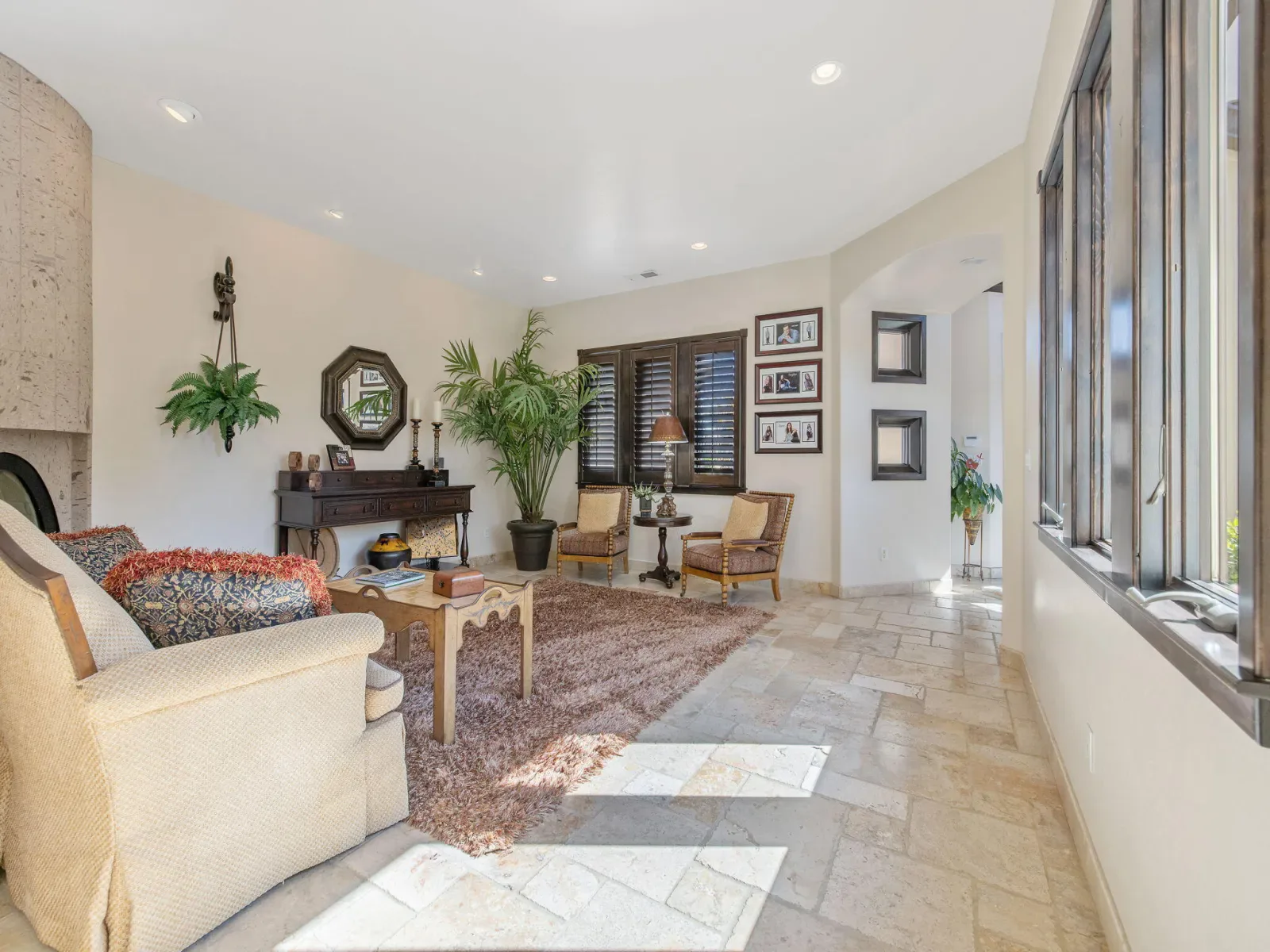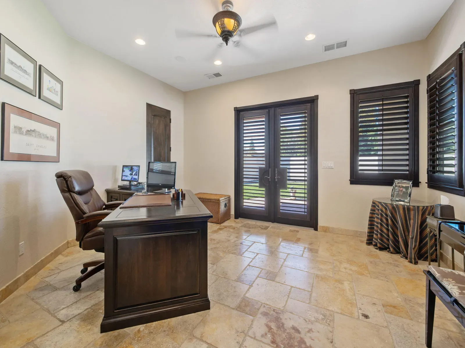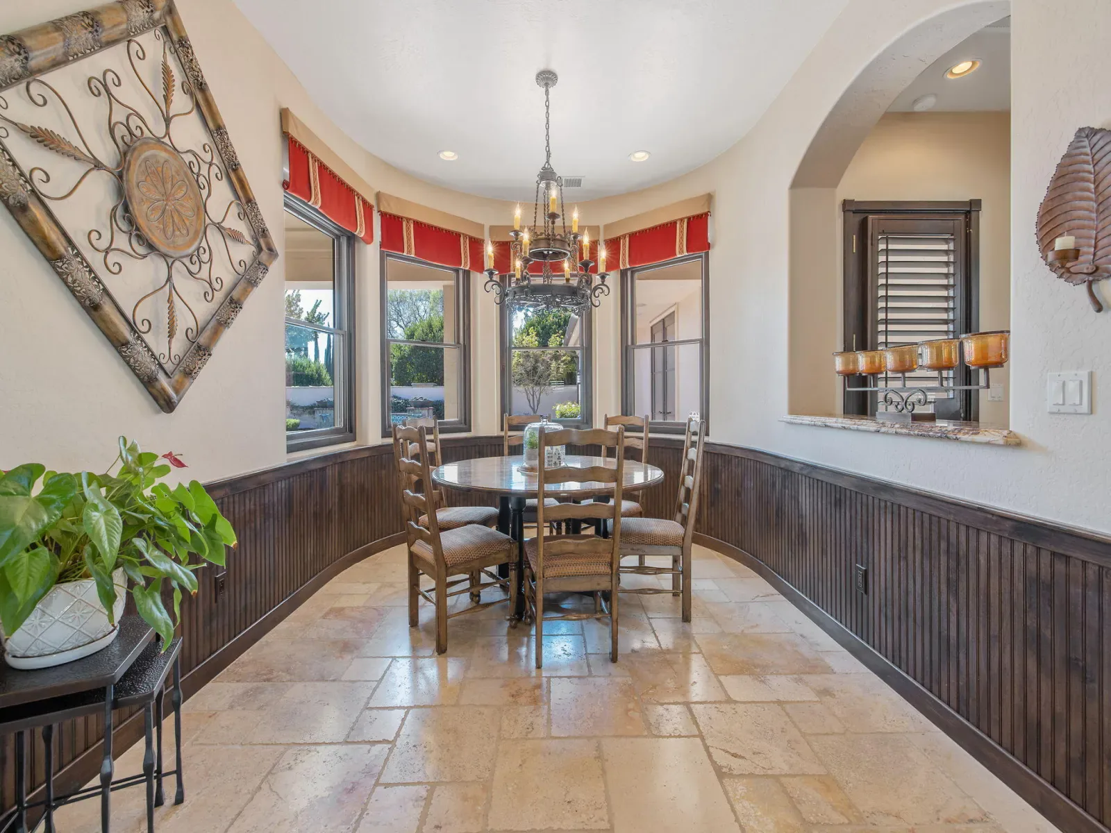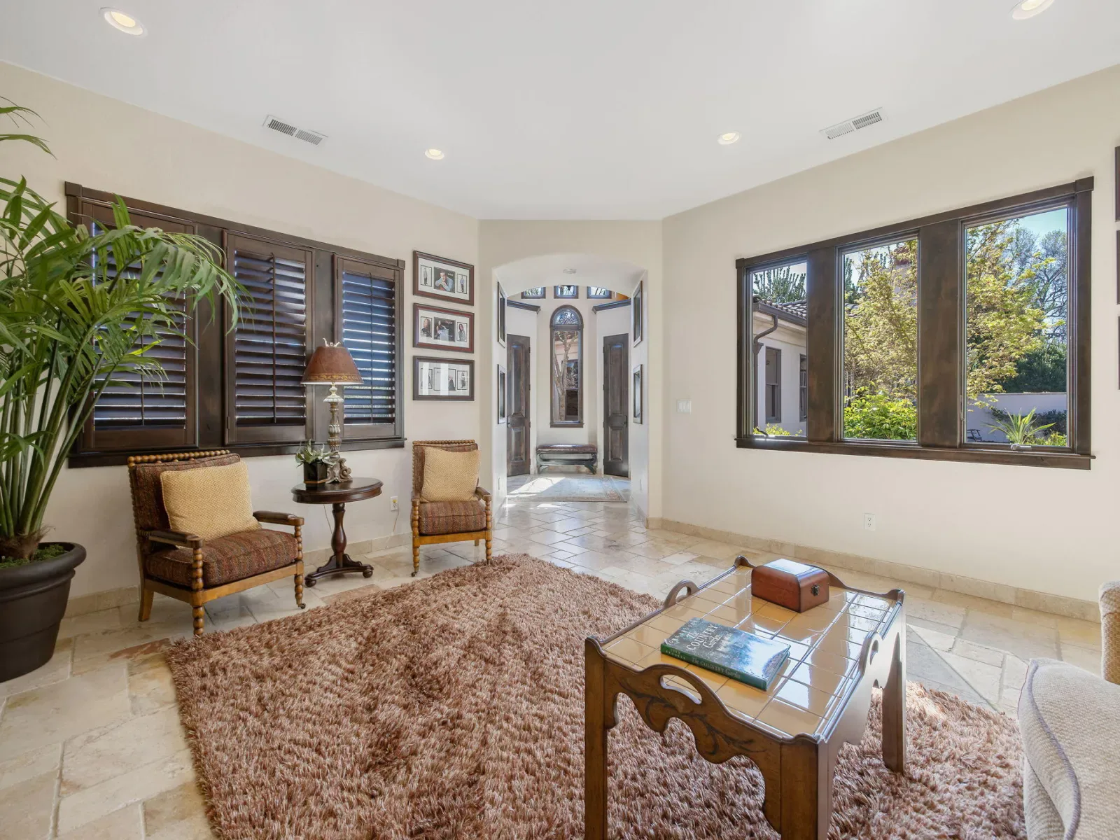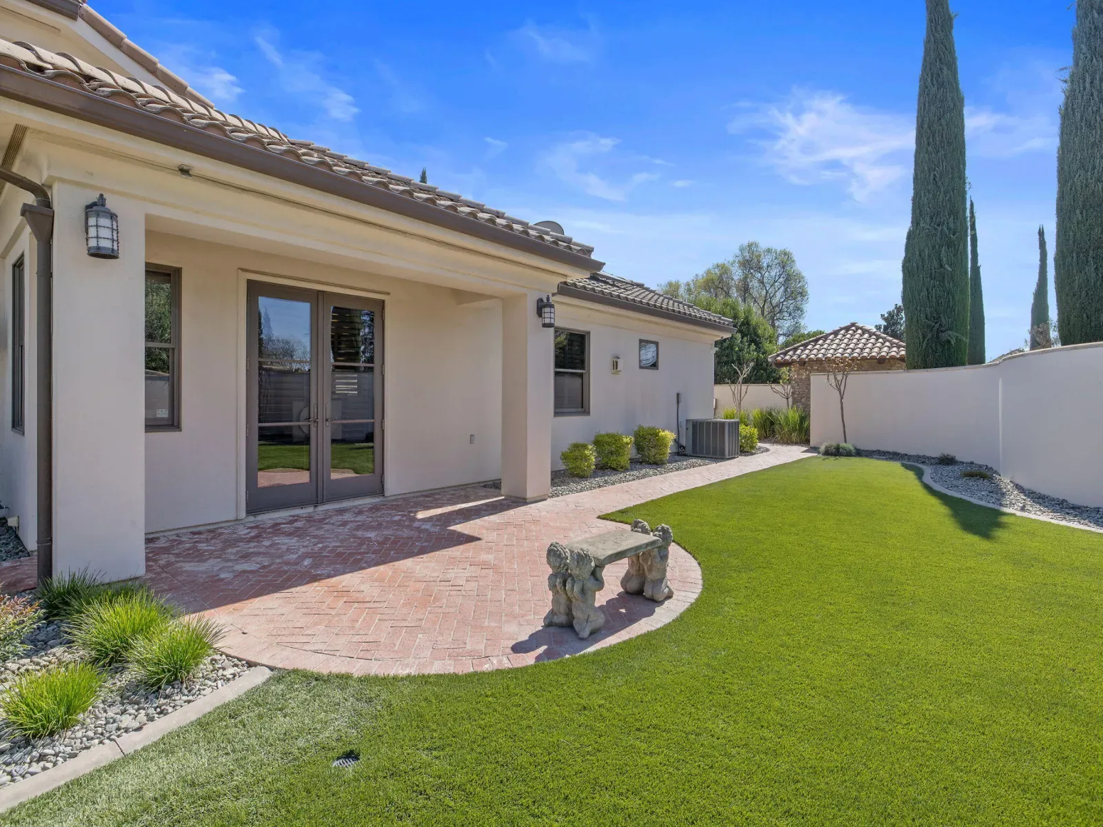 Exquisite custom home in gated Da Vinci! Situated on more than half an acre, a remarkable blend of timeless architecture, craftsmanship, and resort-style living just minutes from top schools, shopping, and the charm of downtown Visalia. From the moment you arrive, manicured grounds and striking curb appeal set the tone. Inside, rich materials and exceptional attention to detail define the home, including Turkish travertine floors, custom tile work, and thoughtfully designed living spaces that feel both elegant and inviting. A formal entry opens to the living room with fireplace, while the dining room, surrounded by windows overlooking the lush backyard, creates a stunning setting for gatherings. Just beyond, a butler’s pantry with built-in cabinetry leads to a spectacular refrigerated wine cellar with a hand-carved custom door, a truly distinctive focal point. The chef’s kitchen is designed for everyday living and effortless entertaining, centered around a large island with granite countertops and professional appliances including a Wolf gas cooktop with custom hood, Thermador refrigerator and freezer, Sub-Zero refrigerator drawer, and Gaggenau dishwasher and oven. A walk-in pantry, ice maker, and charming breakfast nook surrounded by windows complete the space. The great room is warm and inviting with a gas fireplace, brick and stone mantel, and built-in entertainment center. The luxurious primary suite features its own fireplace and French doors opening to the backyard retreat. The spa-inspired bath includes a jetted soaking tub, walk-through tile shower, dual vanities, and two walk-in closets with custom built-ins. Outdoors, the property becomes a private resort with a sparkling pool, water feature, fire elements, in-ground jacuzzi, covered patios, and outdoor kitchen. A private casita with bedroom, bath, and kitchenette provides ideal guest accommodations. Owned solar. Meticulously maintained and truly exceptional. Must see to experience!