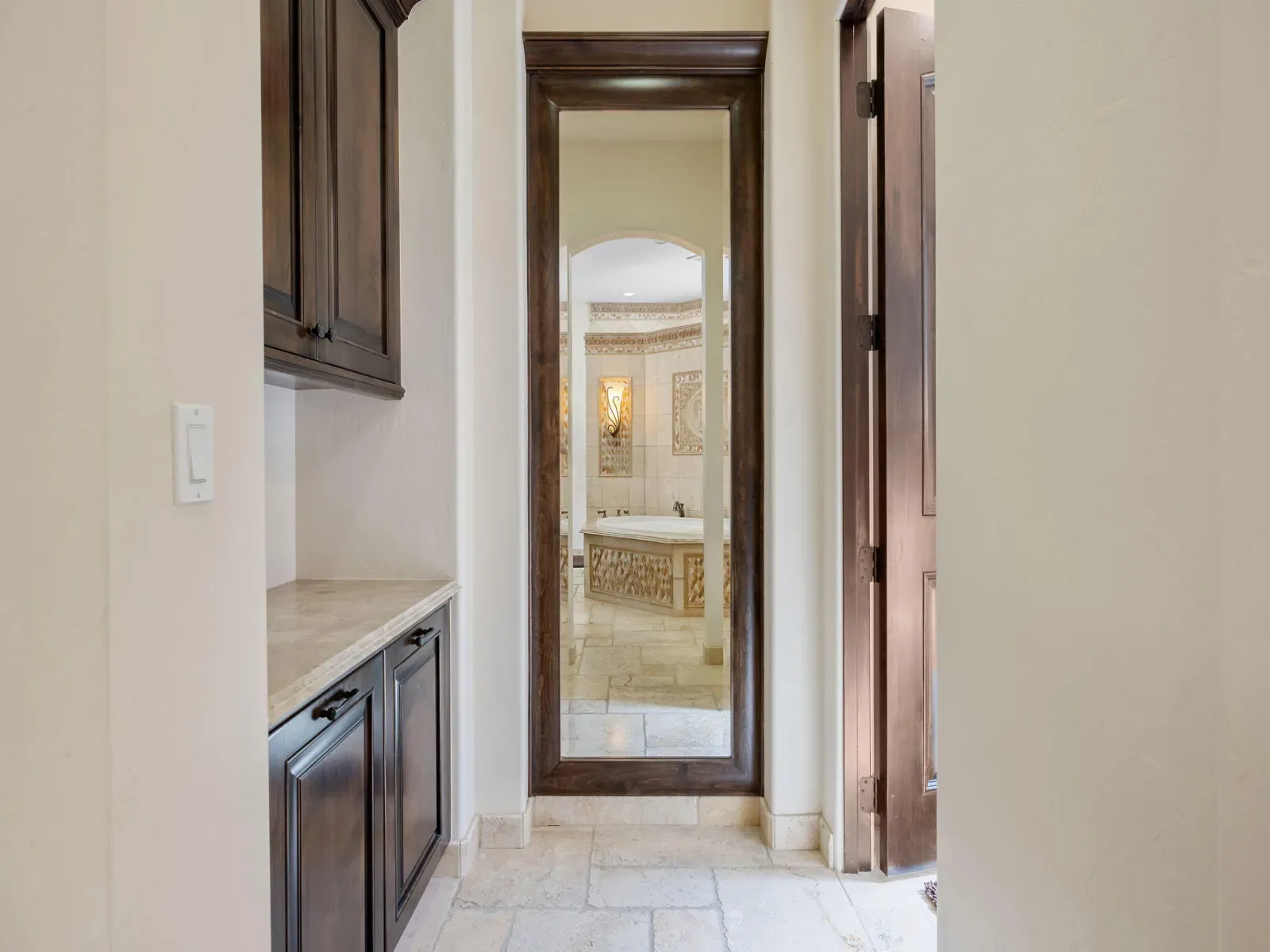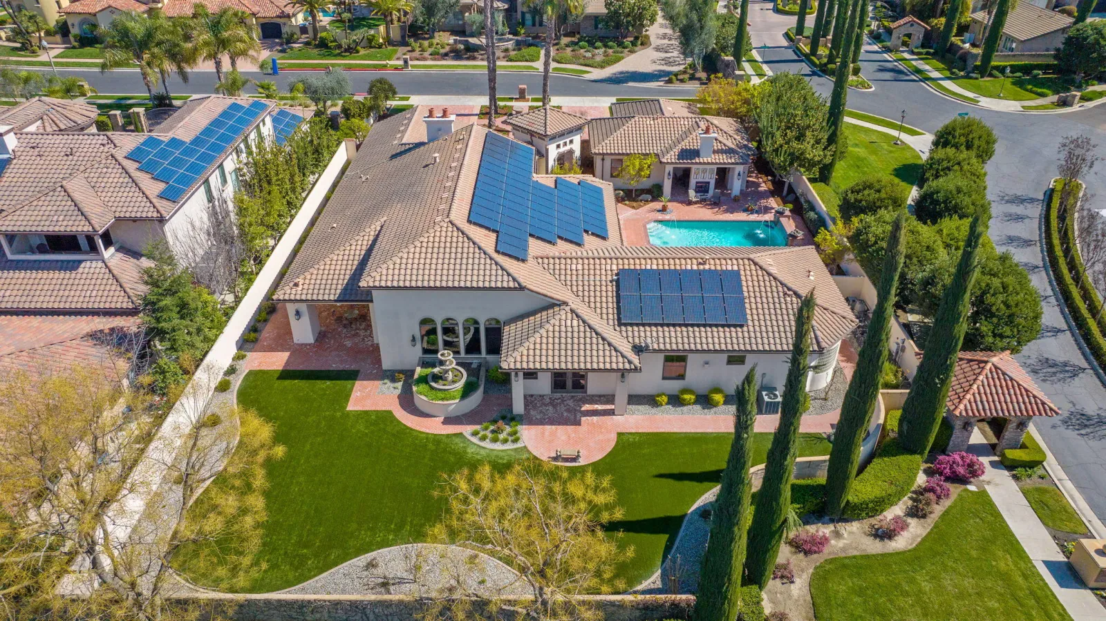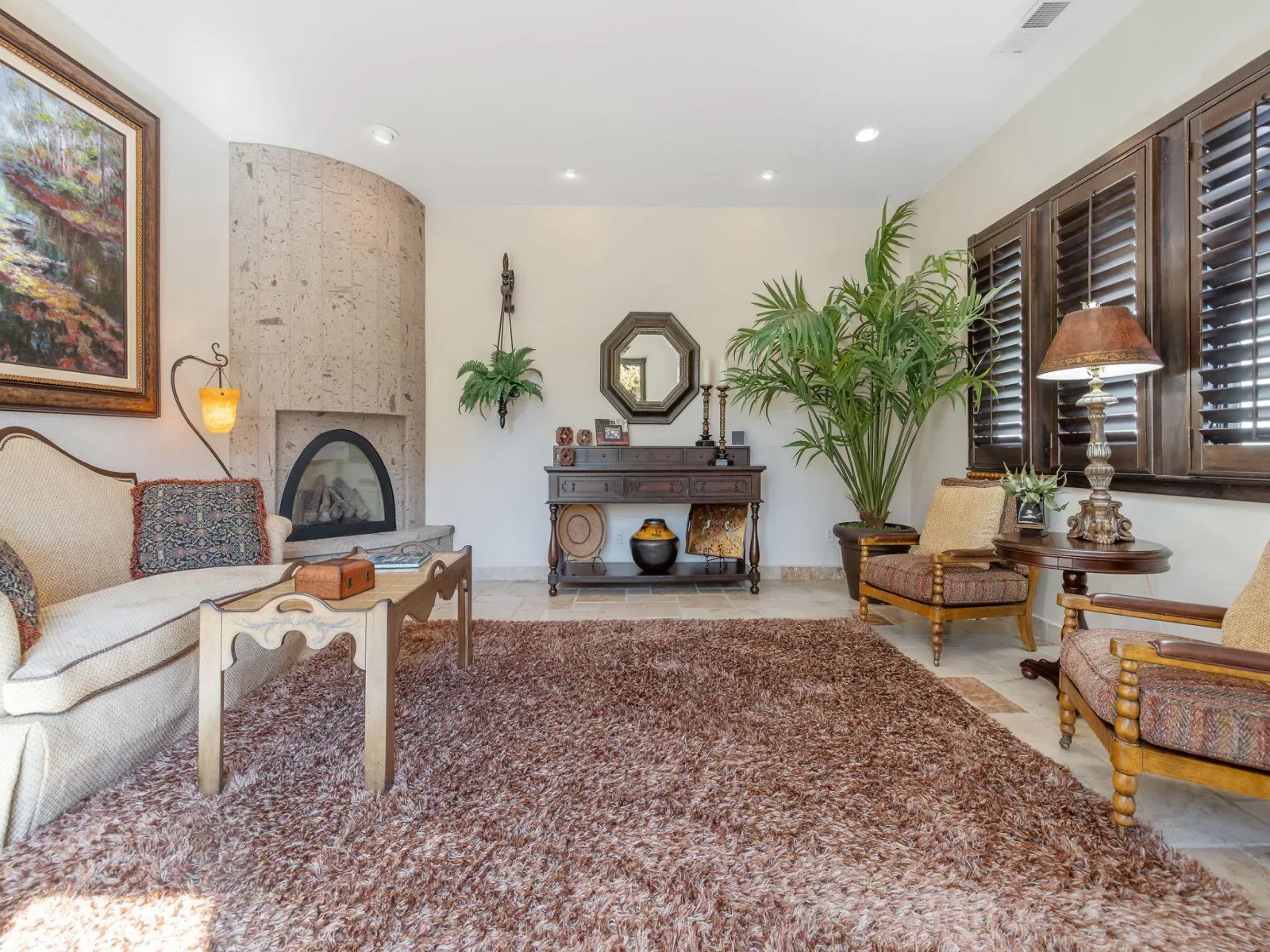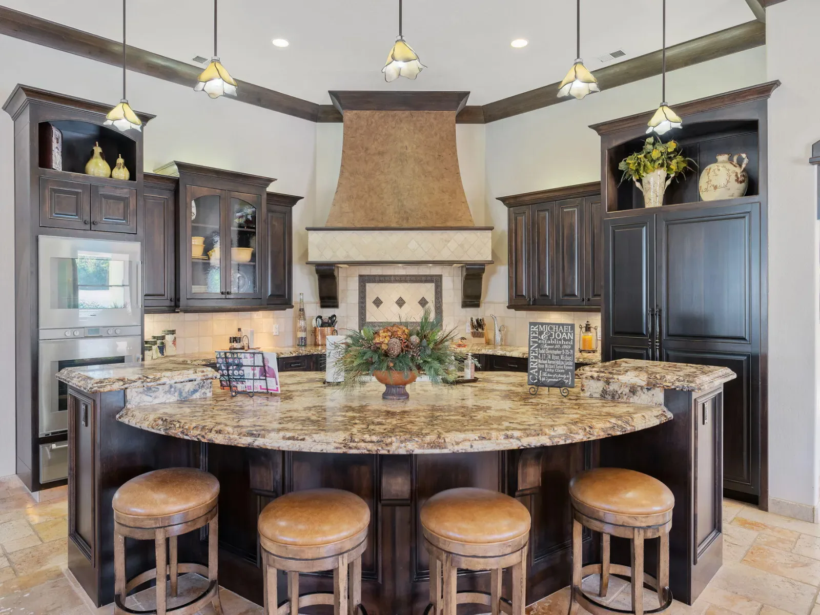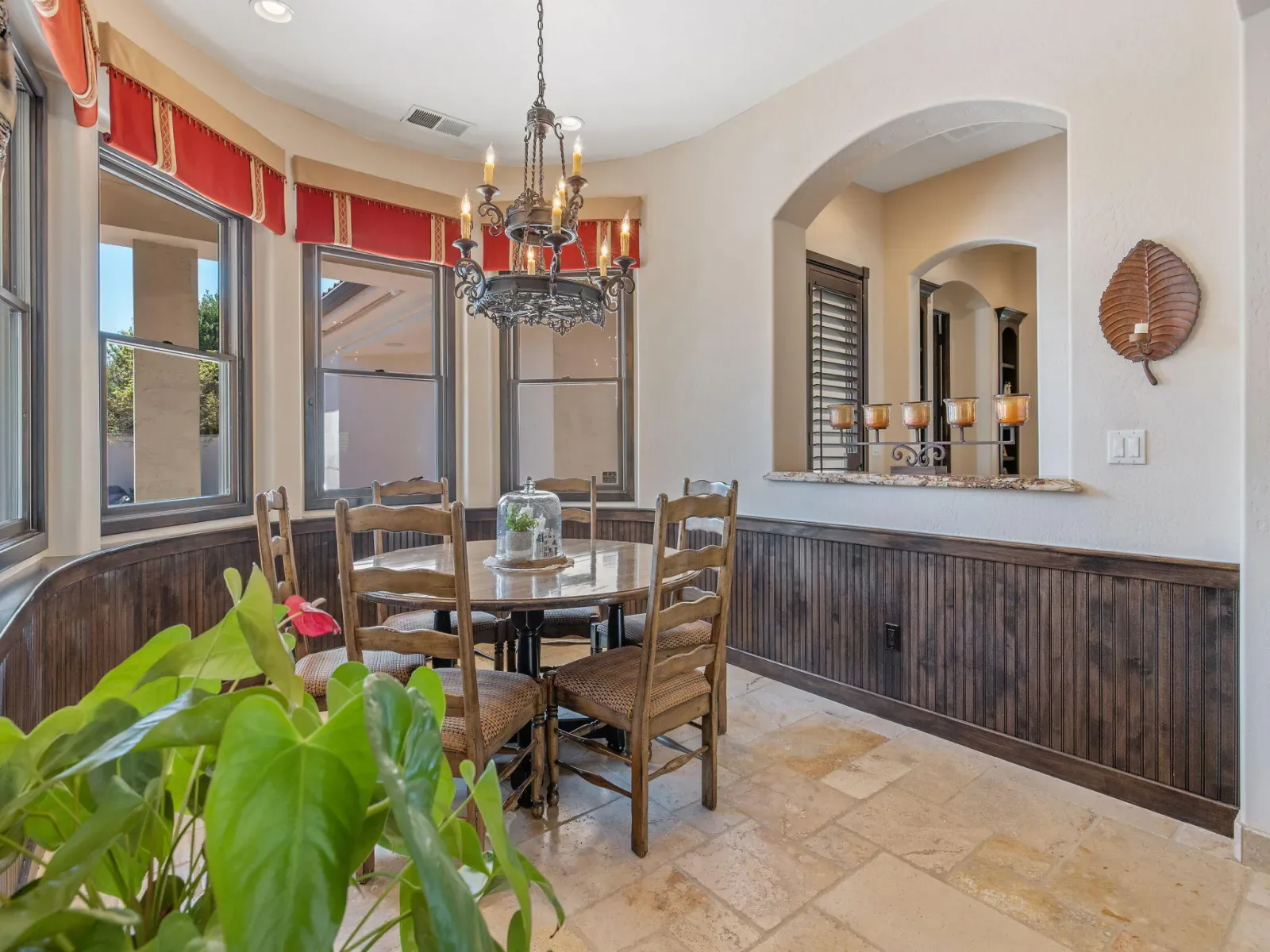 Exquisite custom home in gated Da Vinci! Situated on more than half an acre, a remarkable blend of timeless architecture, craftsmanship, and resort-style living just minutes from top schools, shopping, and the charm of downtown Visalia. From the moment you arrive, manicured grounds and striking curb appeal set the tone. Inside, rich materials and exceptional attention to detail define the home, including Turkish travertine floors, custom tile work, and thoughtfully designed living spaces that feel both elegant and inviting. A formal entry opens to the living room with fireplace, while the dining room, surrounded by windows overlooking the lush backyard, creates a stunning setting for gatherings. Just beyond, a butler’s pantry with built-in cabinetry leads to a spectacular refrigerated wine cellar with a hand-carved custom door, a truly distinctive focal point. The chef’s kitchen is designed for everyday living and effortless entertaining, centered around a large island with granite countertops and professional appliances including a Wolf gas cooktop with custom hood, Thermador refrigerator and freezer, Sub-Zero refrigerator drawer, and Gaggenau dishwasher and oven. A walk-in pantry, ice maker, and charming breakfast nook surrounded by windows complete the space. The great room is warm and inviting with a gas fireplace, brick and stone mantel, and built-in entertainment center. The luxurious primary suite features its own fireplace and French doors opening to the backyard retreat. The spa-inspired bath includes a jetted soaking tub, walk-through tile shower, dual vanities, and two walk-in closets with custom built-ins. Outdoors, the property becomes a private resort with a sparkling pool, water feature, fire elements, in-ground jacuzzi, covered patios, and outdoor kitchen. A private casita with bedroom, bath, and kitchenette provides ideal guest accommodations. Owned solar. Meticulously maintained and truly exceptional. Must see to experience!
