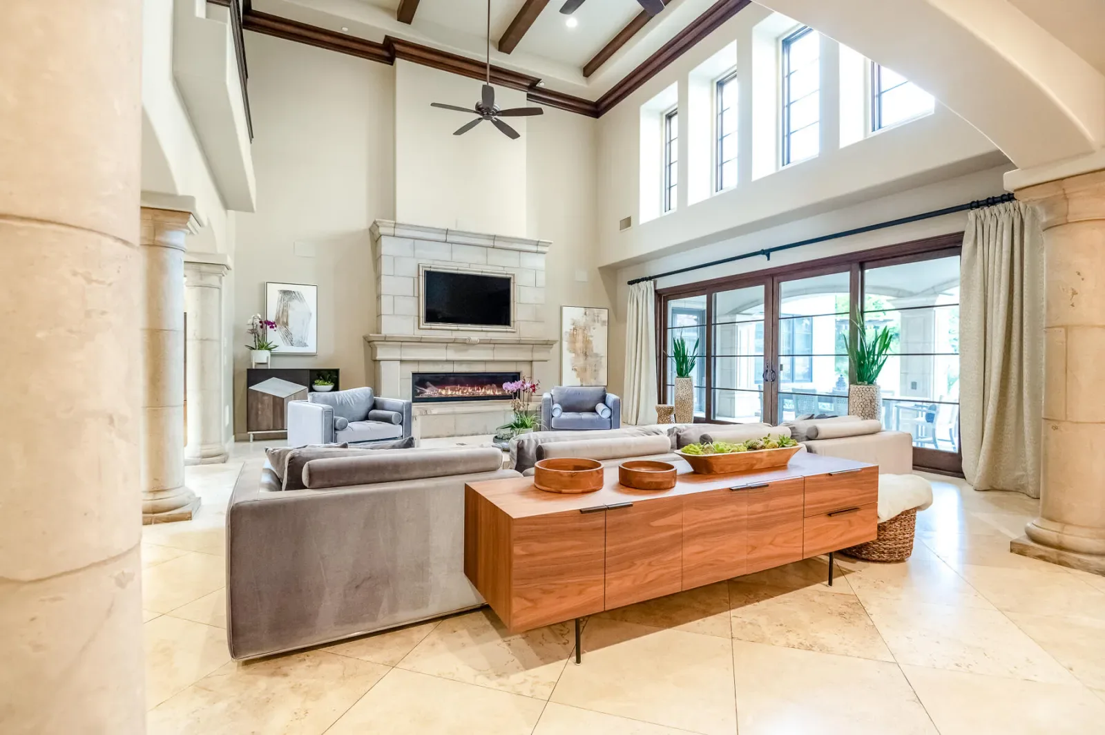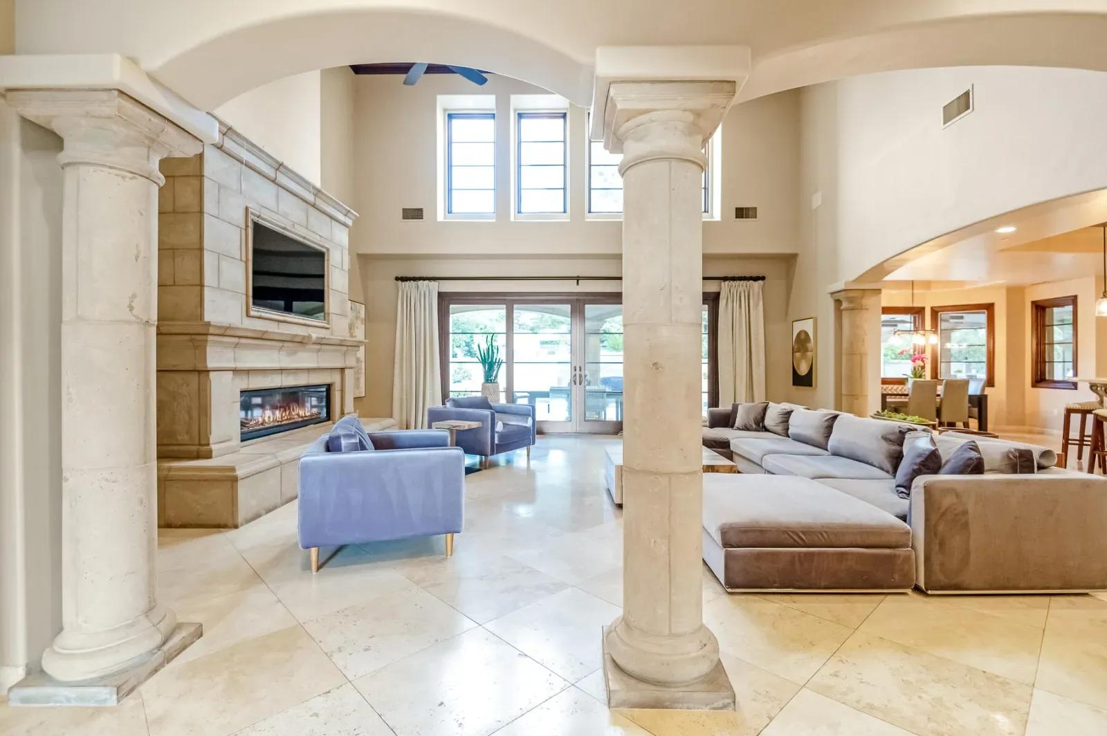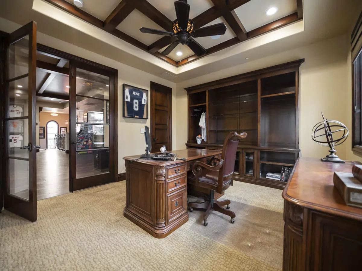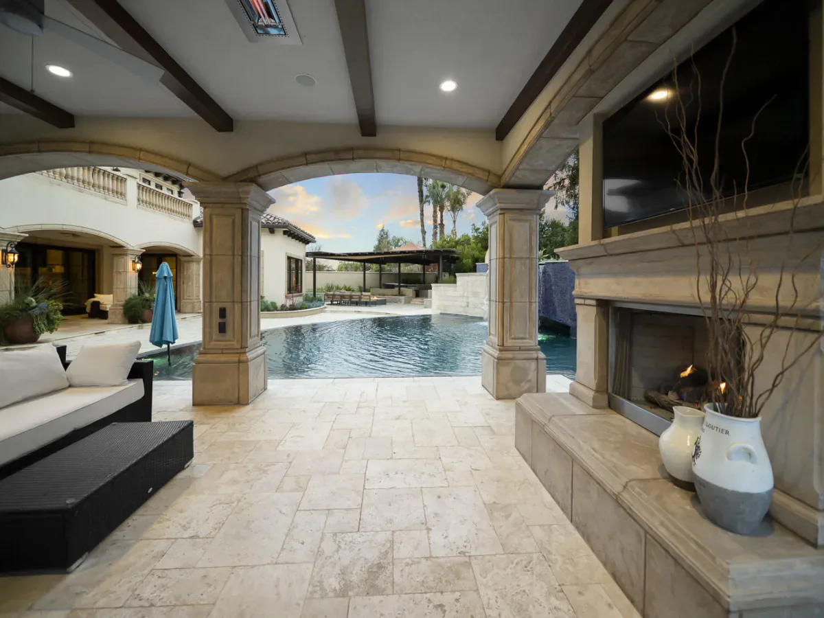 An Exquisite property in the Gated Community of Da Vinci @ Bella Sera provides amenities seldom seen. Enter through the Fabulous door past the Grand Staircase and Formal Dining room to the open Great Room. This stunning space offers soaring ceilings, fireplace and bar area as well as views to the expansive back yard Oasis. The Main floor offers two Ensuite bedrooms as well as the Owners’ suite. This space boasts generous his and hers walk in closets and dressing areas with custom cabinetry. The Owner’s bath is akin to one experienced at a luxury resort and there is a breakfast/coffee bar with beverage frig and sink. Also located on the Main floor you will find a large office with two desk areas for projects and studying and a laundry/project room with generous counter space and wrapping center. They say the heart of a home is the kitchen…This kitchen is a Chef’s dream! An Amazing island and ample counter space are just a part of it. Please refer to the attached document for details on the commercial appliances and amenities. An In person view is warranted. There is a walk through pantry complete with Thermador Freezer and commercial ice maker and floor to ceiling storage space. With all that cooking you may find a home gym/work out space to your liking. This one offers rubberized floors and a large TV and is adjacent to a spa bathroom complete with steam shower with built in lounge. Access the 2nd level from one of the 3 staircases to enter an amazing space with gorgeous wood flooring currently furnished with Pool and Shuffleboard tables with 2 hidden TVs that drop down from the ceiling, an Executive office, Theatre Room and Media Room. Relax outside with a full outdoor kitchen, living room w/fireplace and TV. Heaters built in to the ceiling to make the most of the seasons as well as a beautiful pool, spa and firetable. The separate oversize garage can accommodate a batting cage or golf practice area as well! We look forward to seeing you…