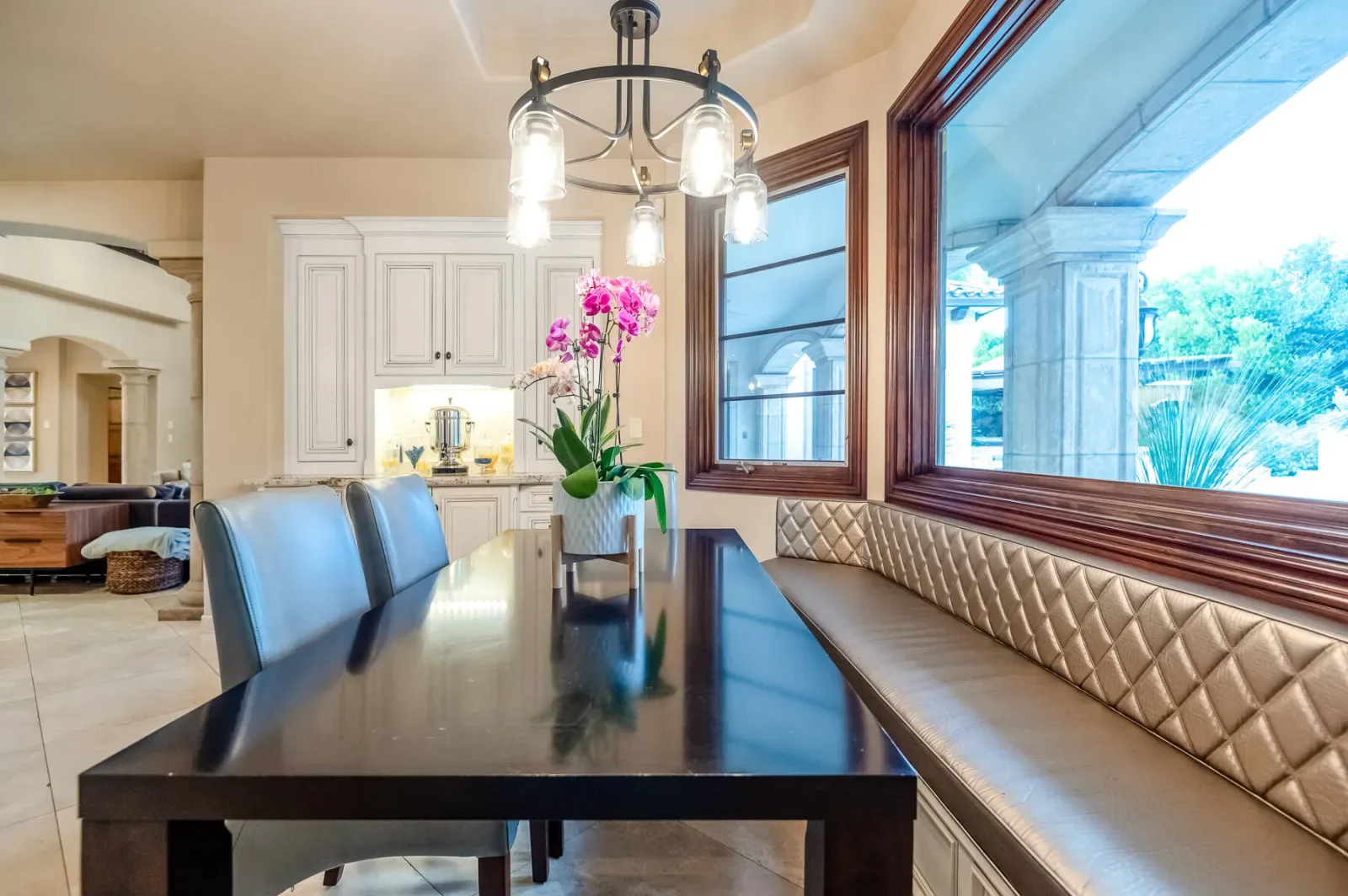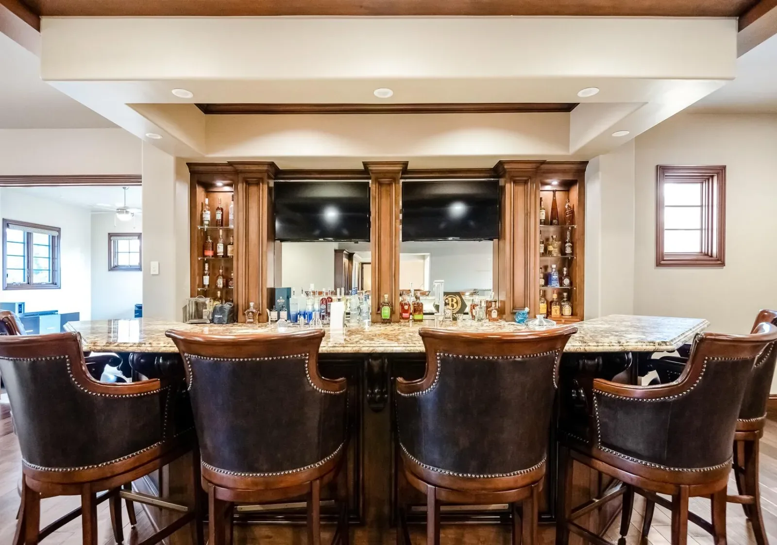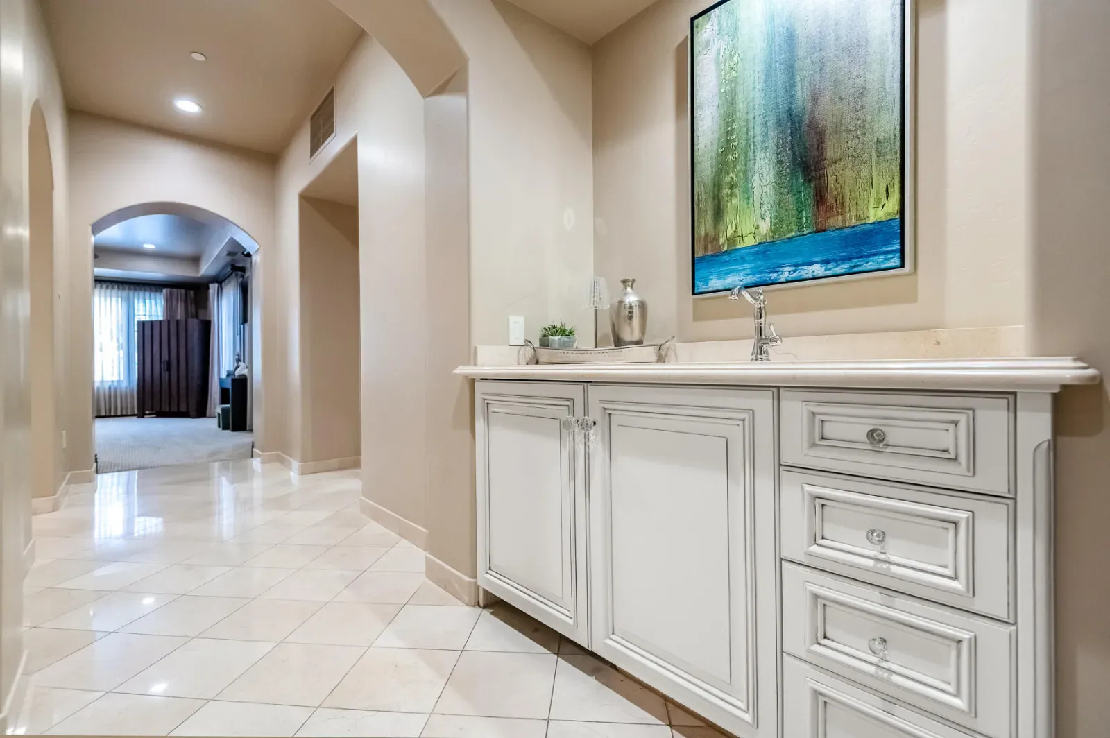 An Exquisite property in the Gated Community of Da Vinci @ Bella Sera provides amenities seldom seen. Enter through the Fabulous door past the Grand Staircase and Formal Dining room to the open Great Room. This stunning space offers soaring ceilings, fireplace and bar area as well as views to the expansive back yard Oasis. The Main floor offers two Ensuite bedrooms as well as the Owners’ suite. This space boasts generous his and hers walk in closets and dressing areas with custom cabinetry. The Owner’s bath is akin to one experienced at a luxury resort and there is a breakfast/coffee bar with beverage frig and sink. Also located on the Main floor you will find a large office with two desk areas for projects and studying and a laundry/project room with generous counter space and wrapping center. They say the heart of a home is the kitchen…This kitchen is a Chef’s dream! An Amazing island and ample counter space are just a part of it. Please refer to the attached document for details on the commercial appliances and amenities. An In person view is warranted. There is a walk through pantry complete with Thermador Freezer and commercial ice maker and floor to ceiling storage space. With all that cooking you may find a home gym/work out space to your liking. This one offers rubberized floors and a large TV and is adjacent to a spa bathroom complete with steam shower with built in lounge. Access the 2nd level from one of the 3 staircases to enter an amazing space with gorgeous wood flooring currently furnished with Pool and Shuffleboard tables with 2 hidden TVs that drop down from the ceiling, an Executive office, Theatre Room and Media Room. Relax outside with a full outdoor kitchen, living room w/fireplace and TV. Heaters built in to the ceiling to make the most of the seasons as well as a beautiful pool, spa and firetable. The separate oversize garage can accommodate a batting cage or golf practice area as well! We look forward to seeing you…