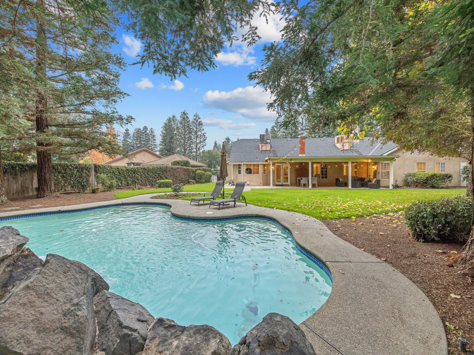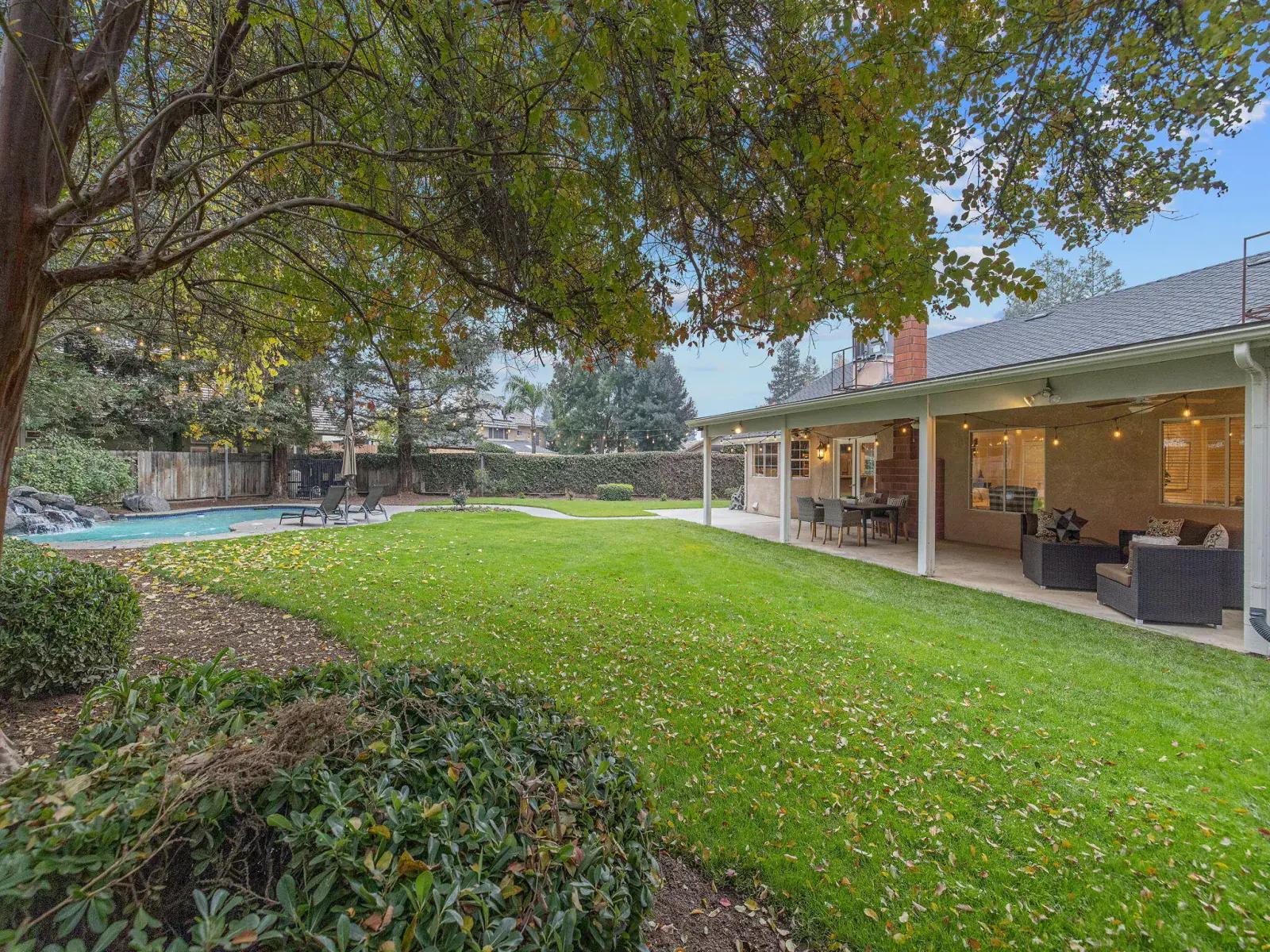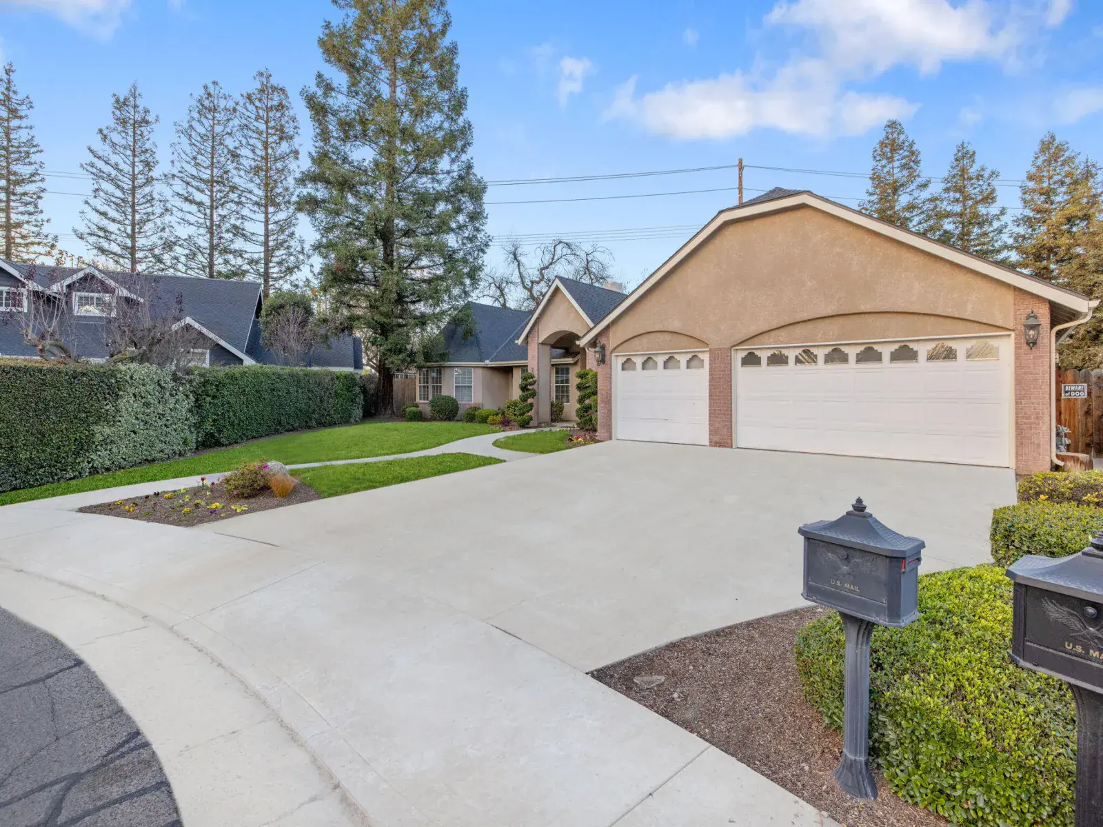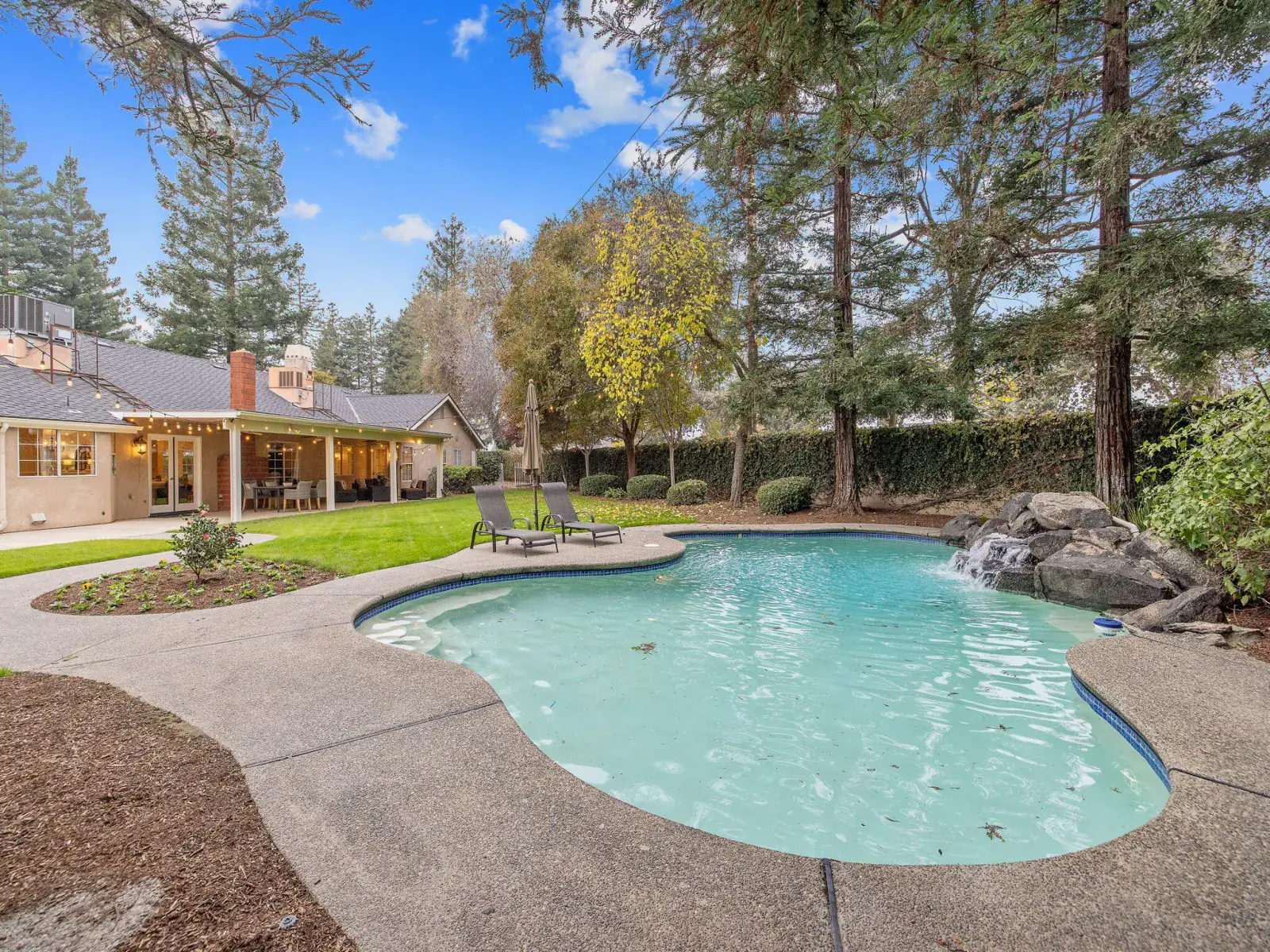 Exquisite home just listed in Gold Creek! Tucked at the end of a peaceful cul-de-sac on an extra-large 15,130 sq ft lot, this residence sits in one of SW Visalia’s most established and sought-after neighborhoods, close to great schools, shopping, and Highway 99 access. From the moment you arrive, this home delivers dreamy cul-de-sac curb appeal that’s impossible to forget. A formal entry opens to a formal living room on one side, and a gracious dining room with built-in buffet on the other. Straight ahead, a light-filled great room featuring vaulted ceilings, fireplace, and a wall of windows framing the sprawling backyard. Chef’s kitchen impresses with granite countertops, a large center island, stainless steel appliances, breakfast bar, and abundant cabinetry, perfectly connected to both the great room and a charming breakfast nook with access to the side yard. Well-designed laundry/mudroom includes extensive cabinetry, utility sink, hanging bar, and entry to the three-car garagewhere one bay is currently used as a home gym, offering endless flexibility. A thoughtful powder bath with exterior access doubles as a convenient pool bath. Luxurious primary suite is a true retreat, featuring a grand double-door entrance, fireplace, patio access, and access to 4th bedroom. The spa-inspired primary bath includes dual vanities, soaking tub, tiled shower, and oversized walk-in closet. Additional bedrooms are generously sized, full of charm, and served by a hall bath with dual vanities. Outside, a large covered patio with ceiling fans overlooks your own private oasis complete with a sparkling pool, rock waterfall feature, mature trees, and vibrant landscaping. With space for gatherings, play, and relaxation, this backyard is something special. At the side yard, a dog run for the family pet. This beautifully cared for home with exceptional amenities and an unmistakable feeling of ”this is the one.” Must see to experience all this lovely home has to offer!