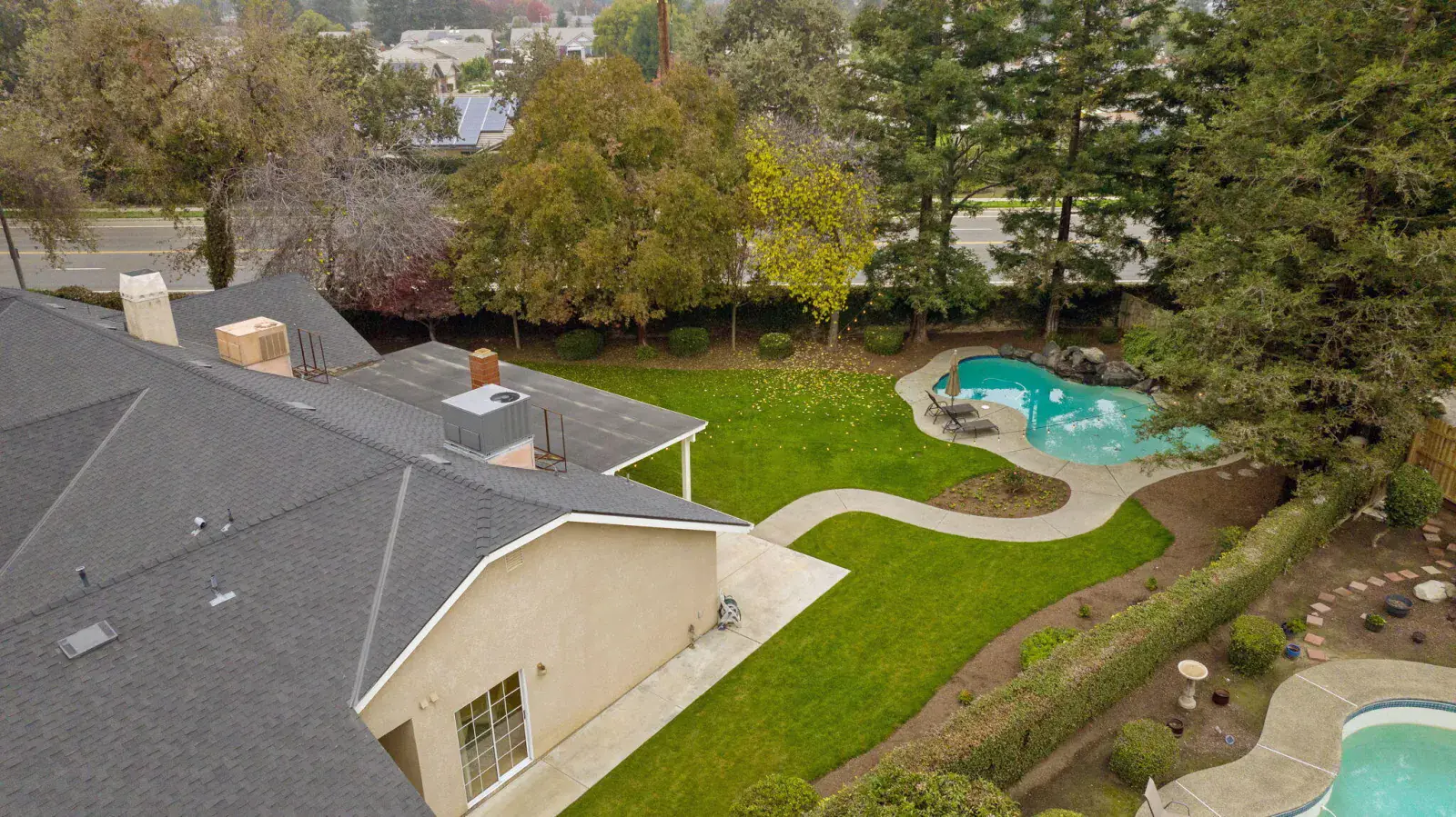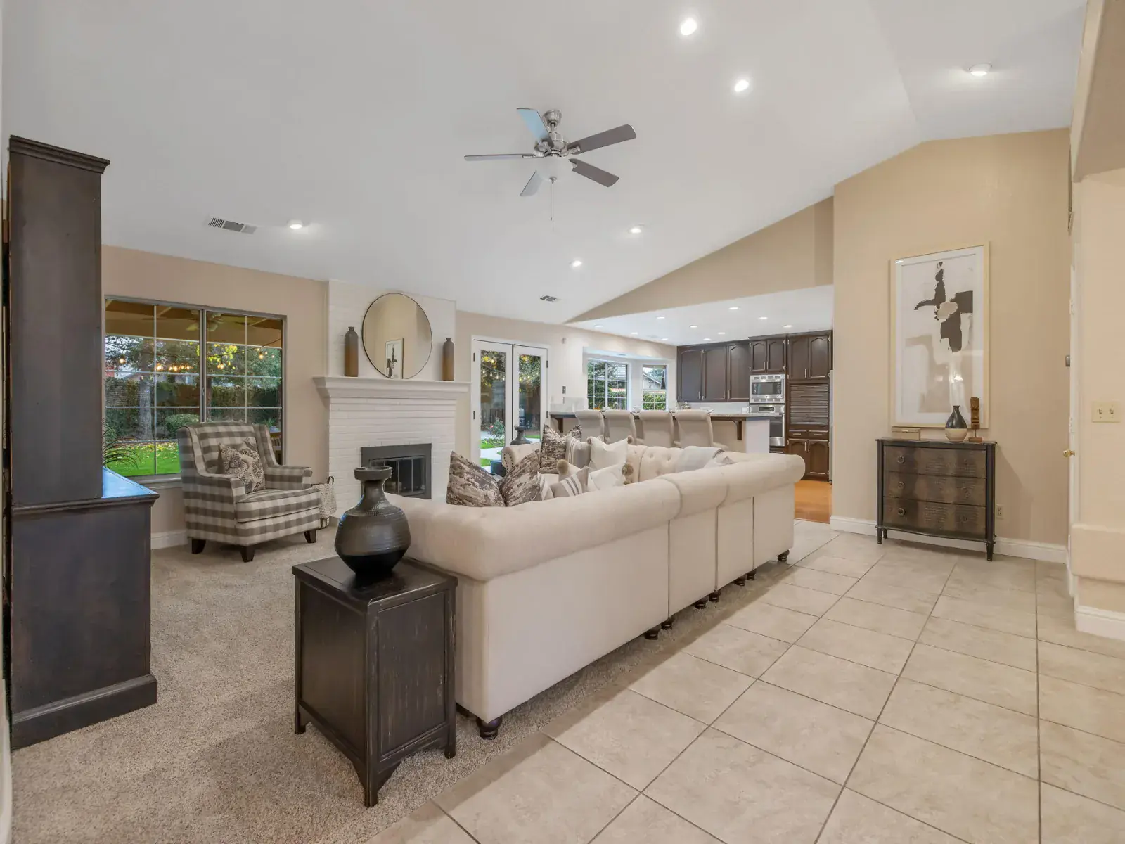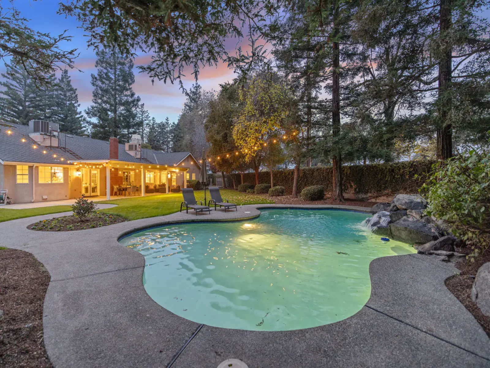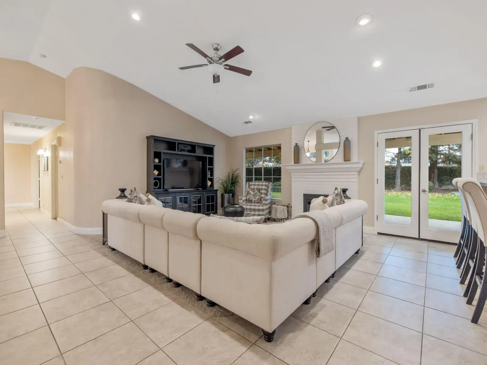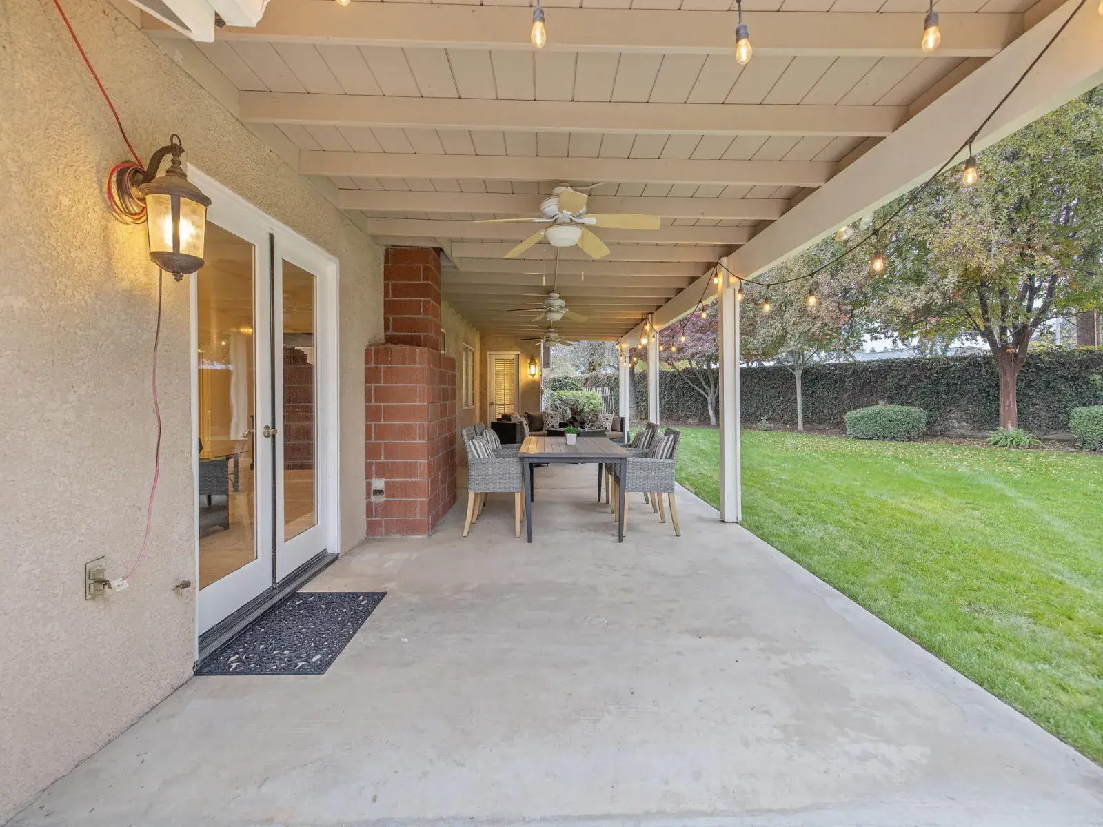 Exquisite home just listed in Gold Creek! Tucked at the end of a peaceful cul-de-sac on an extra-large 15,130 sq ft lot, this residence sits in one of SW Visalia’s most established and sought-after neighborhoods, close to great schools, shopping, and Highway 99 access. From the moment you arrive, this home delivers dreamy cul-de-sac curb appeal that’s impossible to forget. A formal entry opens to a formal living room on one side, and a gracious dining room with built-in buffet on the other. Straight ahead, a light-filled great room featuring vaulted ceilings, fireplace, and a wall of windows framing the sprawling backyard. Chef’s kitchen impresses with granite countertops, a large center island, stainless steel appliances, breakfast bar, and abundant cabinetry, perfectly connected to both the great room and a charming breakfast nook with access to the side yard. Well-designed laundry/mudroom includes extensive cabinetry, utility sink, hanging bar, and entry to the three-car garagewhere one bay is currently used as a home gym, offering endless flexibility. A thoughtful powder bath with exterior access doubles as a convenient pool bath. Luxurious primary suite is a true retreat, featuring a grand double-door entrance, fireplace, patio access, and access to 4th bedroom. The spa-inspired primary bath includes dual vanities, soaking tub, tiled shower, and oversized walk-in closet. Additional bedrooms are generously sized, full of charm, and served by a hall bath with dual vanities. Outside, a large covered patio with ceiling fans overlooks your own private oasis complete with a sparkling pool, rock waterfall feature, mature trees, and vibrant landscaping. With space for gatherings, play, and relaxation, this backyard is something special. At the side yard, a dog run for the family pet. This beautifully cared for home with exceptional amenities and an unmistakable feeling of ”this is the one.” Must see to experience all this lovely home has to offer!