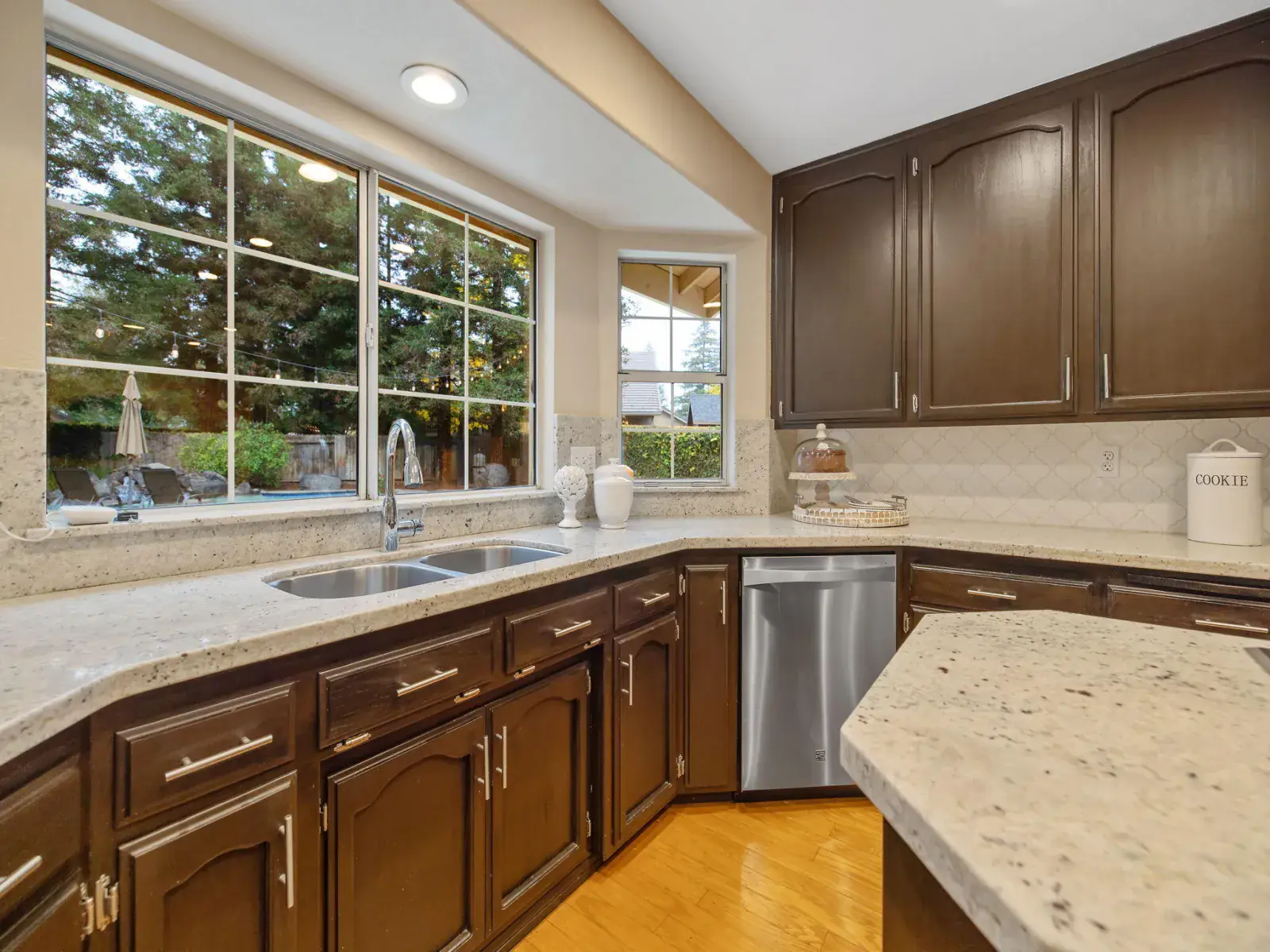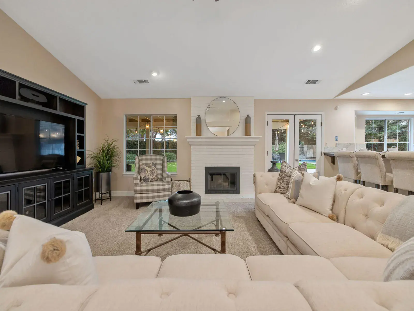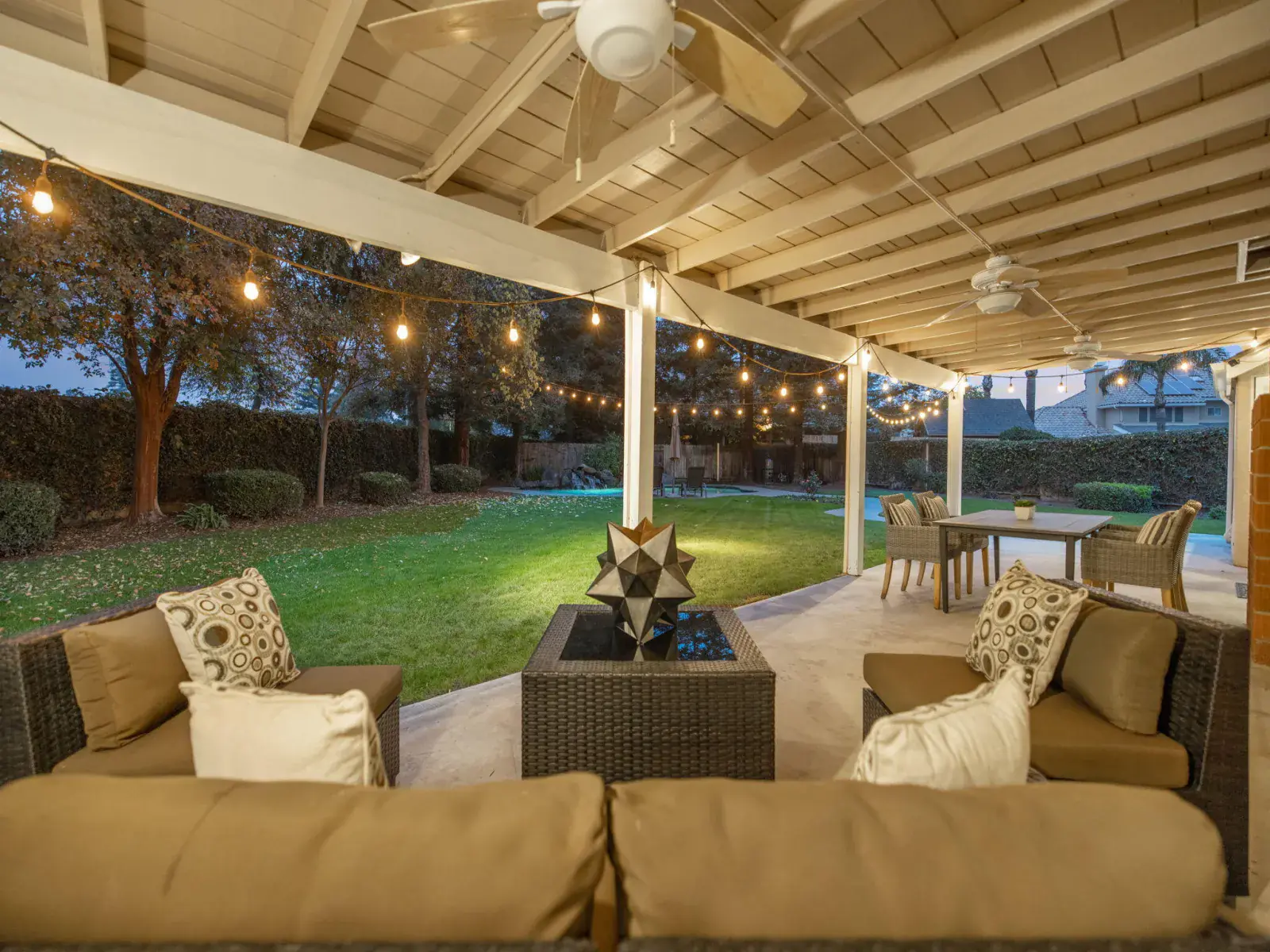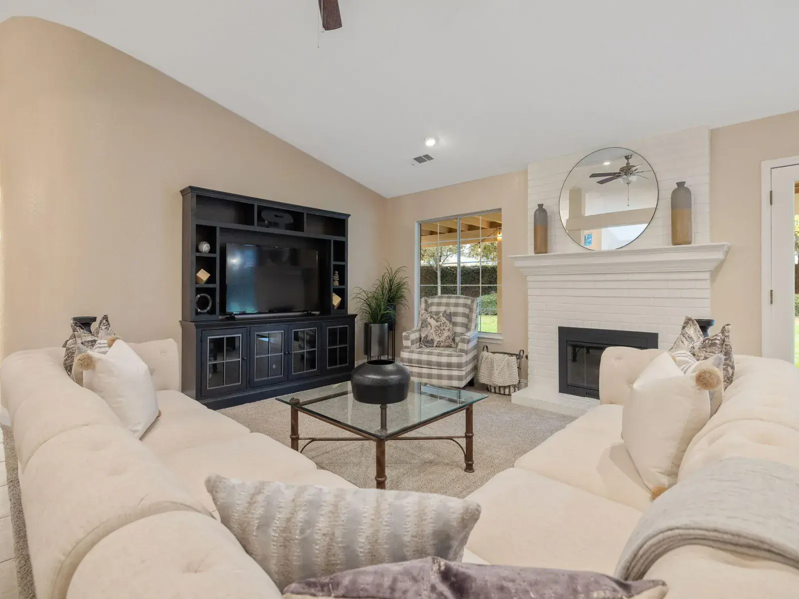 Exquisite home just listed in Gold Creek! Tucked at the end of a peaceful cul-de-sac on an extra-large 15,130 sq ft lot, this residence sits in one of SW Visalia’s most established and sought-after neighborhoods, close to great schools, shopping, and Highway 99 access. From the moment you arrive, this home delivers dreamy cul-de-sac curb appeal that’s impossible to forget. A formal entry opens to a formal living room on one side, and a gracious dining room with built-in buffet on the other. Straight ahead, a light-filled great room featuring vaulted ceilings, fireplace, and a wall of windows framing the sprawling backyard. Chef’s kitchen impresses with granite countertops, a large center island, stainless steel appliances, breakfast bar, and abundant cabinetry, perfectly connected to both the great room and a charming breakfast nook with access to the side yard. Well-designed laundry/mudroom includes extensive cabinetry, utility sink, hanging bar, and entry to the three-car garagewhere one bay is currently used as a home gym, offering endless flexibility. A thoughtful powder bath with exterior access doubles as a convenient pool bath. Luxurious primary suite is a true retreat, featuring a grand double-door entrance, fireplace, patio access, and access to 4th bedroom. The spa-inspired primary bath includes dual vanities, soaking tub, tiled shower, and oversized walk-in closet. Additional bedrooms are generously sized, full of charm, and served by a hall bath with dual vanities. Outside, a large covered patio with ceiling fans overlooks your own private oasis complete with a sparkling pool, rock waterfall feature, mature trees, and vibrant landscaping. With space for gatherings, play, and relaxation, this backyard is something special. At the side yard, a dog run for the family pet. This beautifully cared for home with exceptional amenities and an unmistakable feeling of ”this is the one.” Must see to experience all this lovely home has to offer!