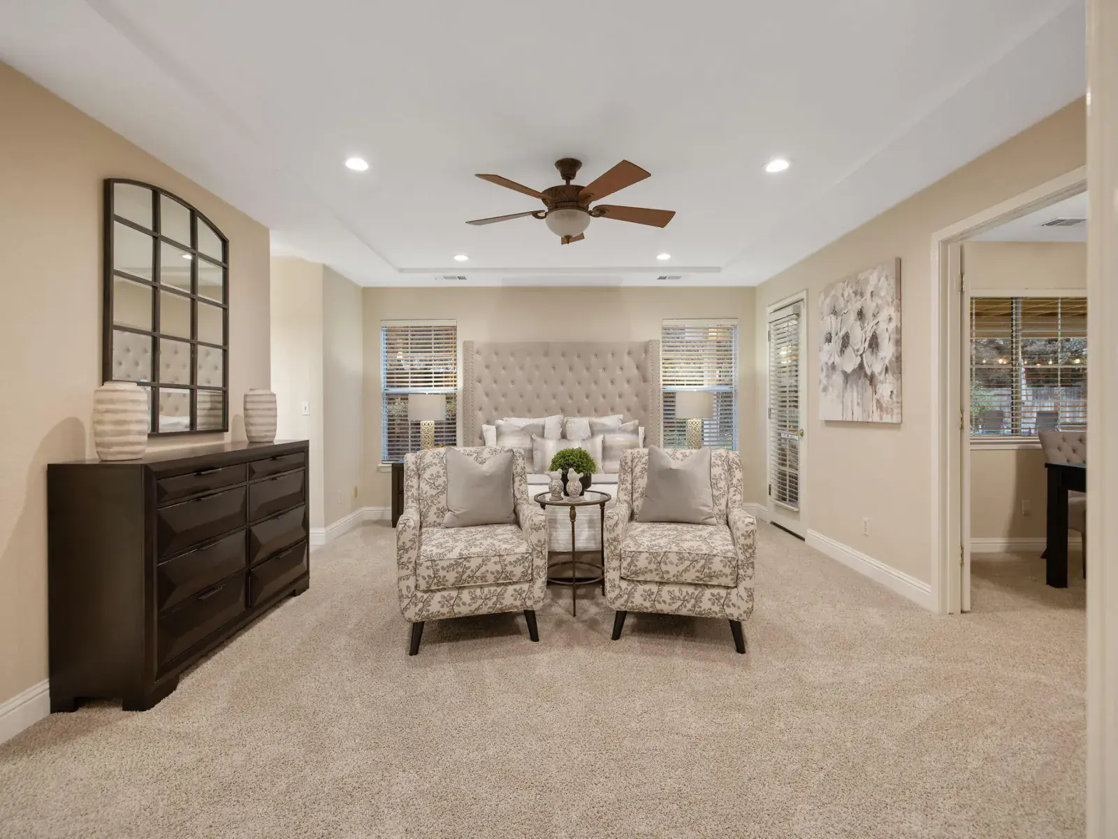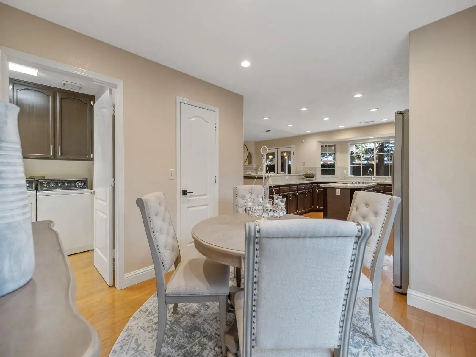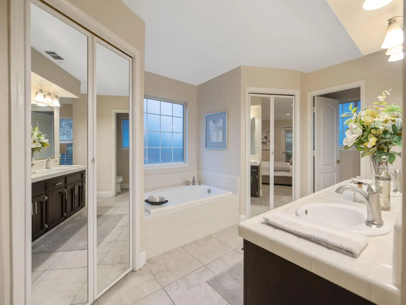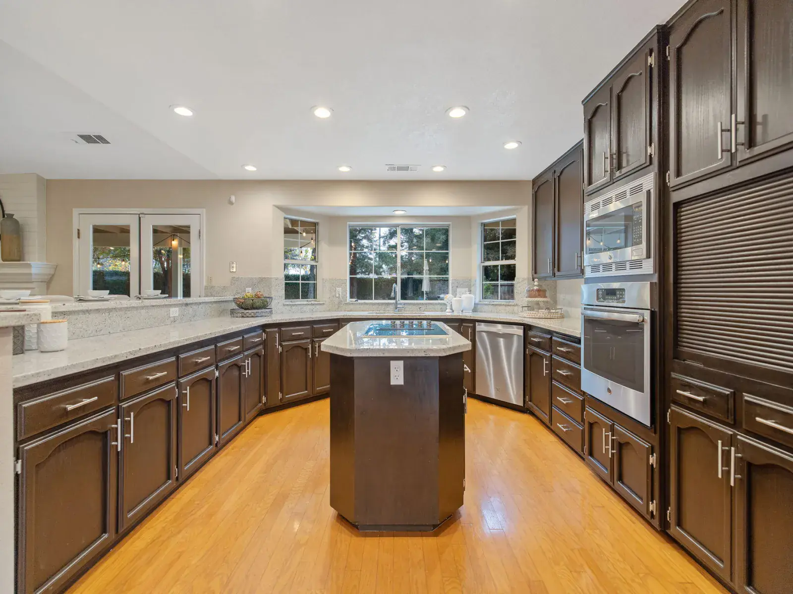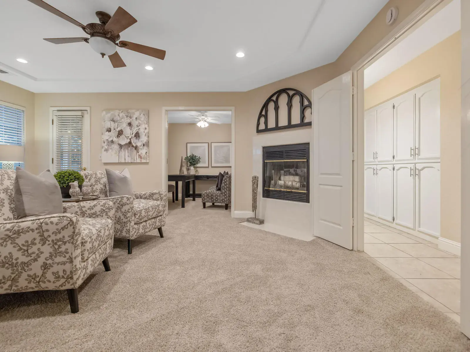 Exquisite home just listed in Gold Creek! Tucked at the end of a peaceful cul-de-sac on an extra-large 15,130 sq ft lot, this residence sits in one of SW Visalia’s most established and sought-after neighborhoods, close to great schools, shopping, and Highway 99 access. From the moment you arrive, this home delivers dreamy cul-de-sac curb appeal that’s impossible to forget. A formal entry opens to a formal living room on one side, and a gracious dining room with built-in buffet on the other. Straight ahead, a light-filled great room featuring vaulted ceilings, fireplace, and a wall of windows framing the sprawling backyard. Chef’s kitchen impresses with granite countertops, a large center island, stainless steel appliances, breakfast bar, and abundant cabinetry, perfectly connected to both the great room and a charming breakfast nook with access to the side yard. Well-designed laundry/mudroom includes extensive cabinetry, utility sink, hanging bar, and entry to the three-car garagewhere one bay is currently used as a home gym, offering endless flexibility. A thoughtful powder bath with exterior access doubles as a convenient pool bath. Luxurious primary suite is a true retreat, featuring a grand double-door entrance, fireplace, patio access, and access to 4th bedroom. The spa-inspired primary bath includes dual vanities, soaking tub, tiled shower, and oversized walk-in closet. Additional bedrooms are generously sized, full of charm, and served by a hall bath with dual vanities. Outside, a large covered patio with ceiling fans overlooks your own private oasis complete with a sparkling pool, rock waterfall feature, mature trees, and vibrant landscaping. With space for gatherings, play, and relaxation, this backyard is something special. At the side yard, a dog run for the family pet. This beautifully cared for home with exceptional amenities and an unmistakable feeling of ”this is the one.” Must see to experience all this lovely home has to offer!