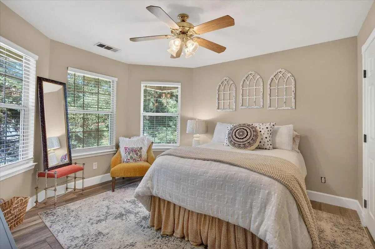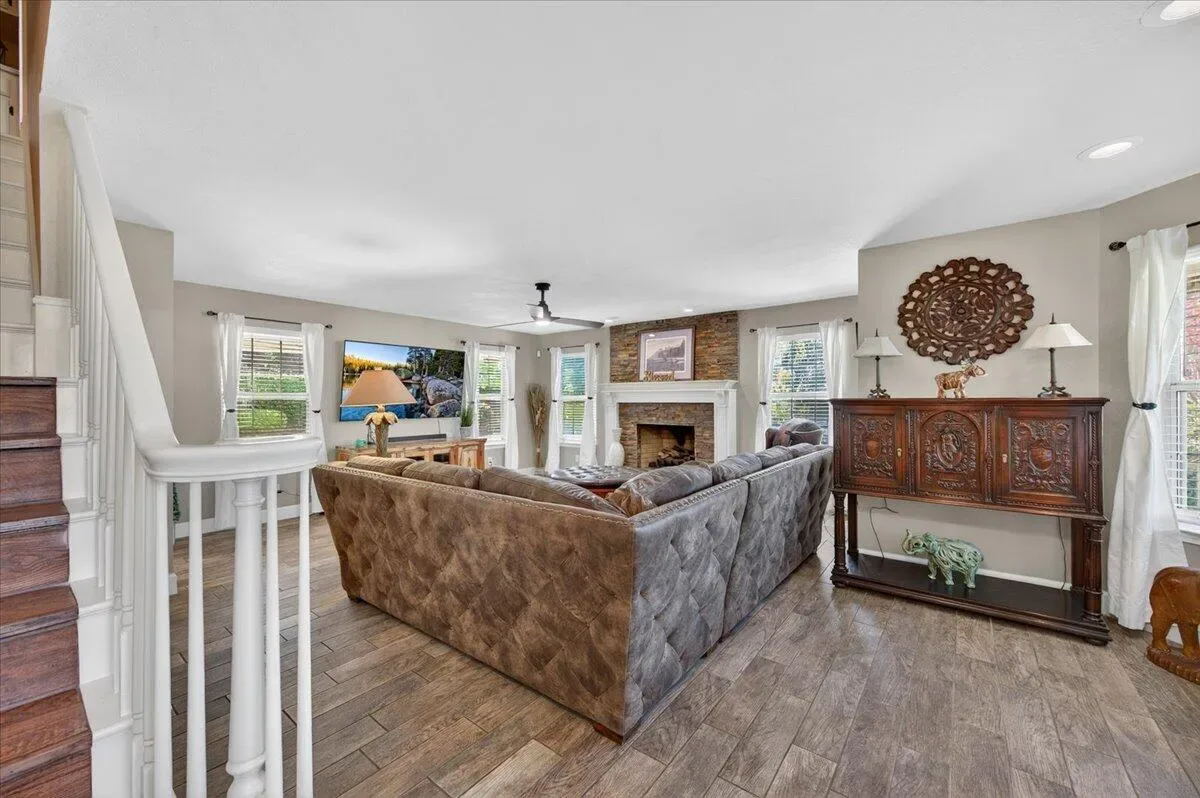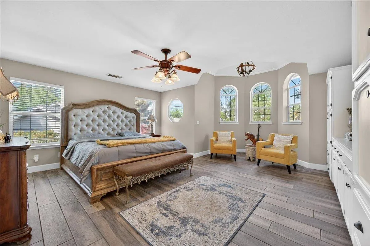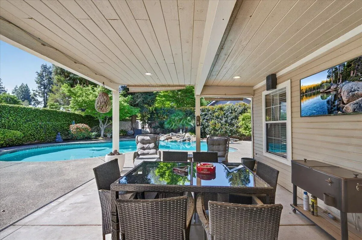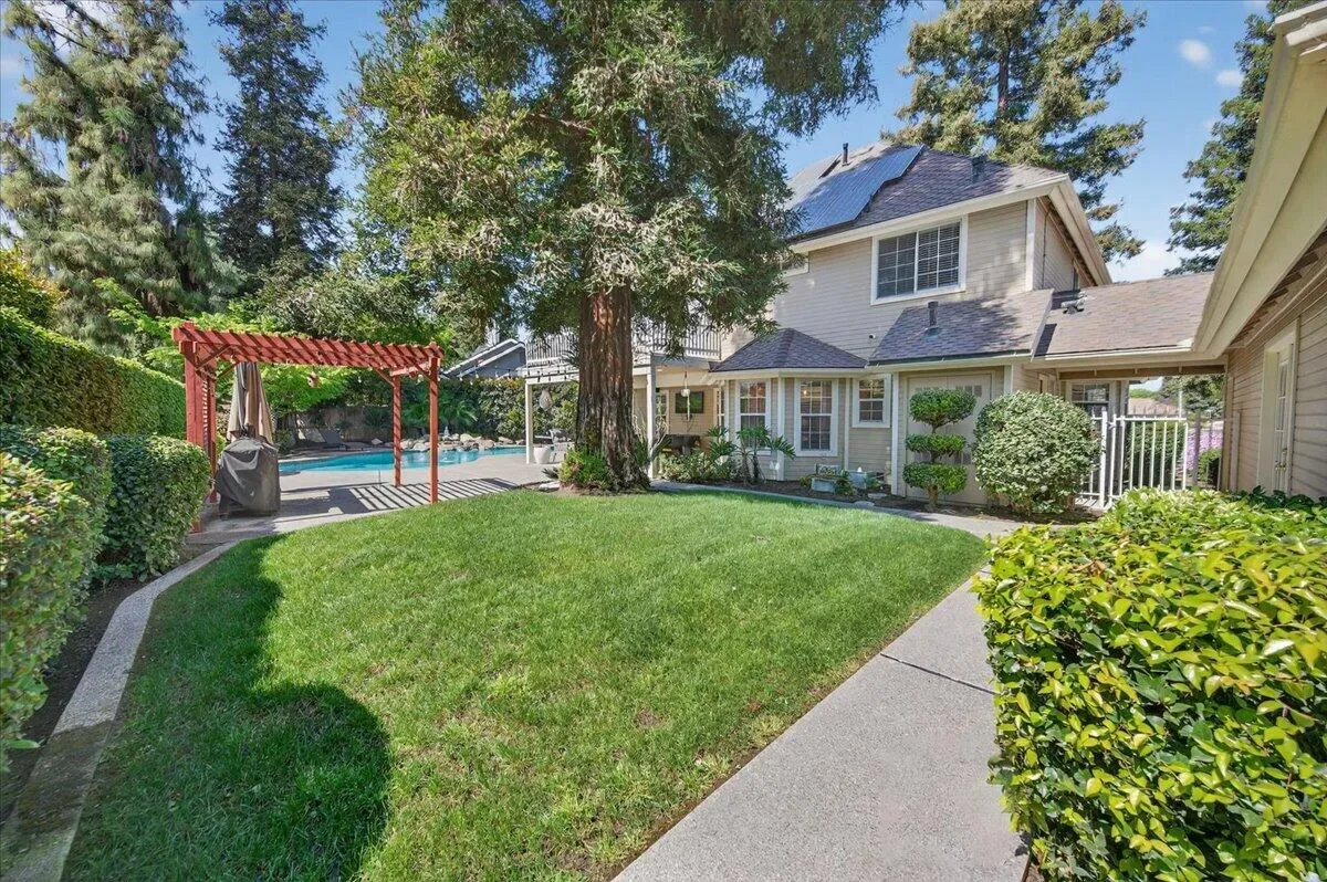 Tucked away at the end of one of the most coveted cul-de-sacs in Hidden Oaks Estates, a custom home community, this exceptional modern-day Victorian estate offers a rare blend of timeless architecture, thoughtful upgrades, and resort-style living. Believed to be the model home for the neighborhood, this luxury residence sits on a beautifully manicured ¼-acre lot that feels more like a private park. Lush, mature landscaping surrounds you, creating a serene and secluded setting rarely found within city limits. From the moment you arrive, the home’s charming curb appeal, classic lines, and inviting front porch set the tone for what awaits inside. Step through the door and experience a home meticulously remodeled from top to bottom. Rich faux wood porcelain tile flooring flows throughout both levels, combining elegance with durability. The interior showcases refined upgrades, including wainscoting, custom molding, and extensive built-in cabinetry, offering both sophistication and functionality. The kitchen is designed for everyday living and entertaining alike, featuring granite countertops, stainless steel appliances, and a brand-new dishwasher, all seamlessly connected to the home’s warm and inviting living spaces. Upstairs, the spacious primary suite serves as a true retreat, highlighted by abundant natural light, architectural charm, and a luxurious ensuite bath complete with a jetted soaking tub, separate walk-in shower, and generous walk-in closet. Step outside and discover your own private oasis. The backyard is built for both relaxation and entertaining, centered around a large, well-maintained pool with a Pentair color-changing LED lighting system. Mature landscaping, expansive hardscaping, and multiple gathering areas create a setting perfect for hosting or unwinding. Adding even more versatility, the property includes a detached garage connected by a covered breezeway, complete with a workshop area and a semi-finished bonus space, presenting excellent potential for a future ADU, guest suite, office, or studio (subject to City approvals). Additional highlights include: Prime cul-de-sac location in one of Visalia’s most desirable neighborhoods Three fruit trees (two orange, one lemon) Extensive upgrades throughout interior and exterior Unique architectural character rarely found in newer homes This is more than just a home, it’s a lifestyle property offering privacy, charm, and modern comfort in one of Visalia’s premier custom home neighborhood settings.