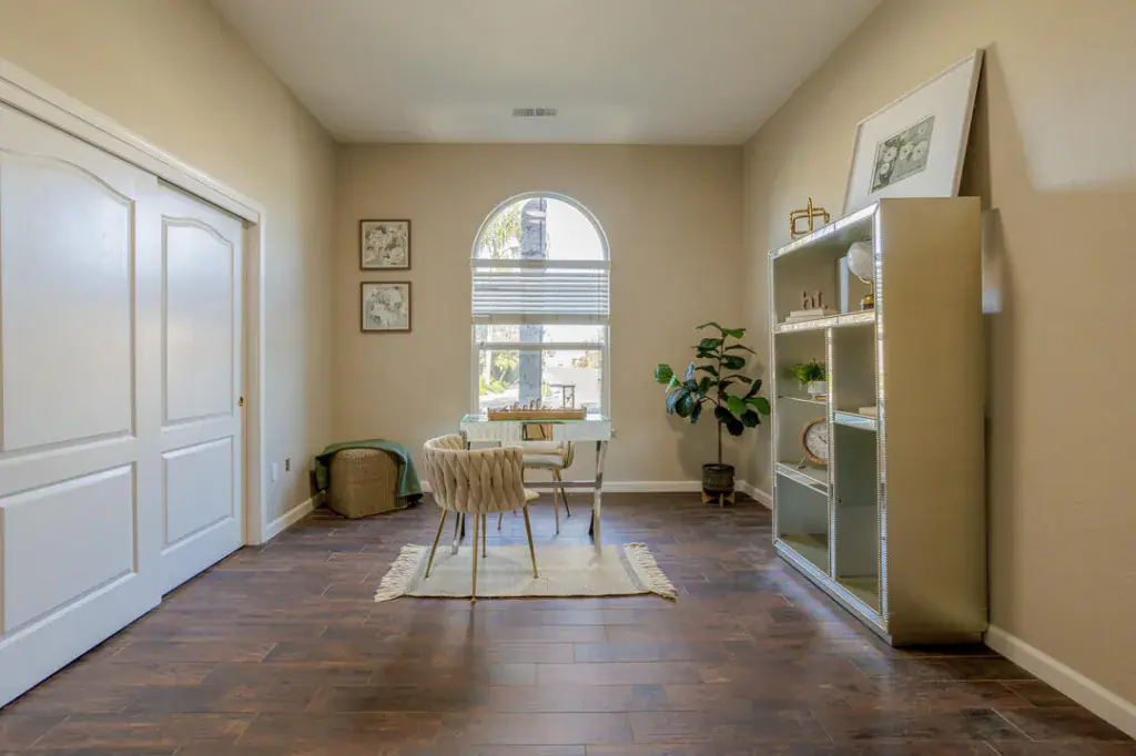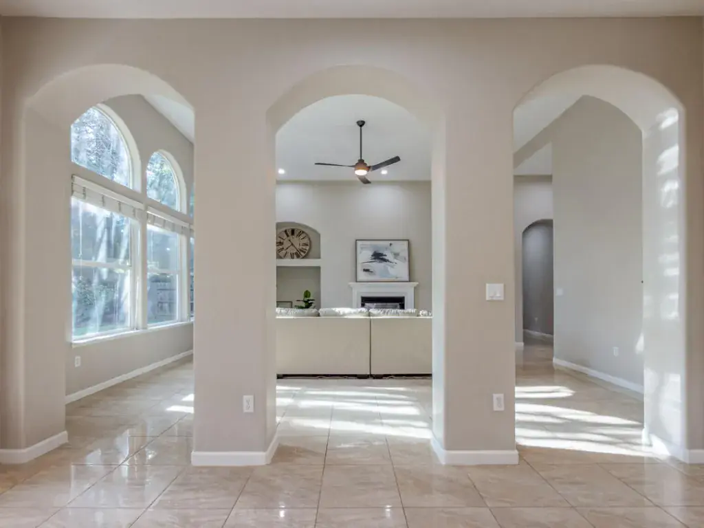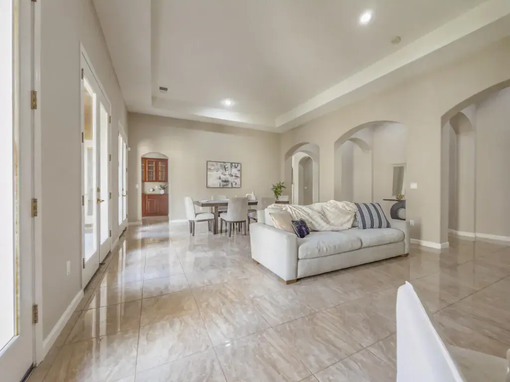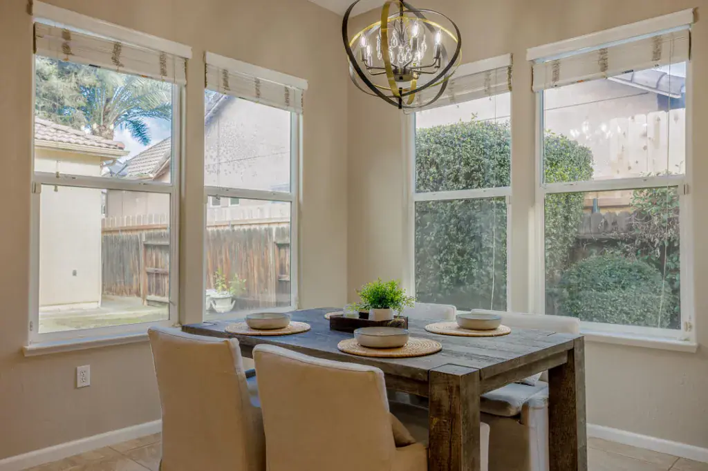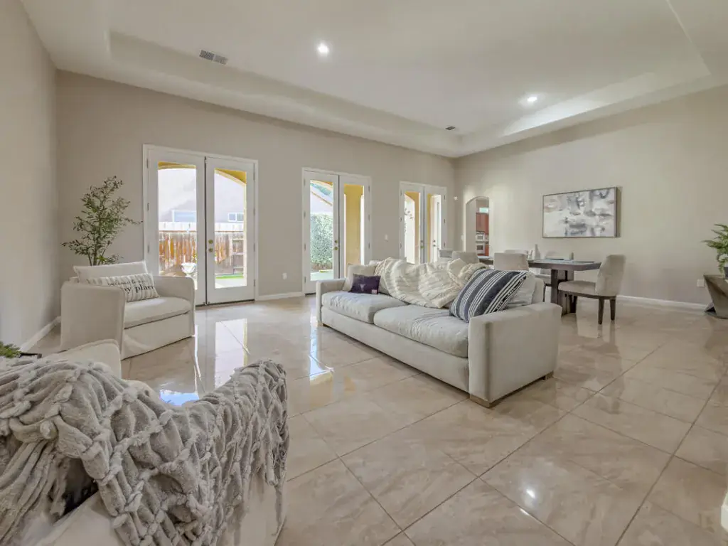 Searching for a NW Visalia Marseille beauty with plenty of space for everyone? Come visit this 4 bedroom home featuring alluring high ceilings, inviting archways, brand new interior paint, stylish light fixtures and exquisite polished porcelain tile floors. Granite counter tops and a smartly-located breakfast bar in the kitchen open up to a the living room with built-ins for media and also an electric cozy fireplace. Large windows and windowed doors provide plenty of natural light in the great room, which opens to a paved side yard patio, perfect for morning coffee or for hosting brunch. A covered patio sits directly outside kitchen/living room area, offering plenty of shade for those warm months. Large primary bedroom and bath, the latter with separate shower, bath tub and 2 walk-in closets. Convenient Jack and Jill bathroom between bedrooms 2 and 3. Make your appointment today!