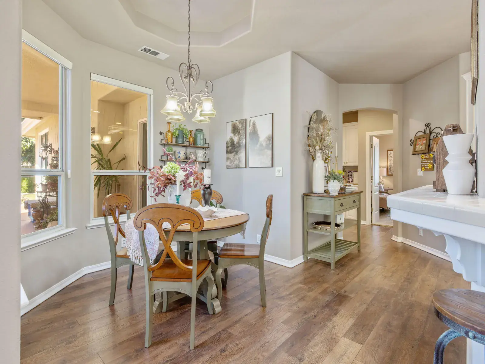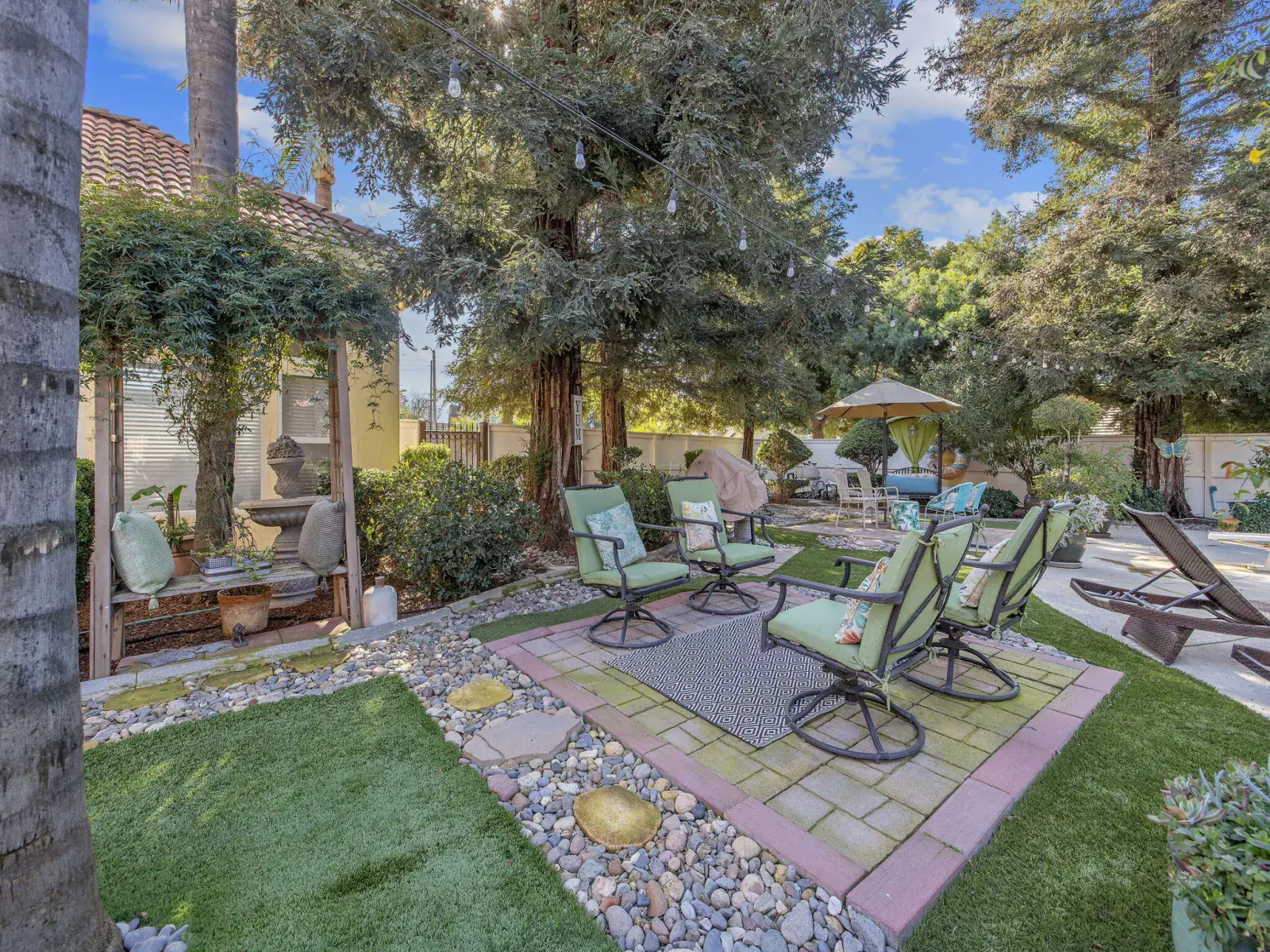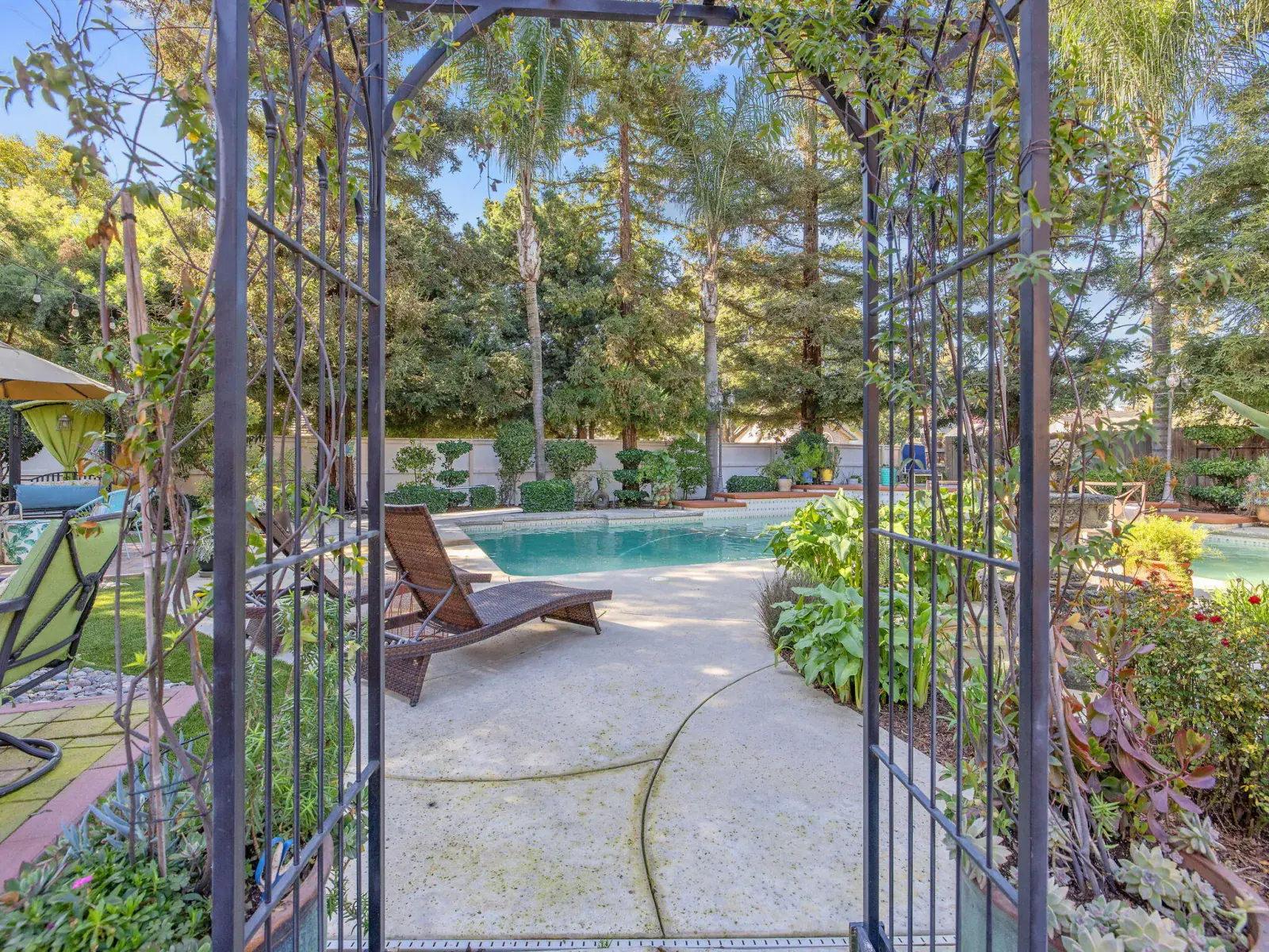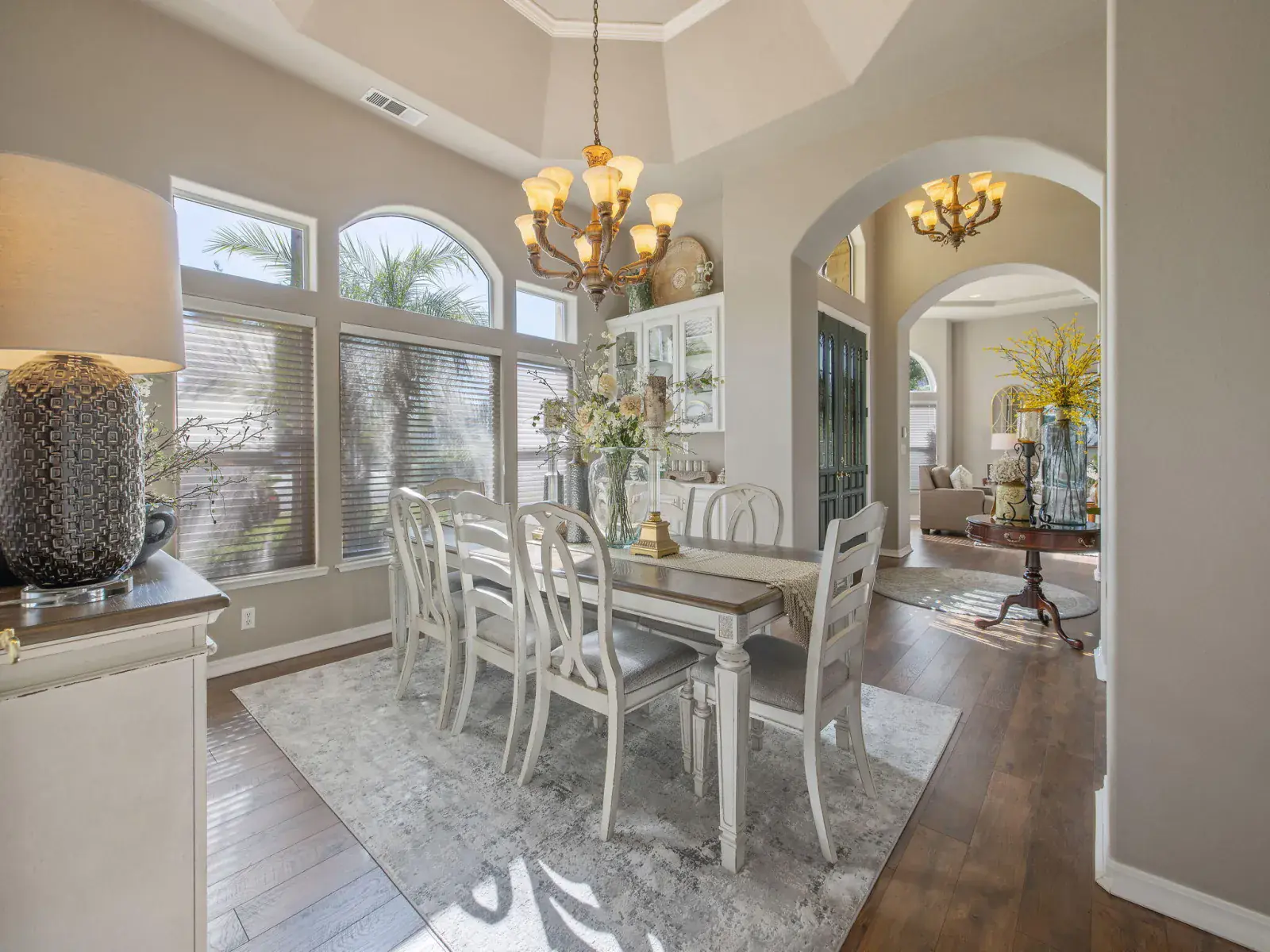Pride of ownership is evident in this beautiful, original-owner custom built home located in the highly desirable Savannah Heights neighborhood. Set on a lushly landscaped half-acre corner lot, the property features newer exterior paint, mature greenery, and plenty of space with potential for RV parking. Inside, you’ll find designer two-tone paint, high ceilings elegantly coffered, custom chandeliers, luxury vinyl flooring, and architectural bump-outs that add both style and function. The spacious kitchen is perfect for entertaining, offering top of the line appliances, a center island, walk-in pantry, sitting bar, and a bright dining nook overlooking a spectacular backyard. A formal dining room with a built-in hutch and bar sets the stage for memorable gatherings. Separate living and family rooms provide flexibility, with the family room highlighted by a fireplace and custom built-in shelving. The expansive owner’s suite is a true retreat, featuring its own fireplace, dual sinks, a relaxing jacuzzi tub, double shower heads, and a generous walk-in closet. Secondary bedrooms include charming pop-outs that enhance space and natural light. Step outside to enjoy a covered patio, additional sitting areas, a fountain and a grand sparkling pool with water fall sheers ideal for relaxing or entertaining year-round. Conveniently located near shopping, schools, neighborhood parks, and with easy freeway access, this exceptional home offers the perfect blend of custom design, comfort, and location.