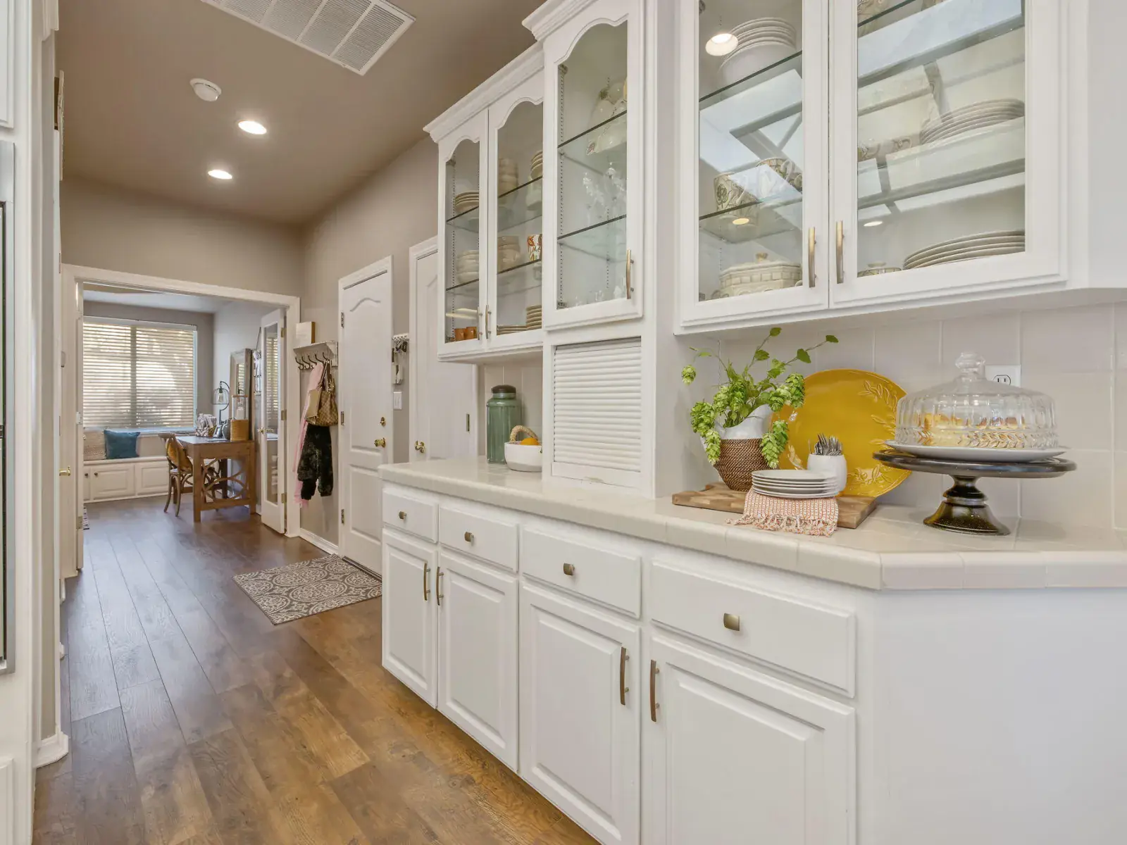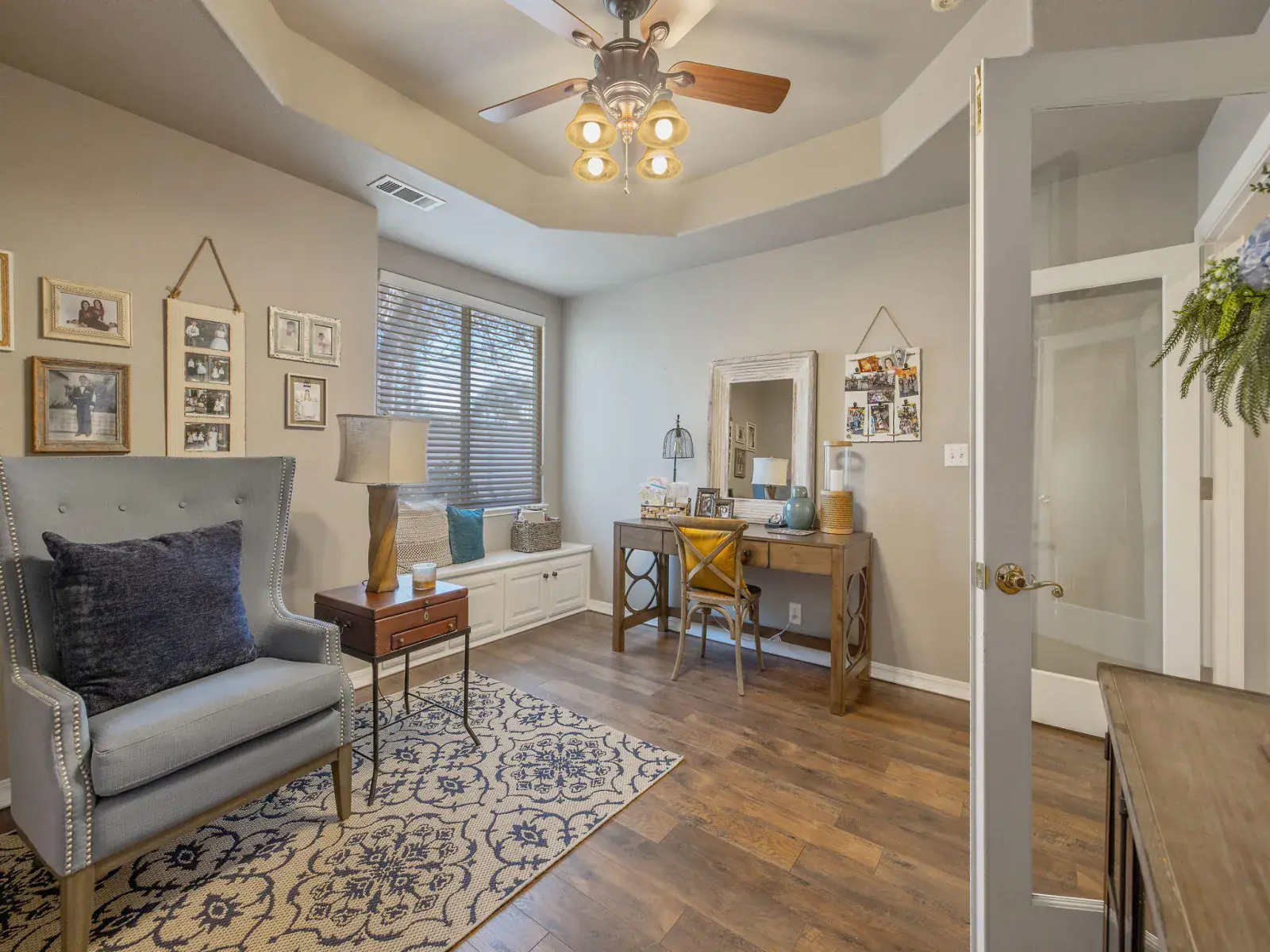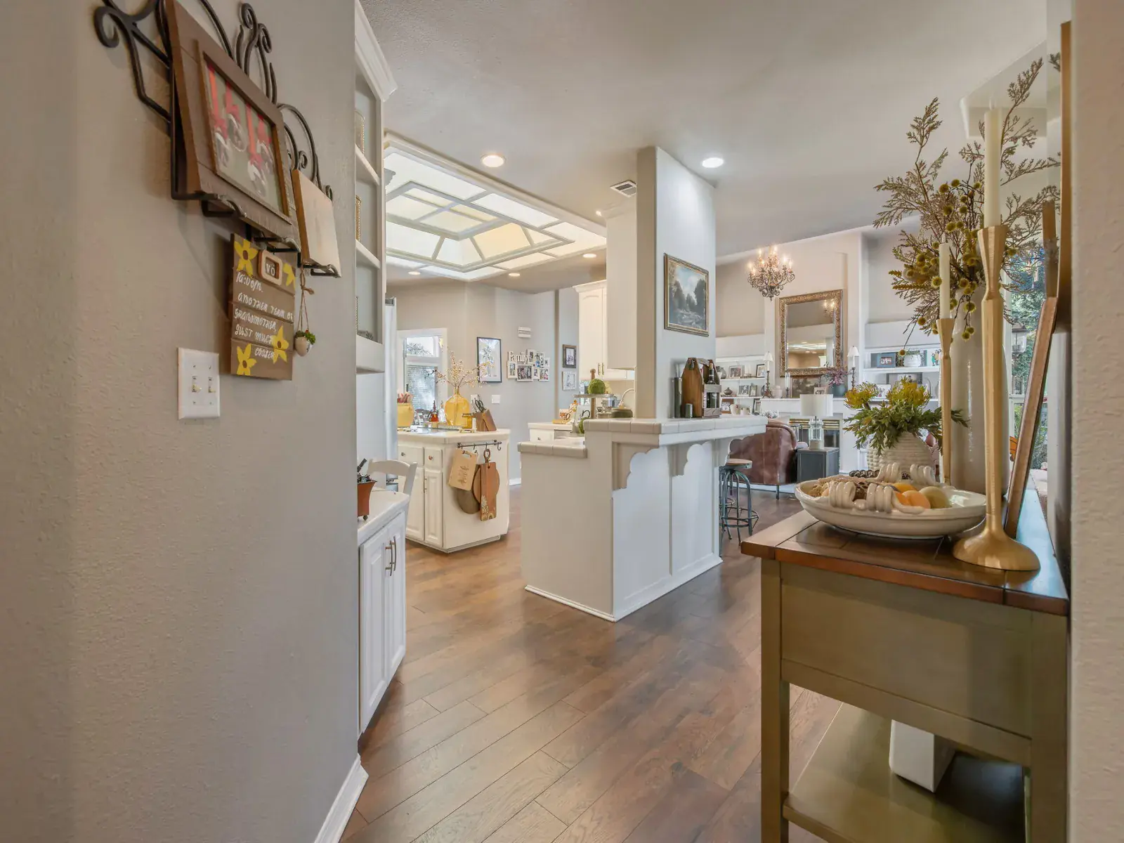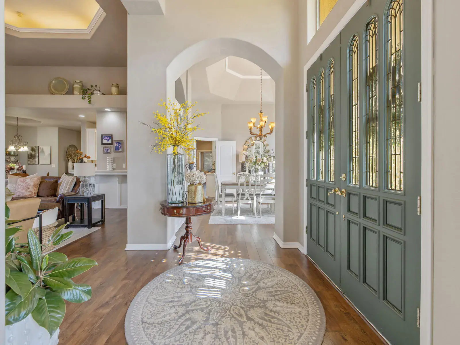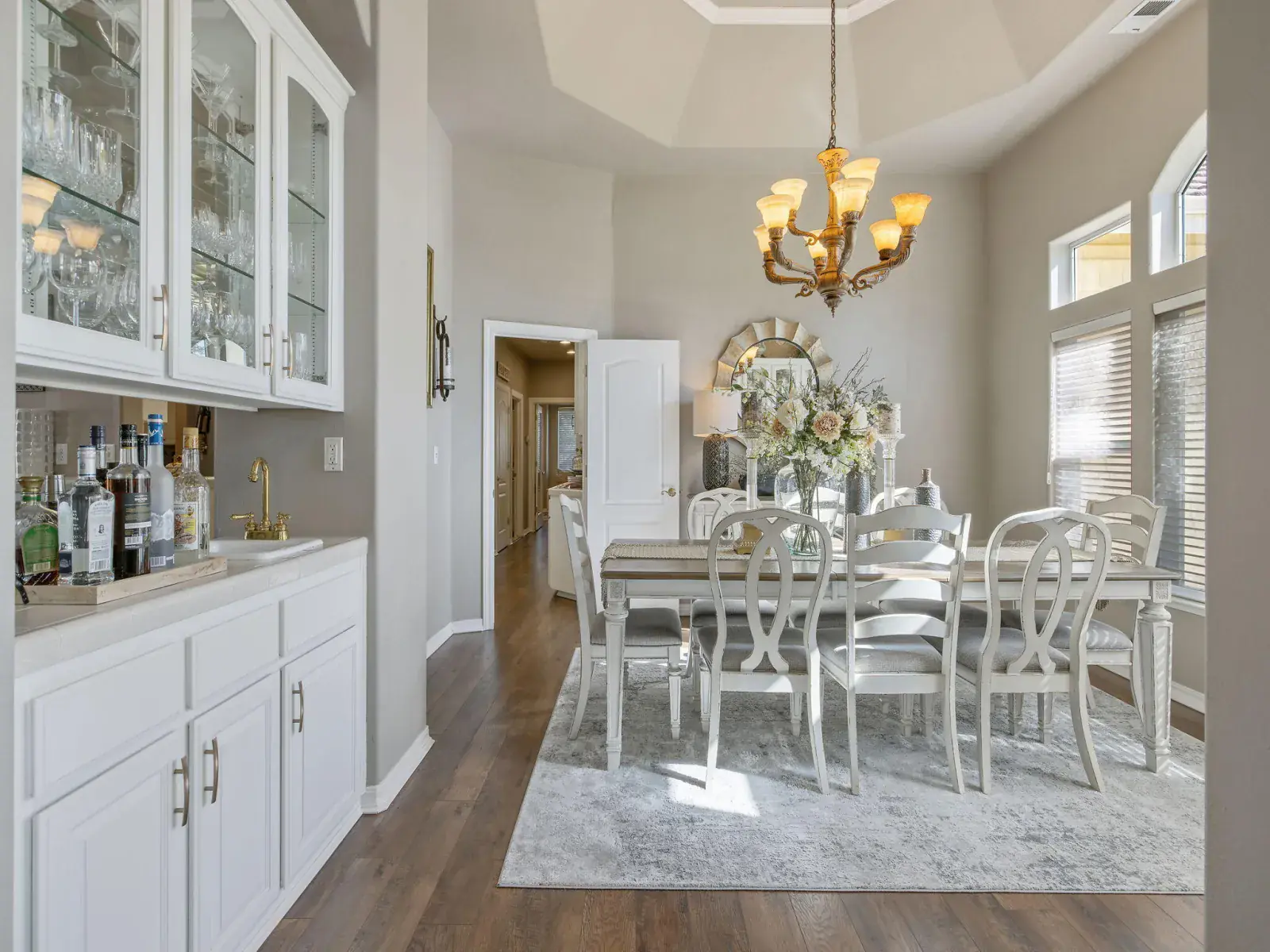 Pride of ownership is evident in this beautiful, original-owner custom built home located in the highly desirable Savannah Heights neighborhood. Set on a lushly landscaped half-acre corner lot, the property features newer exterior paint, mature greenery, and plenty of space with potential for RV parking. Inside, you’ll find designer two-tone paint, high ceilings elegantly coffered, custom chandeliers, luxury vinyl flooring, and architectural bump-outs that add both style and function. The spacious kitchen is perfect for entertaining, offering top of the line appliances, a center island, walk-in pantry, sitting bar, and a bright dining nook overlooking a spectacular backyard. A formal dining room with a built-in hutch and bar sets the stage for memorable gatherings. Separate living and family rooms provide flexibility, with the family room highlighted by a fireplace and custom built-in shelving. The expansive owner’s suite is a true retreat, featuring its own fireplace, dual sinks, a relaxing jacuzzi tub, double shower heads, and a generous walk-in closet. Secondary bedrooms include charming pop-outs that enhance space and natural light. Step outside to enjoy a covered patio, additional sitting areas, a fountain and a grand sparkling pool with water fall sheers ideal for relaxing or entertaining year-round. Conveniently located near shopping, schools, neighborhood parks, and with easy freeway access, this exceptional home offers the perfect blend of custom design, comfort, and location.