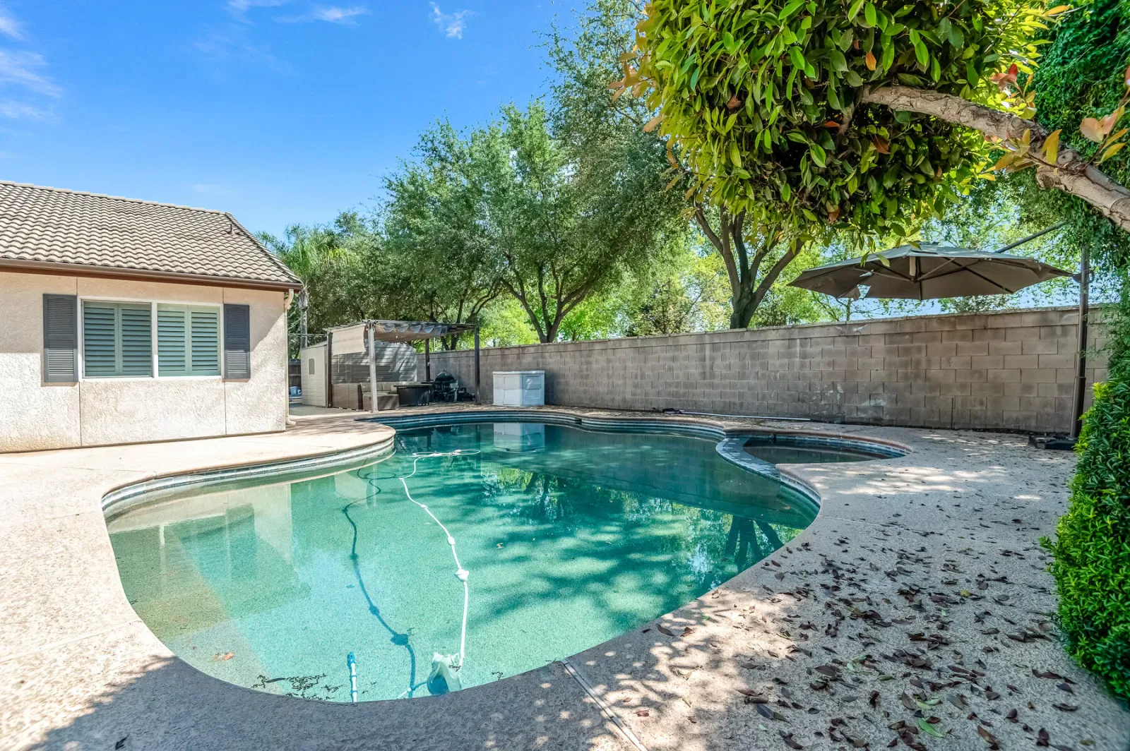 A lovely find in desirable Shannon Ranch on enviable cul-de-sac location! This 5/3 offers spacious living with a gorgeous pool, spa, oversized lot, basketball court, and so much more! The home features an open-concept great room with feature fireplace, dining, kitchen, and counter seating which make for fabulous, enjoyable space for entertaining or quality family time. Sliders to patio and pool and views to spacious back yard further increase the space flexibility. The primary suite features tub, shower, walk-in closet, and pool access. Another special feature about this property is a separate junior suite that could function as a mother-in-law suite. There is ample storage with two detached storage units with electrical, a lovely second patio area by basketball court, outdoor shower, and pool…so many options for the outdoor space! Bonus features include two separate laundry areas, and includes washer and dryer. All this in this highly desirable NW neighborhood, quiet and tree-lined. Don’t miss your chance to see it today!