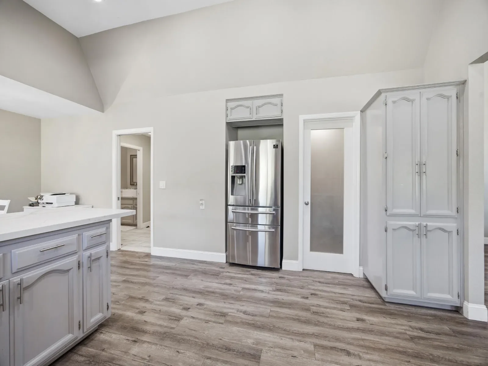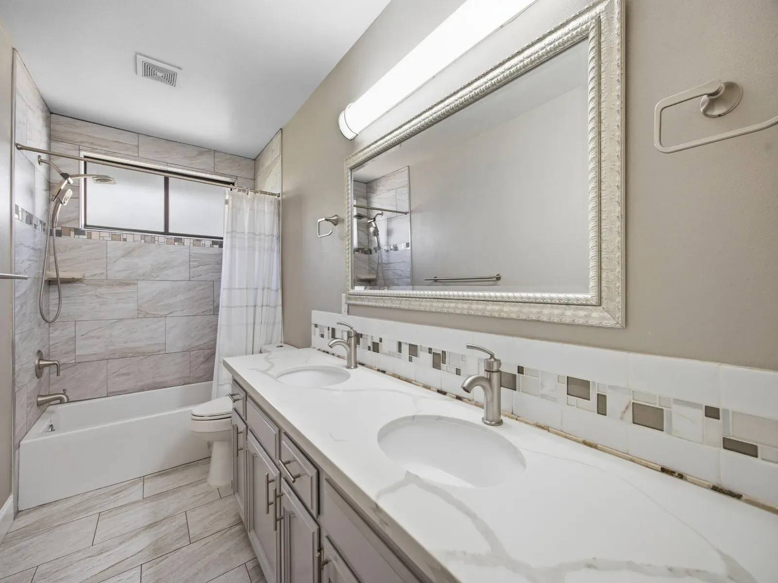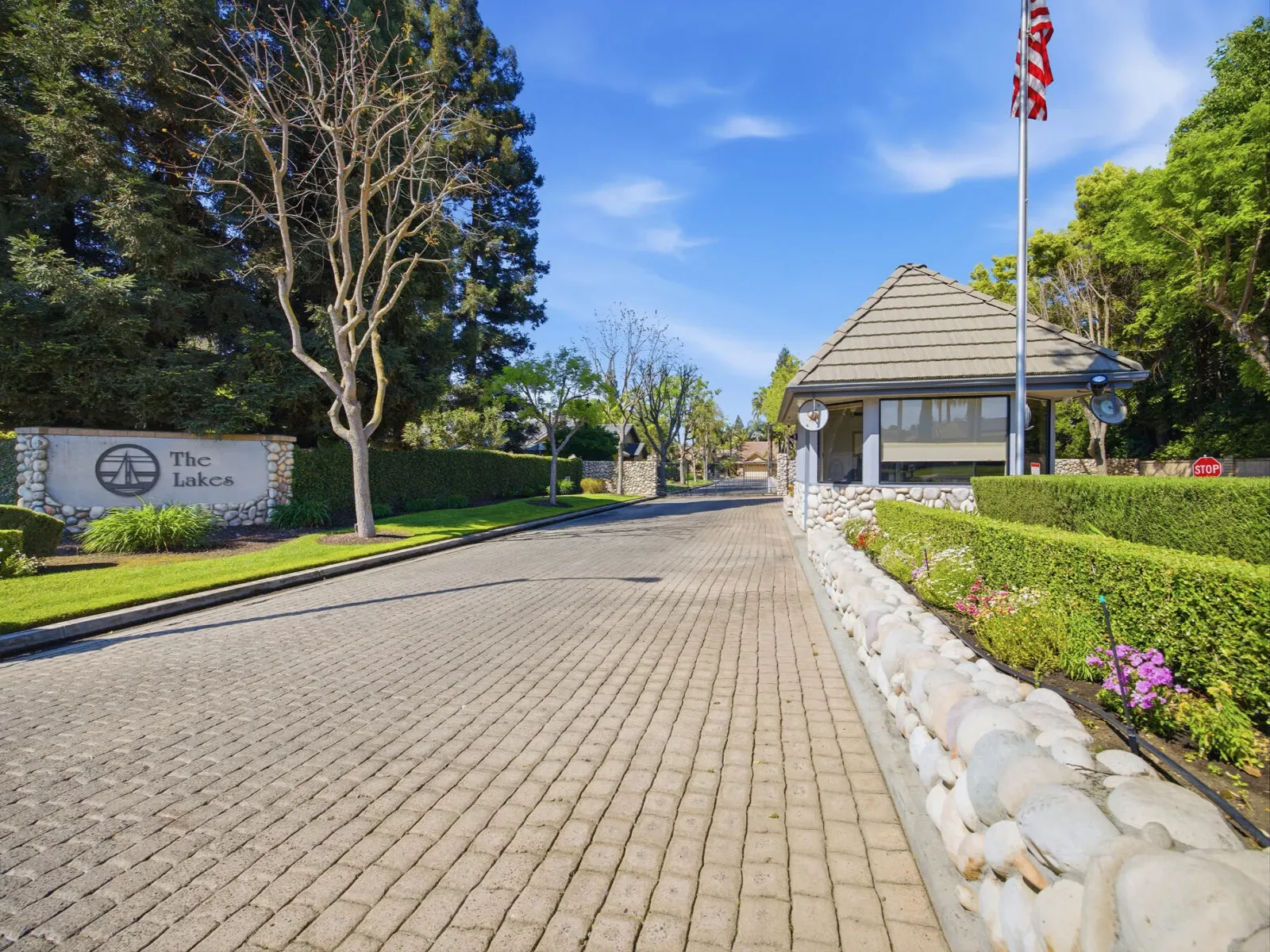 This Beautiful 3 bedroom, 2-1/2 bath home was remodeled approximately 5 years ago. Located in the highly desirable gated community of The Lakes. Enjoy privacy along with resort-style amenities including a lake, pool, two clubhouses, and tennis courts—an exceptional opportunity to own in one of the area’s most sought-after neighborhoods. Step inside to a spacious great room featuring a stunning stone fireplace, built-in storage, decorative wood beam, ceiling fans, and newer vinyl flooring. French doors open to a formal dining or bonus space with panoramic views of the waterfront backyard. The gourmet kitchen is designed to impress with quartz countertops and a waterfall edge, elegant subway tile backsplash, stainless steel appliances and sink, a large peninsula with breakfast bar, additional dining area, access to the covered patio, and a generous walk-in pantry. The expansive primary suite offers a walk-in closet and peaceful backyard views. The spa-inspired ensuite features quartz countertops, dual sinks, updated fixtures, and a seamless walk-in shower with multiple shower heads. The two additional bedrooms provide generous space and versatility—ideal for guests, a home office, gym, or bonus room.