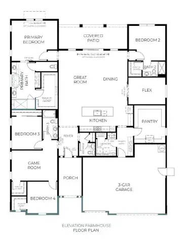 Welcome to the impressive Summit in the sought-after Wildflower community! This thoughtfully designed single-story Farmhouse-style for timeless curb appeal. Inside, you’ll find ‘Icy Avalanche’ painted cabinets throughout, paired with a stunning navy ‘Maritime’ painted island, topped with Level 3 countertops in the kitchen, primary bath, baths 2 & 3, and laundry. The kitchen also showcases a Level 4 tile backsplash, undermount Kohler farmhouse sink in cast iron white, matte black Trinsic Touch2O VoiceIQ faucet, GE stainless steel appliances, and a 2-bin trash pullout.