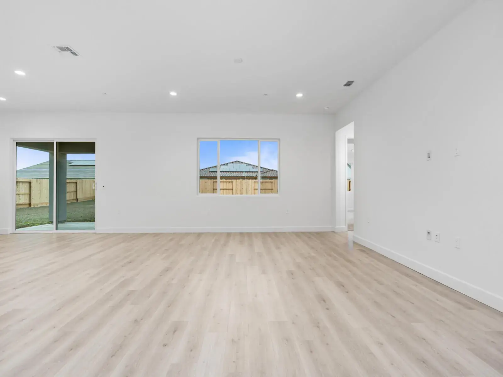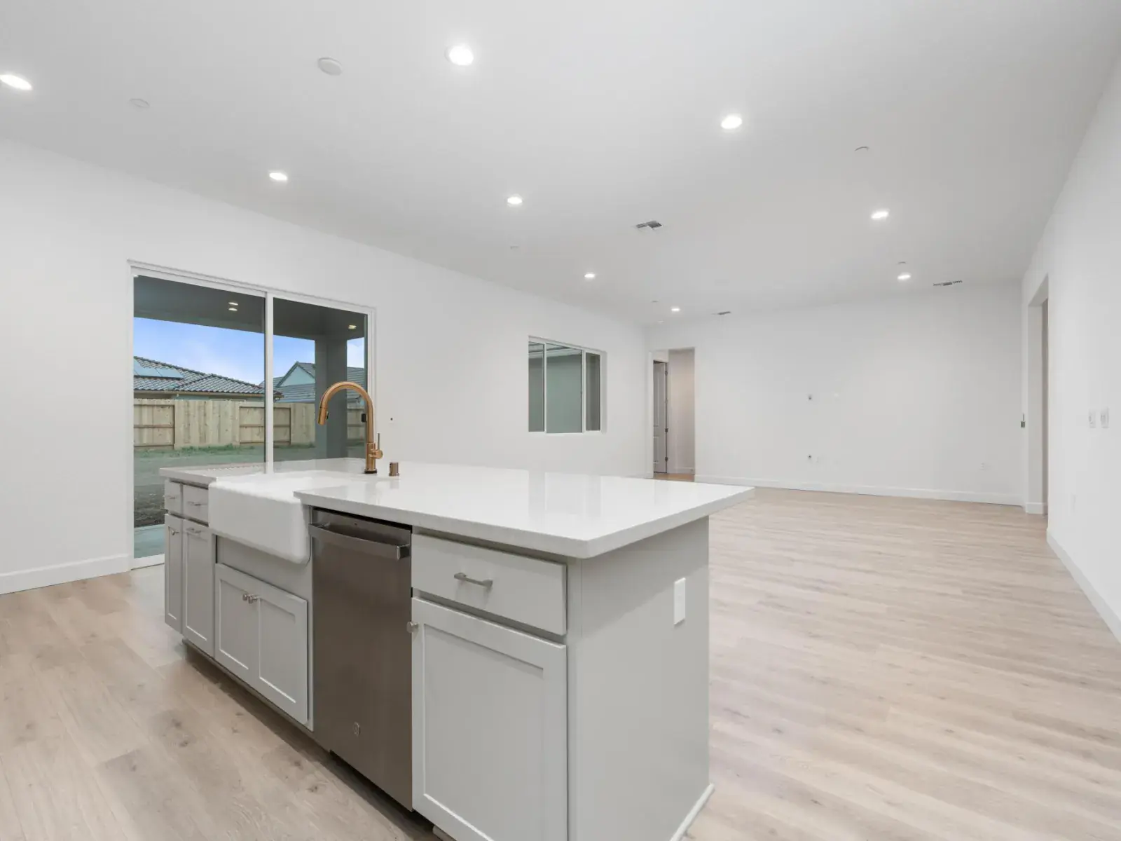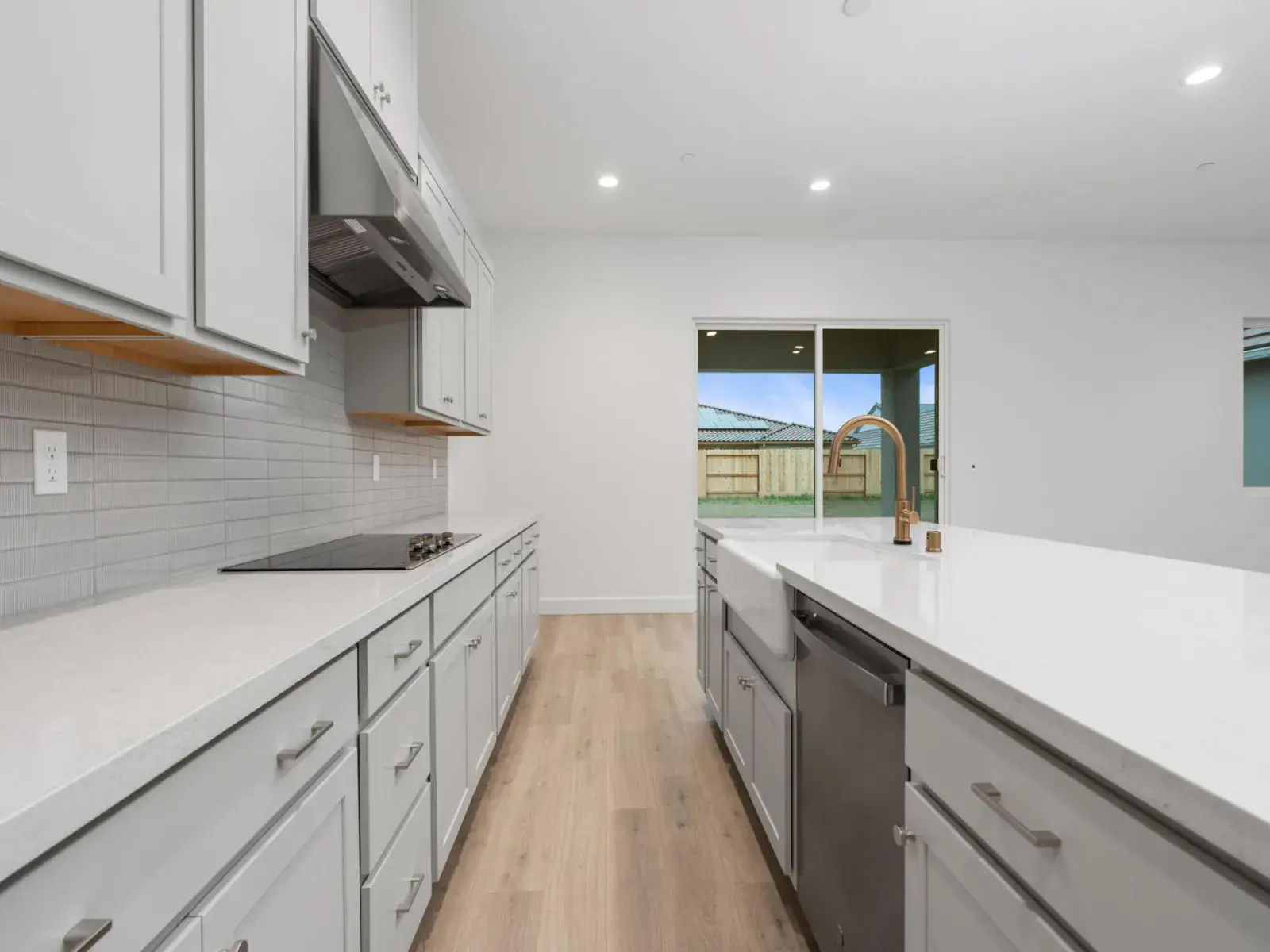 Designed for easier, happier living, this single-story Woodside home features 3 bedrooms, 2.5 baths, and a thoughtfully planned open-concept layout. The kitchen, dining, and great room connect seamlessly, creating a bright, functional space for everyday living and relaxed entertaining. The kitchen is equipped with upgraded countertops and backsplash, electric stainless steel appliances, and a morning kitchen in lieu of a super pantry—adding valuable prep space and smart storage that helps keep life organized. Upgraded countertops extend through the kitchen, morning kitchen, bathrooms, and laundry room, delivering a cohesive, elevated finish throughout the home. The private primary suite offers a peaceful retreat with a walk-in closet and a well-appointed bath featuring a tiled shower surround for a clean, modern look. Two secondary bedrooms provide flexibility for family, guests, or a home office. A laundry room with built-in sink adds everyday convenience, while the single-story design supports effortless flow from room to room. Additional highlights include a 3-car garage and covered patio—perfect for enjoying warm Central Valley evenings. Thoughtfully designed with comfort, function, and livability in mind, this home supports the moments that make life at home feel easier and more enjoyable.