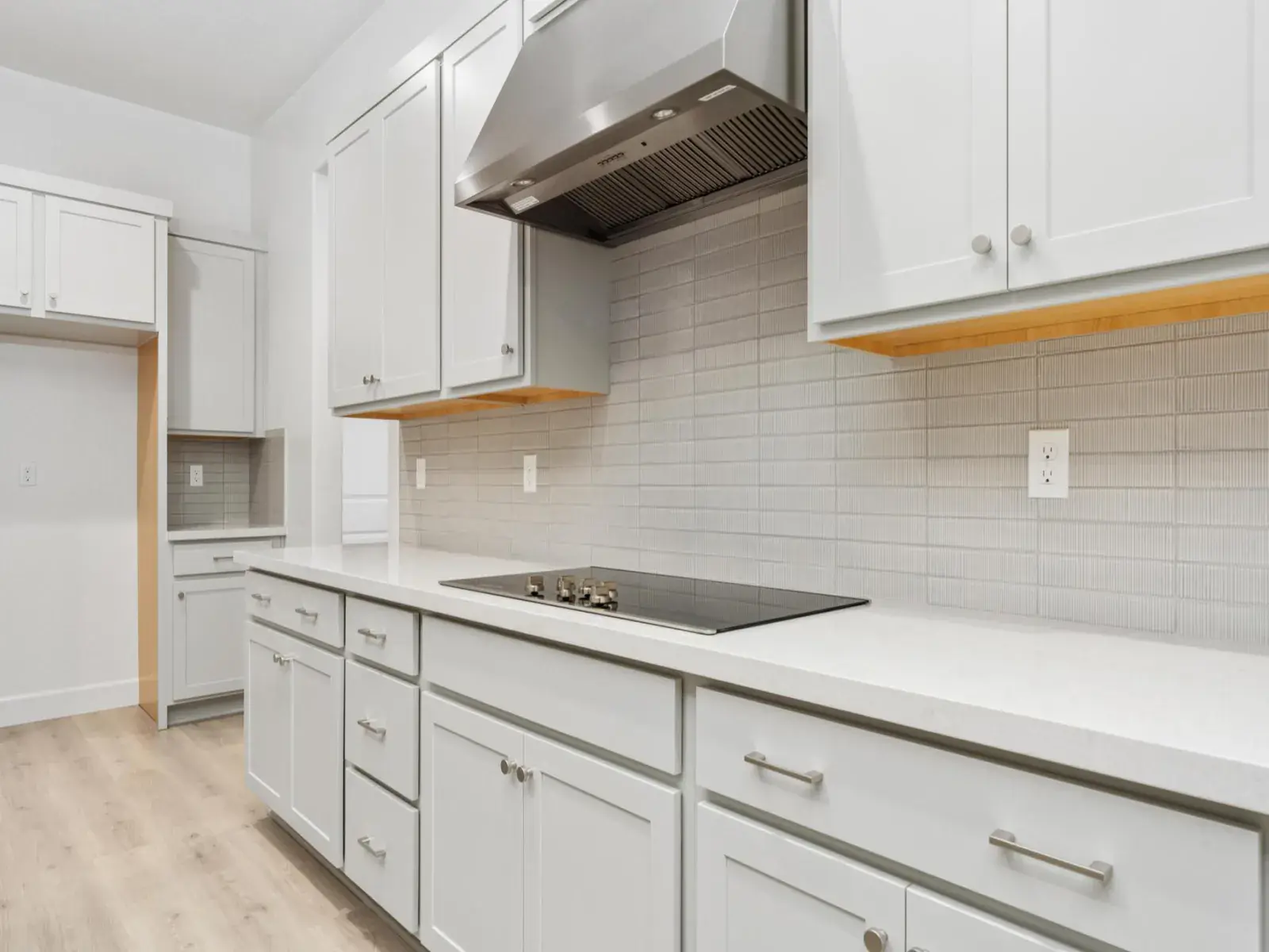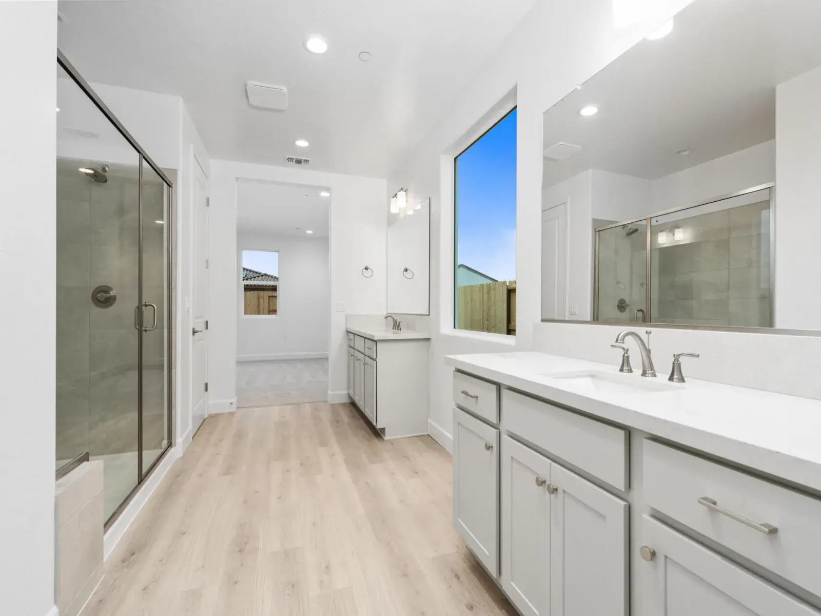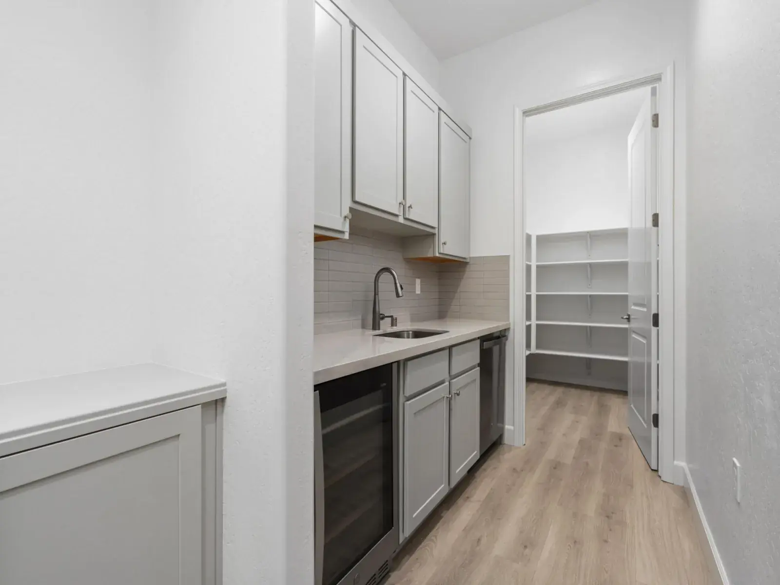 Designed for easier, happier living, this single-story Woodside home features 3 bedrooms, 2.5 baths, and a thoughtfully planned open-concept layout. The kitchen, dining, and great room connect seamlessly, creating a bright, functional space for everyday living and relaxed entertaining. The kitchen is equipped with upgraded countertops and backsplash, electric stainless steel appliances, and a morning kitchen in lieu of a super pantry—adding valuable prep space and smart storage that helps keep life organized. Upgraded countertops extend through the kitchen, morning kitchen, bathrooms, and laundry room, delivering a cohesive, elevated finish throughout the home. The private primary suite offers a peaceful retreat with a walk-in closet and a well-appointed bath featuring a tiled shower surround for a clean, modern look. Two secondary bedrooms provide flexibility for family, guests, or a home office. A laundry room with built-in sink adds everyday convenience, while the single-story design supports effortless flow from room to room. Additional highlights include a 3-car garage and covered patio—perfect for enjoying warm Central Valley evenings. Thoughtfully designed with comfort, function, and livability in mind, this home supports the moments that make life at home feel easier and more enjoyable.