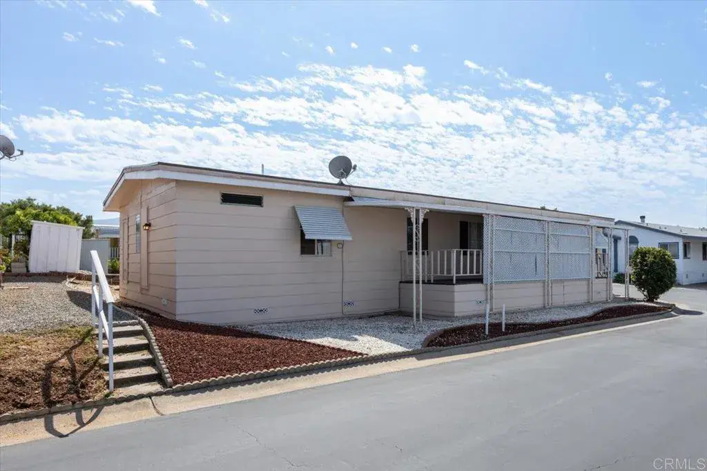 Fully Furnished home that shows pride of ownership located on a corner lot in a 55+ community! NO property taxes, as home is still on HCD registration. This open floor plan offers separate Living and Family rooms that can be shut off from one another with pocket doors or opened up to flow together. There are also multiple dining options including a built in breakfast nook and formal Dining room area. Lots of built in storage, including a built in desk conveniently located in the Kitchen, and a built in wet bar. The fireplace is purely decorative, as the homeowner opted to discontinue it in the recent re-roof. Newer roof, new dishwasher and toilet. The exterior boasts a low maintenance yard, private covered porch, and storage shed. Conveniently located just a short walk form the community pool and other amenities! Vista Royal Lodge is a 55+ park that allows second resident to be age 45+. 2 small pets okay with management approval. Monthly space rent is $1,056.20. Walking distance to Sprouts, Albertsons, Rite Aid, dining & shopping, near Downtown Vista; breweries, movie theater, transportation, Moonlight Amphitheater & a short drive to beaches!