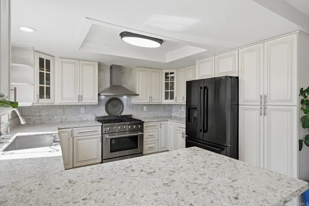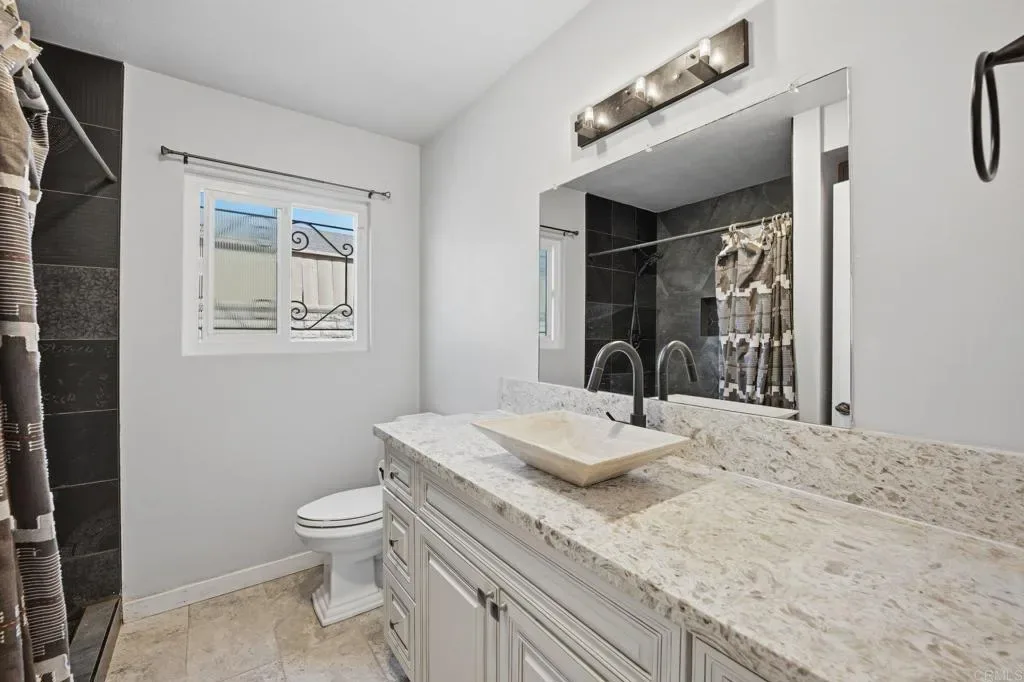 Coming Soon! Gated, fenced and privately set back on a 10,380 sf lot in a beautiful neighborhood close to the coast, transportation and downtown Vista Village. This renovated Vista charmer has gorgeous VIEWS!!! Two story, split level 4 bedroom 3 bath home with additional Mega Bonus room and so many possibilities!! The owners have used this as a multi-family home with a large second kitchen in the ADU. Huge lot with ample parking including an oversized garage. Brand new paint, newer flooring. Recently renovated kitchen features beautiful cabinetry with custom built-ins, stainless appliances, 36 inch stove/range perfect for entertaining in your multi-level property with 5 different outdoor gathering spaces. Chicken coop and run ready for suburban farming. Vegetable and medicinal garden that produces year round. Newer spa with mountain views on upper terrace. Covered patio with large gathering space on lower level opens to the large grassy yard with fruit trees. Solar powered home features full system to save money.