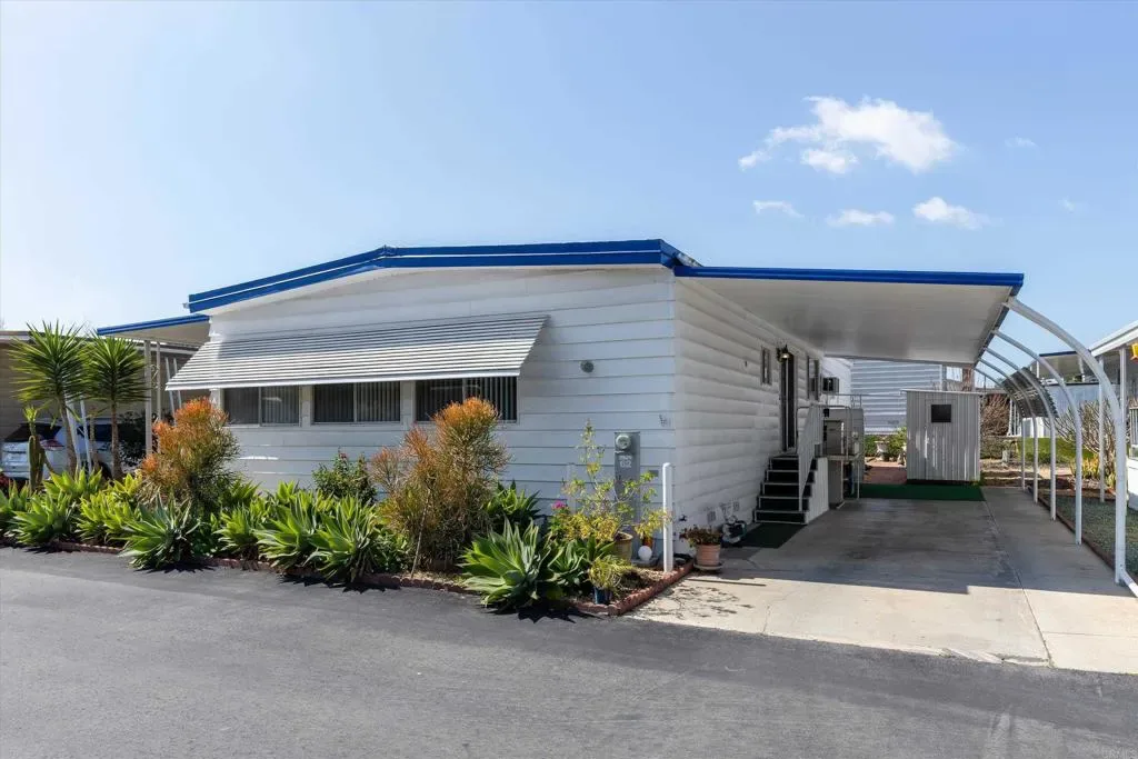 Welcome to Corona Del Vista, a well-maintained, resident-owned co-op share 55+ community where you own the land — No space rent or monthly land lease, and No Buyer in Fee! The interior offers a spacious floor plan with separate Living and Family rooms, a formal Dining room, Kitchen, enclosed porch with Washer / Dryer, and two bedrooms, each with its own ensuite Bathroom. Both bathrooms have step in showers plus updated vanities and fixtures. The Primary Bedroom boasts 3 closets, a dressing area, 2 sinks and a step in shower. The Kitchen boasts two pantries and updated lower cabinets. The enclosed porch is not included in the square footage listed but provides additional living space for an office, hobbies, or storage and the washer and dryer do convey! The wheelchair lift also conveys along with all Kitchen appliances. The exterior offers multiple fruit trees, a private coverd patio, and two storage sheds. Conveniently located across from Guest Parking and around the corner from the fabulous amenities that this HOA has to offer! Corona Del Vista allows one pet under 40 lbs per household. The second resident can be age 45+. Low HOA fee of only $231/mo includes Trash & Dish Network Cable TV. Amenities include a clubhouse, pool, spa, library, shuffle board, BBQs, fenced dog park, RV parking (for an additional fee and per availability), and so much more! Located near shopping, restaurants, public transportation and just a short drive to the beach!