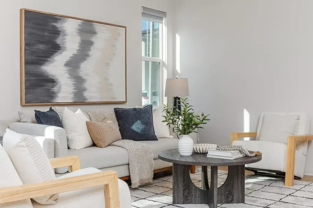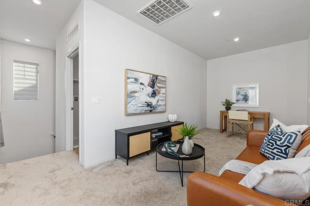 Experience an elevated lifestyle in this nearly-new, energy-efficient masterpiece. This 2-year-old turnkey smart home is a pristine residence packed with high-end upgrades, headlined by a fully PAID solar system, premium window coverings along with a tankless water heater. The open-concept main floor features luxury laminate flooring and a gourmet kitchen with a massive Quartz island, custom tile backsplash, and full stainless steel appliance package. Upstairs, find a versatile layout with luscious carpet, ceiling fans in all bedrooms, and a convenient laundry room. The Primary Suite offers dual vanities, a separate soaking tub/shower, and a walk-in closet. Fully tech-enabled with Schlage keyless entry, Eero router, and Ecobee thermostat. Private vinyl-fenced yard on one of the biggest lots in the community with finished hardscape; HOA maintains front landscaping. Located in the Rancho Buena Vista HS district with EZ access to Hwy 78, I-5, and I-15. Come see it today!