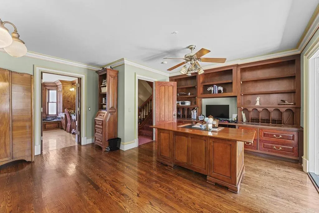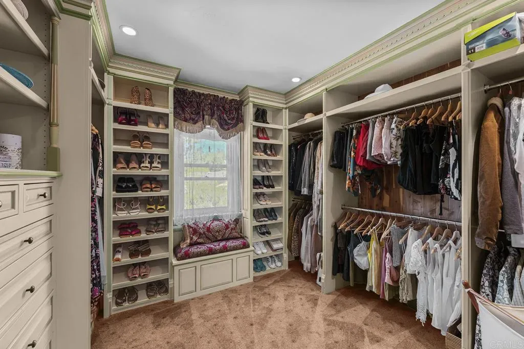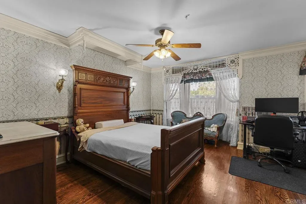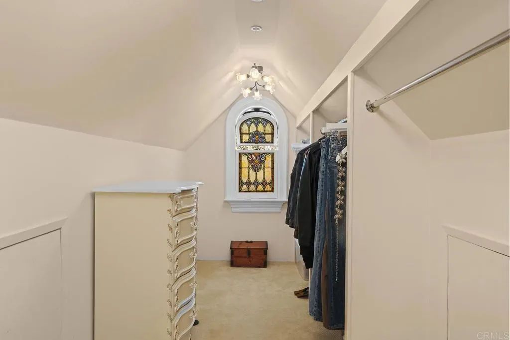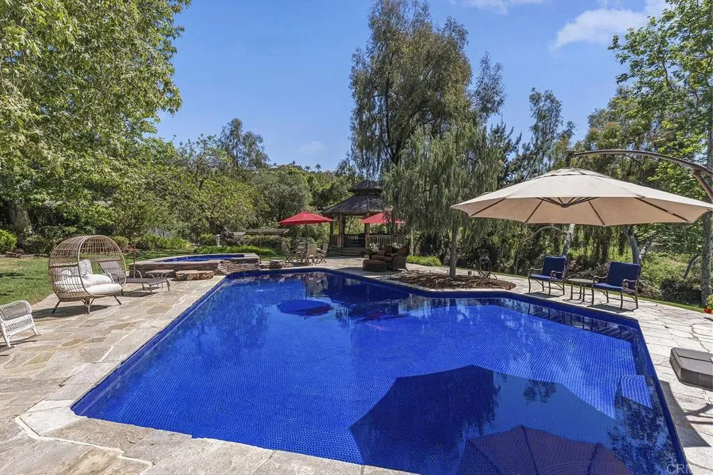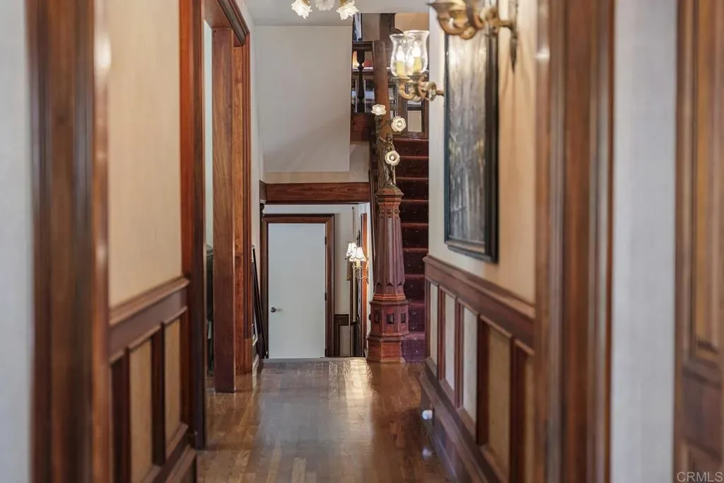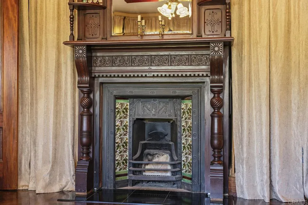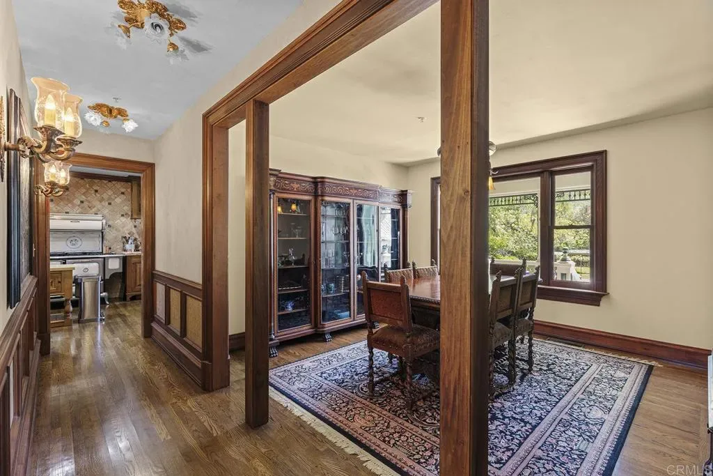 Looking for a quiet respite? This one-of-a-kind Queen Anne Victorian estate blends timeless architecture with modern comfort on over an acre of private, usable land in Vista’s desirable Warmlands. Custom-built by a Rancho Santa Fe master builder, the home showcases exceptional craftsmanship and attention to detail throughout. It features four ensuite bedrooms, each on its own level, with sitting areas, walk-in closets, and private baths. Three bedrooms offer private balconies overlooking the grounds, while the expansive primary suite includes a study, dressing room, spa-like bath, and distinctive architectural elements such as a turret, leaded glass windows, and a classic Victorian sleeping porch. From the 160-year-old iron entry gates to the hand-cut slate roof and hand-laid brick driveway, the property is rich with character. Antique lighting and hardware sourced from an 1850s Chicago hotel further enhance its authenticity. The main living spaces are both inviting and functional, offering a formal parlor, a billiards room with wet bar and fireplace, and kitchen featuring vintage-style appliances, a Sub-Zero built-in refrigerator, and French doors that open to the veranda. Designed for seamless indoor-outdoor living, the wrap-around covered veranda provides multiple seating areas, built-in speakers, and peaceful views of the surrounding landscape. The grounds include a mosaic-tiled saltwater pool and spa finished with beautiful sparkling Colorado Silverstone, a gazebo with fire pit, built-in BBQ, lush gardens, and a variety of mature fruit trees. A seasonal creek bed along the rear of the property enhances privacy, with open space and agricultural land beyond. Additional features include fully owned solar with battery backup and a Tesla charger. The lower portion of the property offers space for a future guest house or ADU, workshop, or sport court. Ideally located with convenient access to the 76 Freeway, this exceptional estate offers a rare combination of privacy, craftsmanship, and storybook charm.