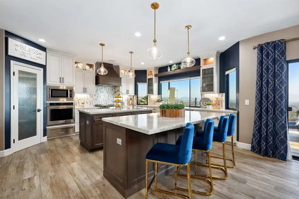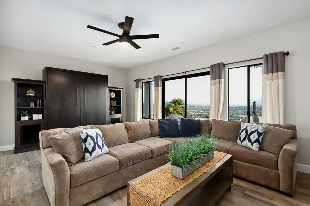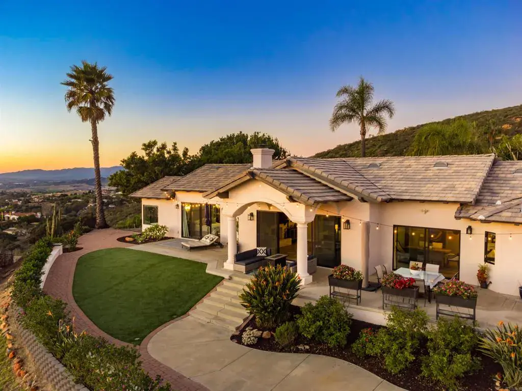 Stunning Single-Level Vista Estate with Panoramic Ocean Views, Resort-Style Pool, and 4-Car Garage Welcome to 1966 Las Lomas—a truly one-of-a-kind, fully renovated estate set behind a double-gated entrance in one of Vista’s most desirable private residential enclaves. While the property feels exceptionally private and secure, everyday conveniences, shopping, dining, and commuter access are just minutes away—offering a rare and highly sought-after balance of tranquility and accessibility. Originally built in 1993 and reimagined from the studs up, this expansive single-level residence showcases luxury, thoughtful design, and breathtaking panoramic ocean and sunset views from nearly every rear-facing window. Natural light fills the home, highlighting soaring ceilings and uninterrupted sightlines stretching from Carlsbad toward Catalina by day, and a sparkling cityscape at night—the evening views are especially unforgettable. Designed for both elegant entertaining and comfortable daily living, the open-concept floor plan centers around a chef’s kitchen featuring top-of-the-line KitchenAid appliances, dual Quartz islands, a wine refrigerator, beverage sink, filtered hot and cold water, and extensive custom cabinetry. The Quartz countertops are truly special—offering unique and beautiful veining and striking visual depth. The kitchen opens seamlessly into the great room, anchored by a dramatic 16-foot sliding glass wall that creates a seamless indoor-outdoor living experience. The resort-style backyard is an entertainer’s dream, featuring a completely rebuilt saltwater pool and spa with new tile, plaster, coping, solar heating, LED lighting, and upgraded Pentair equipment—all designed to maximize the expansive views. Whether hosting gatherings, enjoying sunset swims, or relaxing poolside, this outdoor space delivers a true destination-style lifestyle. The thoughtfully designed layout offers excellent flexibility and privacy. As you enter the home, the primary suite is located to the right, featuring a spa-like bathroom, gas fireplace, and stunning sunset views—even from the shower. Adjacent to the primary suite is a dedicated home office with a closet, currently used as an office but easily functioning as a fifth bedroom if desired. On the opposite side of the home are three additional bedrooms. One features a private en-suite bath. The remaining two bedrooms share a dual-access bathroom, with one of those bedrooms offering an oversized layout and direct sliding-door access to the backyard and pool area—ideal for guests or multi-generational living. Additional highlights include a 4-car garage (3-car plus separate 1-car), a photovoltaic solar system with two LG batteries and a new inverter, a newer roof (2021), a full fire sprinkler system, generator-ready electrical, a pressure-boosting water system, and no HOA or Mello-Roos. The location offers outstanding convenience. Grocery stores, shopping, and daily amenities are just minutes away, while Downtown Vista—approximately 5–7 minutes from the property—continues to grow in popularity, offering a revitalized, walkable core filled with breweries, restaurants, coffee shops, and entertainment venues. Vista is known for its laid-back vibe, community events, scenic surroundings, and mild, sunny weather year-round. With easy access to Interstate 15, Interstate 5, Highway 76, and Highway 78, commuting north, south, east, or west is effortless—whether coastal or inland. This is truly the best of both worlds: a peaceful, private setting with generous usable space, combined with exceptional convenience and connectivity. Homes offering this balance are rare—and special.