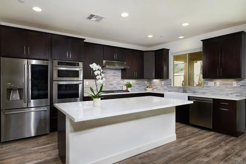 Nestled within the prestigious gated community of Laurel Pointe in Vista, this exceptional residence is ideally positioned on a quiet cul-de-sac, offering both privacy & exclusivity. Spanning approximately 3,368 square feet, the thoughtfully designed floor plan provides generous space for comfortable living & effortless entertaining. The home features 4 spacious BR, a versatile den, 2.5 BA, & a 3-car garage. Multiple living areas- including a formal living & dining room, a welcoming family room, a casual eat-in family room, & a casual eat-in kitchen- offer flexibility for everyday living & special gatherings. A dedicated craft or workspace adds additional functionality, perfect for a home office, study area, or creative retreat. Move-in ready, the home showcases a freshly painted interior & numerous 2024 upgrades. The beautifully updated kitchen features quartz countertops, a larger center island, stainless steel appliances, a striking glass backsplash, a farmhouse sink & touchless faucet, Espresso-stained cabinetry w/soft-close features, a corner storage cabinet, & an integrated trash system, combining style with practicality. Upgraded tile plank flooring throughout the main level & upgraded carpeting upstairs, enhancing both comfort & design. The private, low-maintenance backyard is designed for relaxation & entertaining, featuring turf, pavers, & a spacious covered patio with recessed lighting. With no rear neighbors, the setting offers a rare sense of peace and openness. Residents of Laurel Pointe enjoy gated security, private walking paths w/views of the Antiques Steam Engine Museum, & a community play area. Conveniently located near top-rate schools, shopping, dining, parks, and with easy access to Highways 76 and 78, this home is also approximately 10 miles from the beach. A rare opportunity to own one of Vista’s most desirable gated communities- this is a home you won’t want to miss.