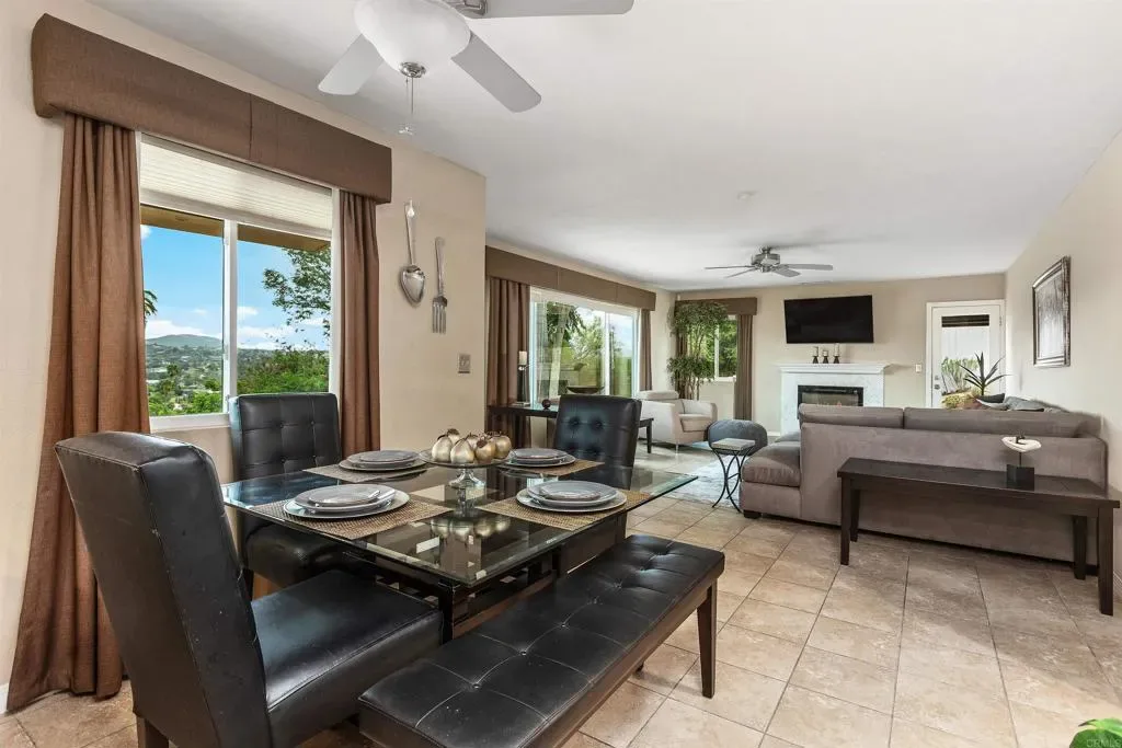 A single story beauty on a private street with panoramic views from Vista to San Marcos. Flagstone entry, front and rear patios are beaufully designed for entertaining. Many owner upgrades include new roof in August, 2025. Bedrooms recently recarpeted and newer paint throughout. Kitchen has newer lighting and granite counters. Extensive remodel in 2007 included plumbing, electrical, and drywall. Enjoy expansive views from kitchen and dining and living rooms. Travertine floors provide flow in these same spaces. Bathrooms are finished with granite counters, upgraded sinks, tiled showers and tub surrounds. The inside laundry offers convenience; high end washer/dryer convey. The bonus room is currently a home theatre but could easily be a 4th bedroom or office; the 2 car garage affords extra storage. Landscaping is low maintenance and includes finely constructed retaining walls, especially in rear of home. No HOA and no Mello Roos. Located minutes from shopping and central district amenities.