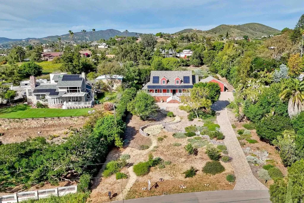 Modern farmhouse on a fully-landscaped acre in Vista, just up the hill from shopping and the 78. Distressed engineered wood floors, wrap-around front porch, and fun design. The first-floor primary suite was built to be accessible, and the additional first-floor bedroom/office makes for single-story convenience. Unique and thoughtful perks include a butler’s pantry and a mud room with laundry and full bathroom. Upstairs bedrooms are all oversized with large closets, bonus lofts and even a secret room accessed through a false closet door. Outside, you will find an oversized 750 square foot detached garage/workshop, 30×30 sport court, brick-paved private driveway, plenty of room for RV and boat storage, and city sewer. The lot has room to use — and it shows. Additional features include paid-for solar, EV charging circuit in the garage, playhouse, and more!