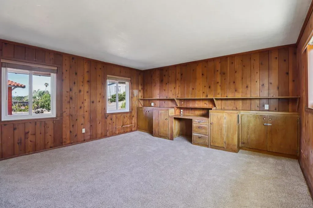 Set on a combined 2.44 acres and sold with an adjoining separately subdivided lot, this elevated Vista estate property presents a rare opportunity to own a private, expansive slice of North County within the top-rated San Marcos school district. Perched above the surrounding area, the property enjoys sweeping valley, hill, and distant ocean views, creating a peaceful and scenic setting with exceptional privacy. The single-story home offers 2 bedrooms, 2 bathrooms, plus a bonus office, along with a spacious kitchen, indoor laundry, air conditioning, vinyl windows, and a detached two-car garage. A view deck off the living area showcases the property’s stunning backdrop, while the generous grounds, mature trees, and wide-open acreage offer remarkable potential to enhance, expand, or reimagine over time. The adjoining lot, with its own address and access, adds significant value and flexibility for future development, multi-generational living, or creation of a truly one-of-a-kind compound.