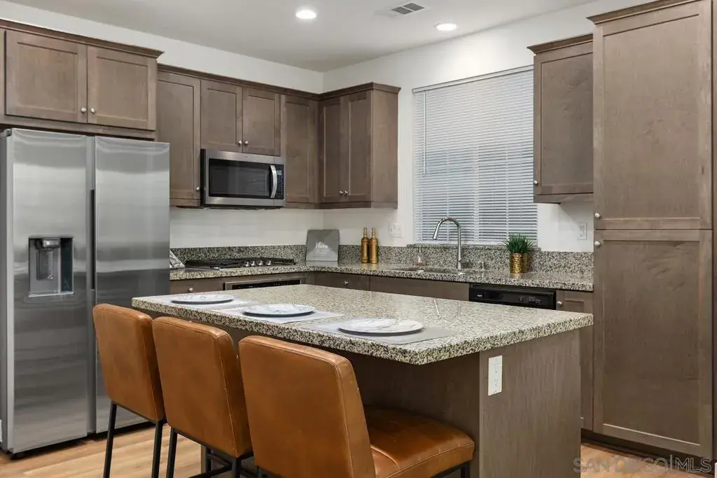 Beautiful two-story three bedroom two and half bath home with an attached two-car garage located within the highly sought after community of Laurel Creek in Vista. Recently built in 2021 and still feeling brand new! This modern home has been freshly updated with brand-new carpet, new vinyl plank flooring and a full interior paint, making it truly move-in ready. Step inside to an open and inviting floor plan where the living, dining, and kitchen areas flow seamlessly together. The contemporary kitchen shines with new fridge, upgraded cabinetry, and a center island that doubles as a casual dining or work-from-home spot. Upstairs, the spacious primary bedroom features an oversized walk-in closet and en-suite bath with dual sinks and walk-in shower. Two additional bedrooms are joined by a versatile loft perfect as a family room, playroom, or office. Energy-efficient upgrades include solar, a tankless water heater. Great community amenities include a spa, BBQ facilities, and recreation areas.