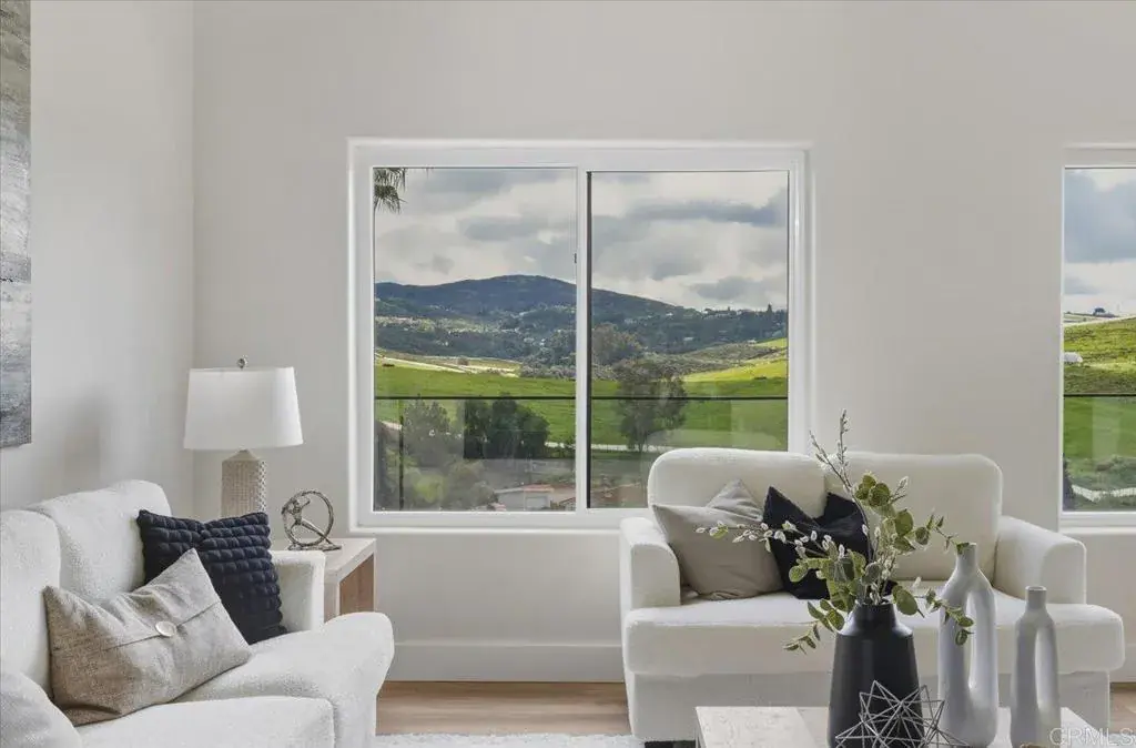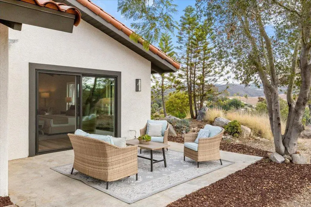 Repositioned for today’s market – now offered under $1.7M. Experience elevated living on 2.32 acres of scenic hillside with sweeping panoramic views from this fully remodeled 4-bedroom, 3-bath estate in Vista. Perched to capture natural beauty and privacy, the property offers a unique blend of elevated outlooks and usable outdoor spaces. Zoning allows for horses and offers potential to add a detached ADU, creating even more flexibility and long-term value. The attached JADU features a full kitchen, bath, laundry, and private entrance—ideal for multigenerational living, guest quarters, or income potential. Inside, soaring ceilings and expansive windows fill the home with natural light and frame the surrounding landscape. The modern kitchen anchors the main living area, while the private primary suite opens to its own outdoor sitting area creating a peaceful retreat. Outdoor living shines with multiple patios, a covered lanai, and wrap-around porch designed to take full advantage of the views. The acreage offers opportunity for gardening, terraced landscaping, or simply enjoying the natural terrain and open space. Additional highlights include covered RV parking with clean-out, a rare drive-through garage, and a secondary driveway providing convenience and room for your toys. Ideally located for both privacy and accessibility, this property offers a rural feel just minutes from shopping, dining, and major routes. Well-positioned at a compelling price point, this is a rare opportunity to own a turnkey view property with land, versatility, and income potential in North County