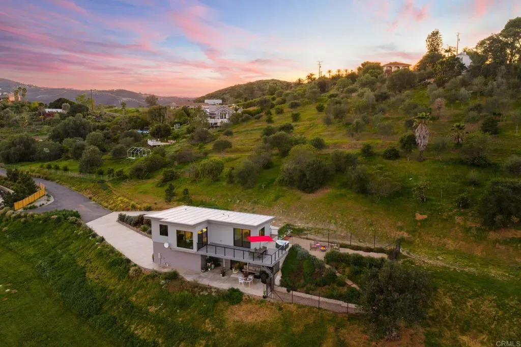 TWO HOMES | ONE PARCEL | BOTH INCLUDED | POTENTIAL TO ADD 3rd PROPERTY 6937-39 KELLYN LANE | Extraordinary 2.5-acre compound in Bonsall/Vista featuring two distinct residences on one expansive parcel, offering rare flexibility for multi-generational living, guest accommodations, or income-producing opportunity. Panoramic views and never before offered for sale, this is a legacy property designed for stewardship, privacy, and possibility. Set among the rolling hills of North County, the property captures the rhythm of rural life that draws so many to Bonsall. Mornings begin with light across the hillsides, evenings settle under expansive skies. Whether tending the orchard, caring for animals, or gathering friends and family outdoors, the land invites a slower and more intentional way of living. Zoned for horses and farm animals, the acreage offers remarkable freedom. There is room for equestrian pursuits, hobby farming, vineyards, gardens, barns, workshops, guest homes, or additional gathering spaces. It is the kind of land that evolves with its stewards, offering space not only to live but to cultivate something lasting. Two thoughtfully designed residences create a true compound experience, allowing independence while maintaining connection. Ideal for multi-generational living, extended guests, or income-producing flexibility, the homes share the beauty and opportunity of the land while preserving privacy. California Farmhouse (2019): Single-story 1bd/1ba residence with attached barn, office, and additional bathroom. The barn includes two rooms, garage, bathroom, and animal kennels that can easily convert to horse stalls or stables. The mini orchard produces plum, pear, guava, orange, lime, and passionfruit. Modern Eco-Steel Residence (2023): Nearly new construction with 2bd/2ba on the main level and a lower level converted to a private studio apartment with full bath and kitchenette. Floor-to-ceiling windows and expansive Trex decking capture the surrounding panoramic views. Both homes are all-electric and powered by fully owned solar. Mini-split HVAC systems, rainwater irrigation, Tesla chargers at each residence, and washer/dryer in both homes. Live in one residence while leasing the other, accommodate extended family, or hold both as income-producing assets. The acreage allows room for expansion and additional structures, with zoning that permits animals and horses. Minutes from I-15, the property offers convenient access to coastal North County while maintaining the tranquility of Bonsall’s rural landscape. The Havens Country Club is nearby for golf, dining, and social memberships, and Temecula’s renowned wine country and Old Town district are a short drive away. A versatile estate where meaningful acreage, thoughtful design, and enduring potential come together. A place to live well today and create something lasting for the future.