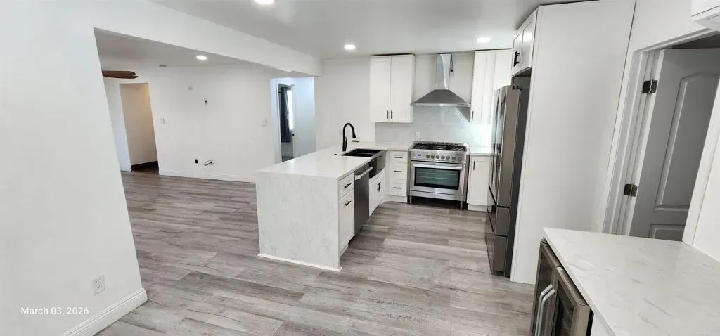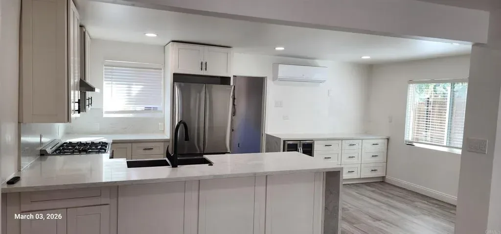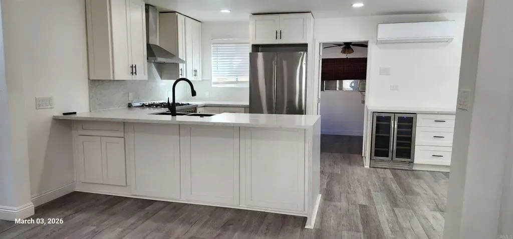 Welcome to this beautifully upgraded property in the heart of Vista with detached ADU, where you’ll enjoy some of the best year-round climate Southern California has to offer. This private residence offers comfort, flexibility, and modern upgrades. The main home features 3 bedrooms and 2.5 bathrooms, including a spacious primary suite addition completed in 2015. In 2024, the kitchen and bathrooms were thoughtfully remodeled with today’s buyer in mind. The stunning kitchen showcases quartz countertops with a dramatic waterfall edge, stainless steel appliances, and a built-in wine and beverage refrigerator — perfect for entertaining. Vinyl plank flooring flows throughout the home, complemented by fresh neutral tones that create a bright, cohesive feel. Adding tremendous value and versatility, the property includes a beautifully finished studio ADU. Designed with quartz countertops, an upgraded bathroom, and a built-in Murphy bed, the space is ideal for rental income, guests, or multi-generational living. Both the main house and ADU are equipped with efficient mini-split cooling systems for year-round comfort. Outside, the automatic gate and paver driveway enhance curb appeal, while the private, spacious backyard with matching pavers offers the perfect setting for entertaining, relaxing, or enjoying Vista’s ideal climate. This is a rare opportunity to own a turnkey property with income potential, privacy, and modern upgrades — all in one exceptional package.