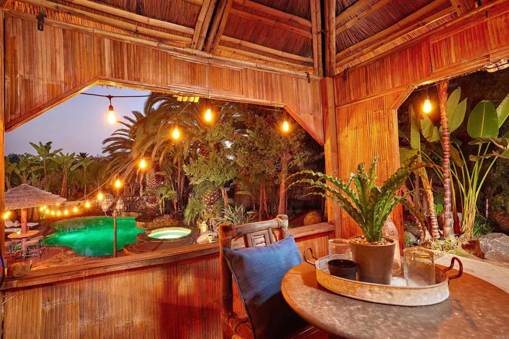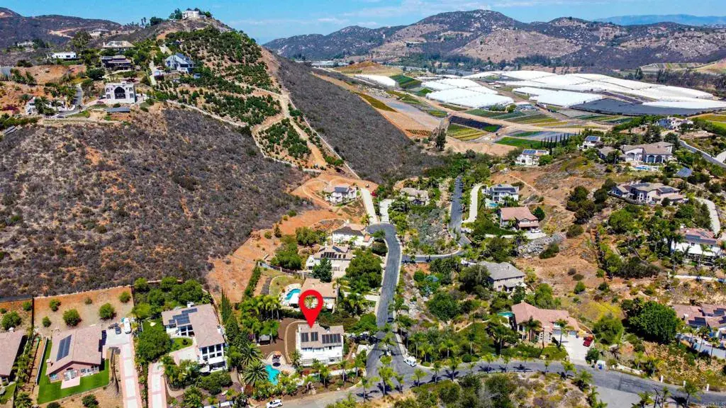 NEW Improved Price! Lovely Resort Style Home with Spectacular Tropical Oasis Yard. Tucked Neatly behind Gated Entry in the Prestigious Enclave of Vista Grove Estates. 5 Spacious Bedrooms all with Views of the Surrounding Hills and Mountain terrain! Breathe and breathe again in this Peaceful setting. Serene Living is what this Home Boasts! A nearly 3/4-acre lot provides Ample usable space to roam whether it be Gardening, relaxing around the Stunning Solar Heated Pool with Spa and Water feature, or seeking shade in the Tiki Hut, and swinging in a hammock in the Large Grassy area. Numerous Fruit trees in the upper portion of the yard yield citrus, pomegranate, lemon, avocado and more! Gorgeous Palms surround the pool along with numerous other Foliage to provide a Majestic Resort Feel. Newer 9′ wide Luxury Vinyl Wood Plank Flooring throughout Home gives a modern rustic feel. Huge Kitchen with Island opens to large Family Room perfect for entertaining! Formal Living and Dining room accentuate the Entry! 2 Fireplaces. Large Patio off Kitchen area is great for quiet mornings with coffee and breakfast! 3 Car Garage and additional long driveway allow for 6 more car spaces. Come take in this Idyllic, Peaceful Setting while still only 20 minutes to the Beach!