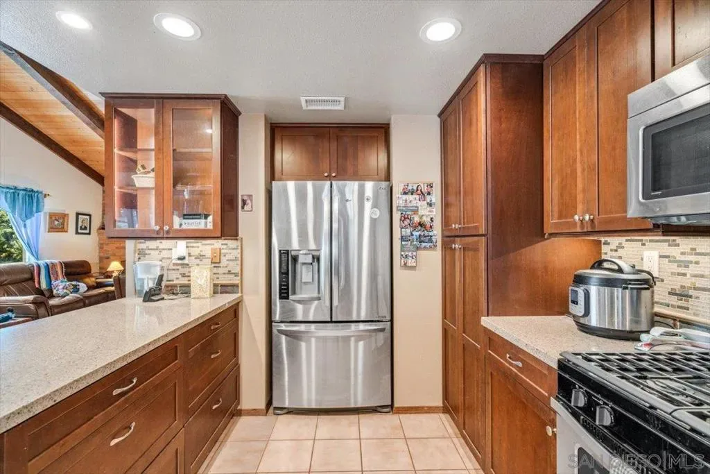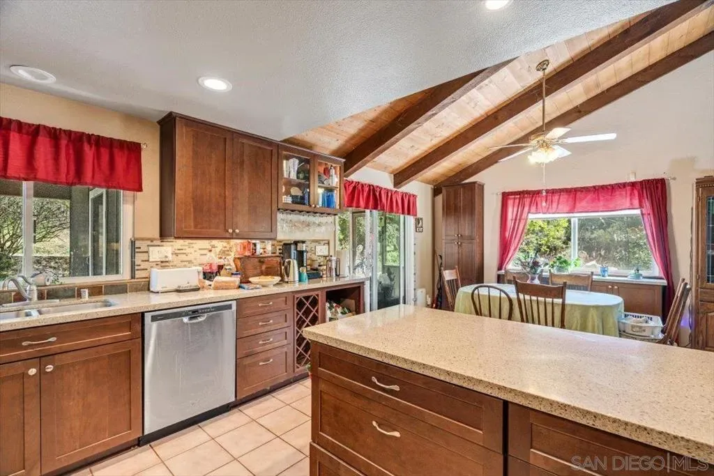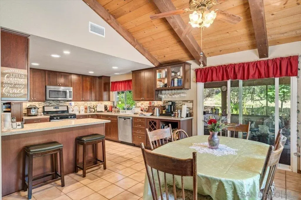 Useable corner lot with privacy in Vista’s most desirable neighborhood. Lush landscape includes fruit & nut trees (see supplement for list). Large, updated kitchen, gorgeous vaulted open beam ceilings, custom home build. Separate gated and paved access to park your RV, boat, and other toys with room to spare. Roof is 3 years new. Solar is owned. Custom pergolas and patio room off the back offer plenty of shade and space to enjoy this gorgeous property.